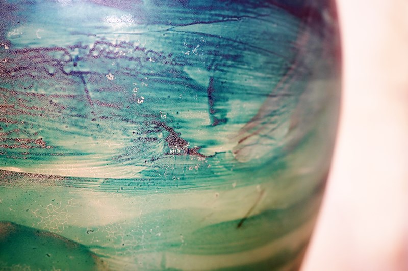 Large coloured carboys such as these formed part of the visual language of the late nineteenth century chemist or apothecary shop. Displayed prominently in windows, sometimes filled with coloured liquids and sometimes painted to imitate them as in this case, they served as theatrical advertisements for the trade, catching and refracting daylight to create glowing signals visible from the street. Suspended examples allowed light to pass freely through the glass while conserving shelf space, and comparable display bottles are illustrated in Leslie G. Matthews’ reference work Antiques of the Pharmacy, which documents the decorative glassware historically associated with pharmacy interiors.