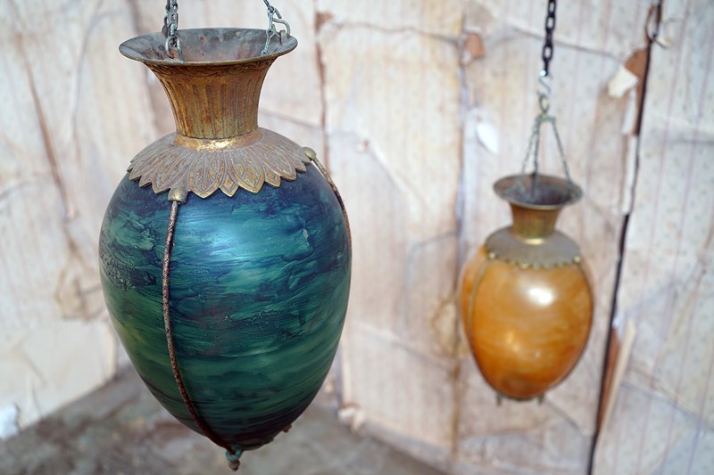 Today these scarce surviving examples stand as evocative relics of the Victorian and Edwardian pharmacy interior, with their sculptural mounts, richly coloured glass and patented suspension fittings, the pair possess a strong decorative presence and lend themselves equally well to being hung as originally intended or displayed as striking interior objects.