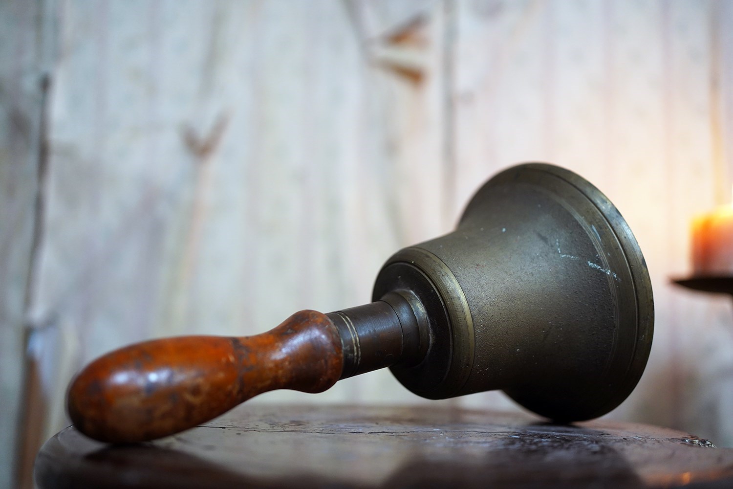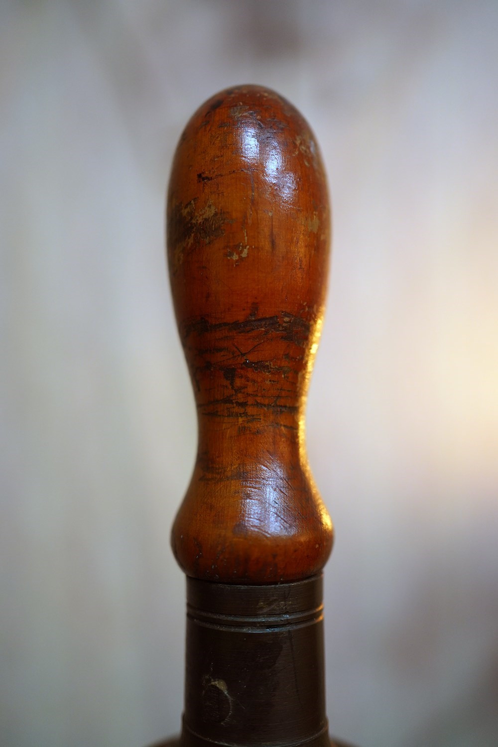 These heavy hand bells formed part of the infrastructure of the nineteenth century British penal and policing system. Issued as government property, indicated by the Broad Arrow ordnance mark, they were used by prison warders, night watchmen and institutional officers to raise the alarm, summon assistance or signal emergencies within gaols, workhouses and convict establishments. Their form prioritised durability and audibility: a thick-walled bronze bell producing a deep, carrying tone, combined with a robust turned wooden handle suited to constant use.