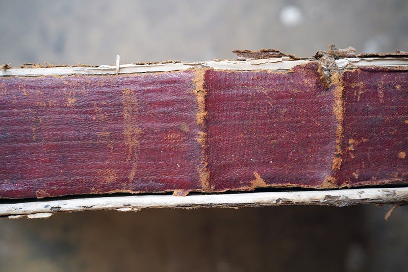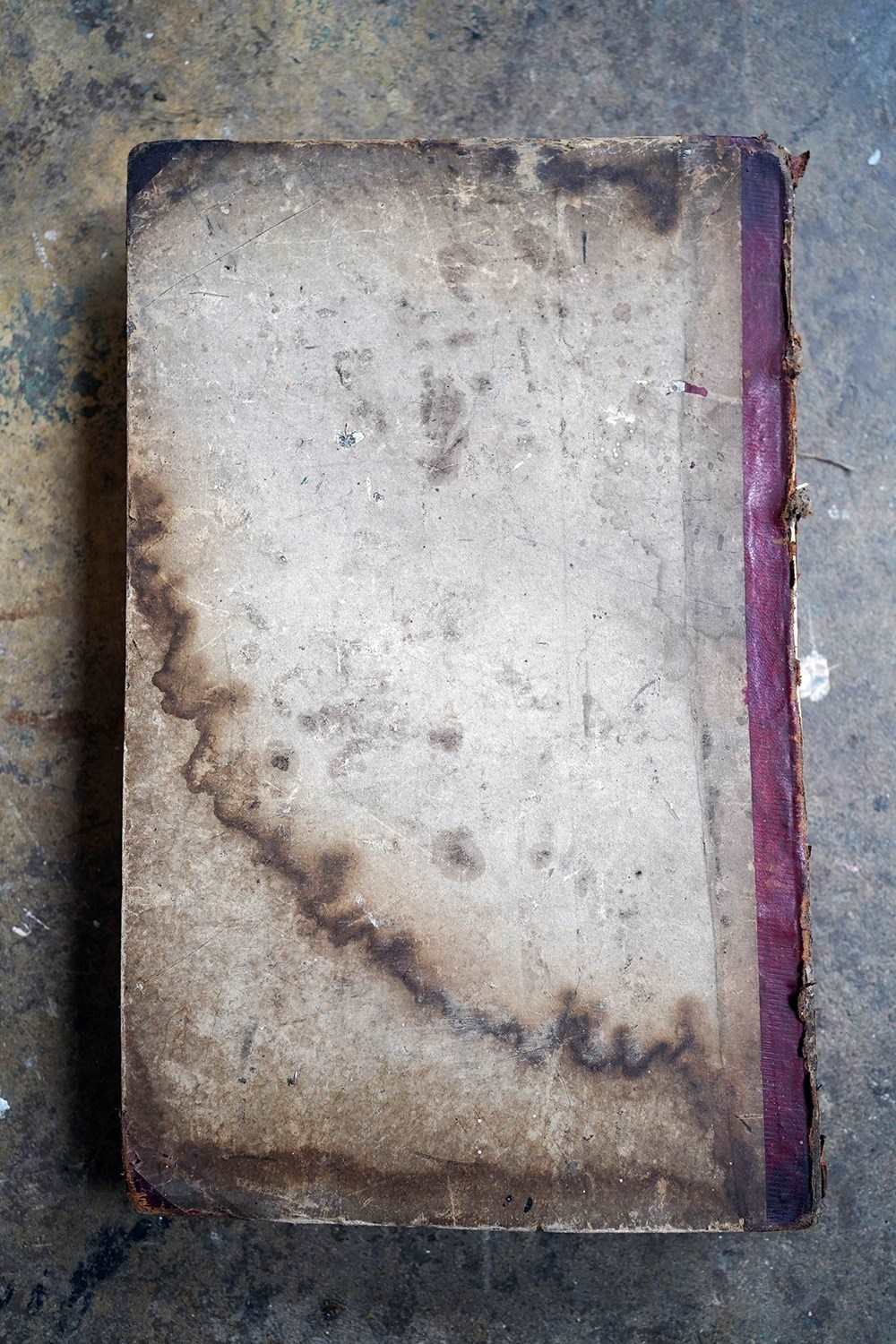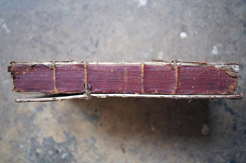 The copy is priced as to its condition with water marking as photographed. The binding is firm in most places with occasional loose page. Some wear to edges back cover is hanging by one cord. Slight tanning overall. Slightly bumped and creased corners.