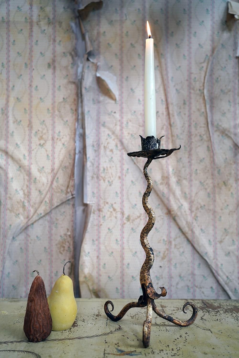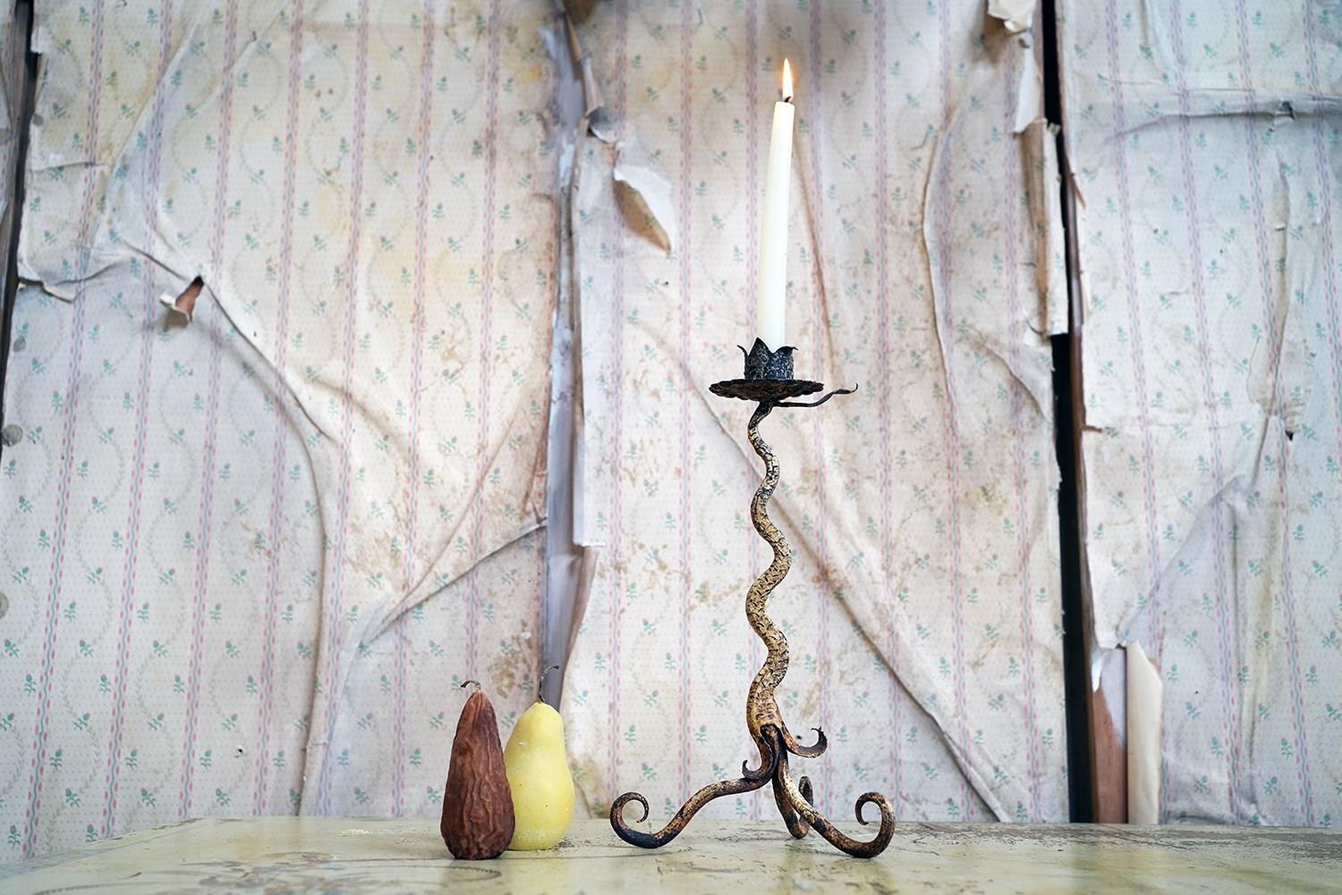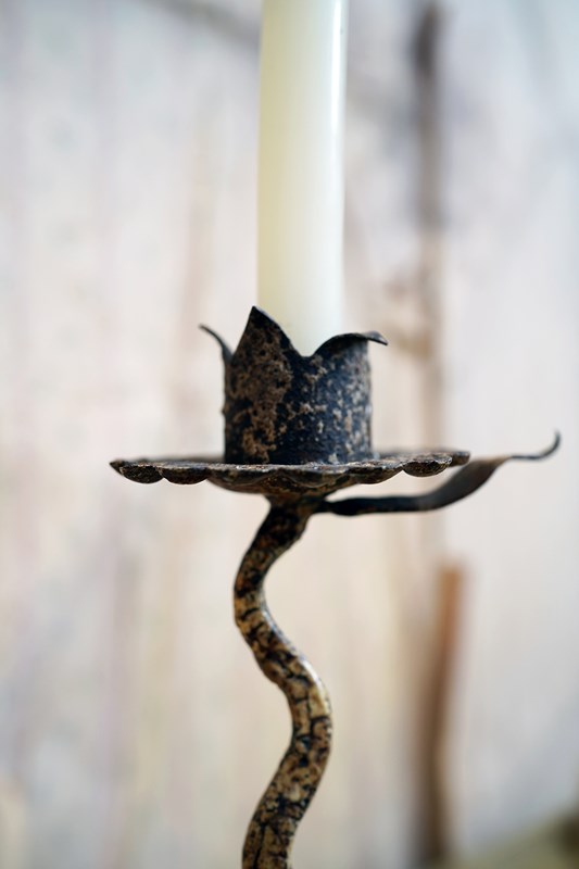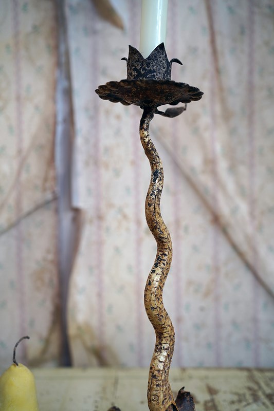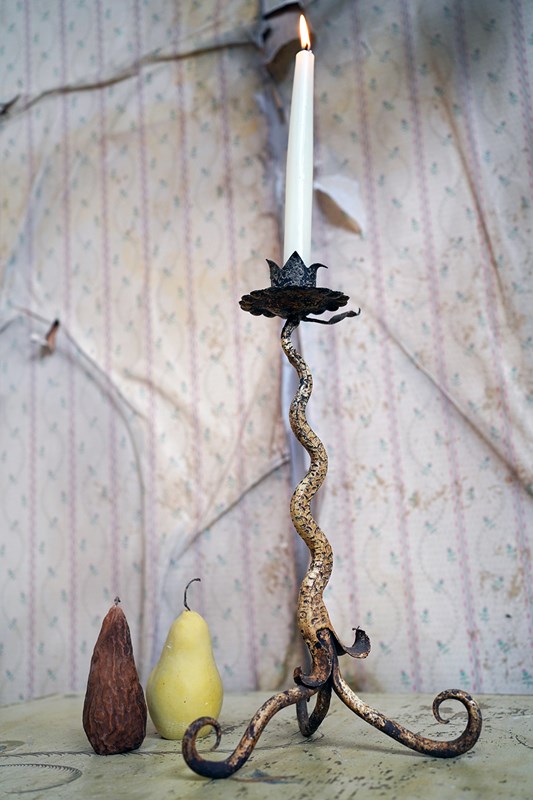 Unique 19Thc Blacksmith-Made Painted Wrought Iron Candlestick C.1890