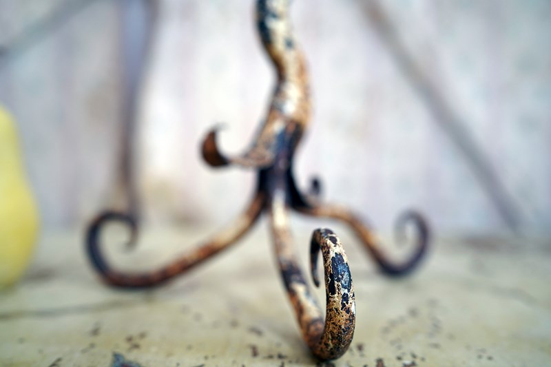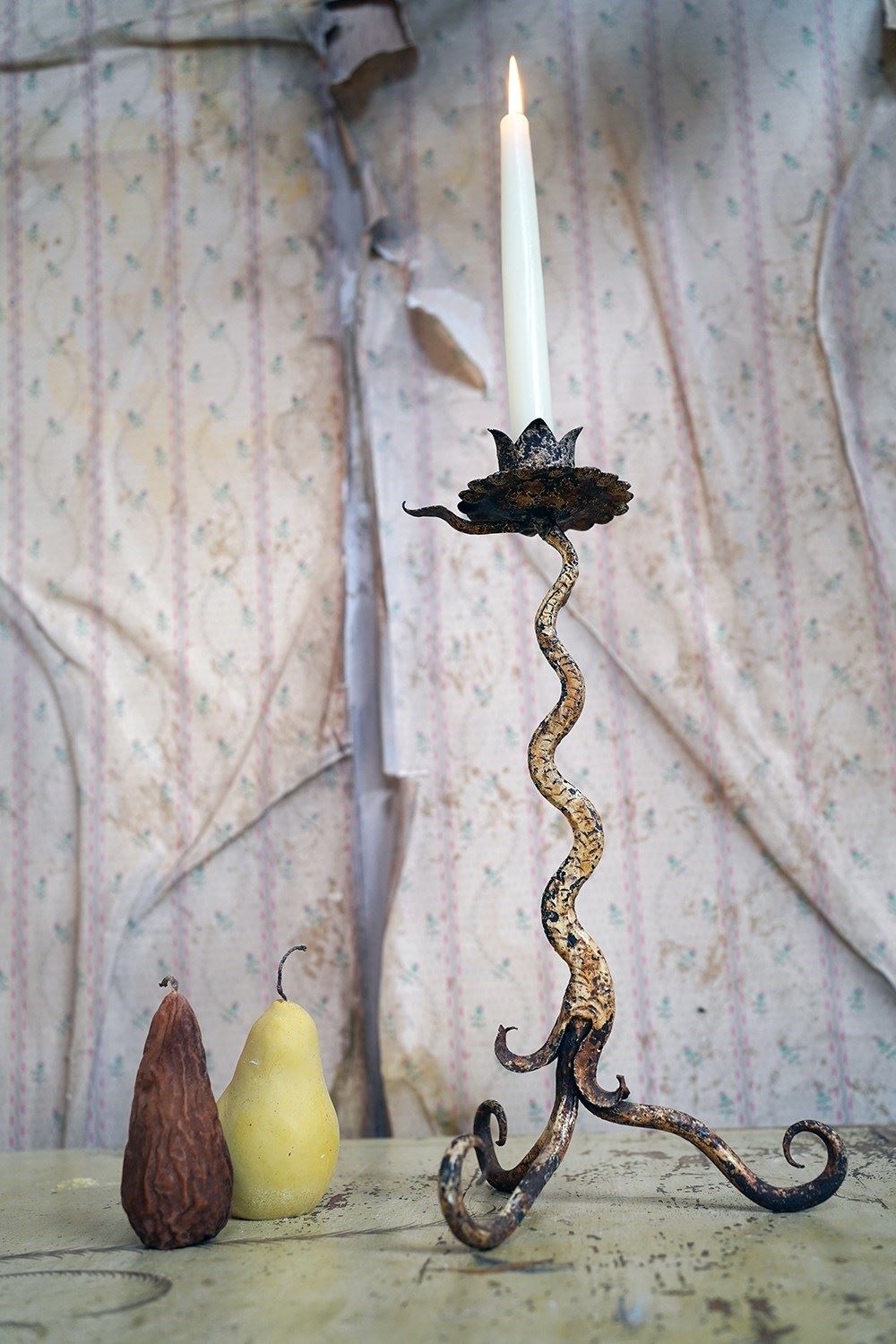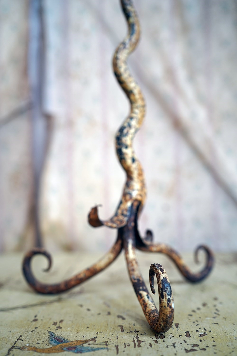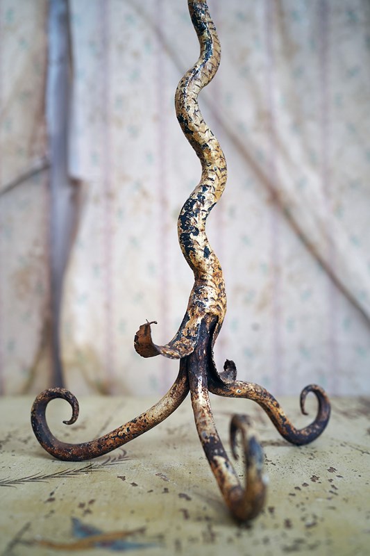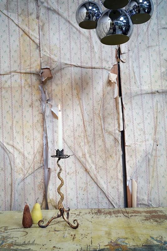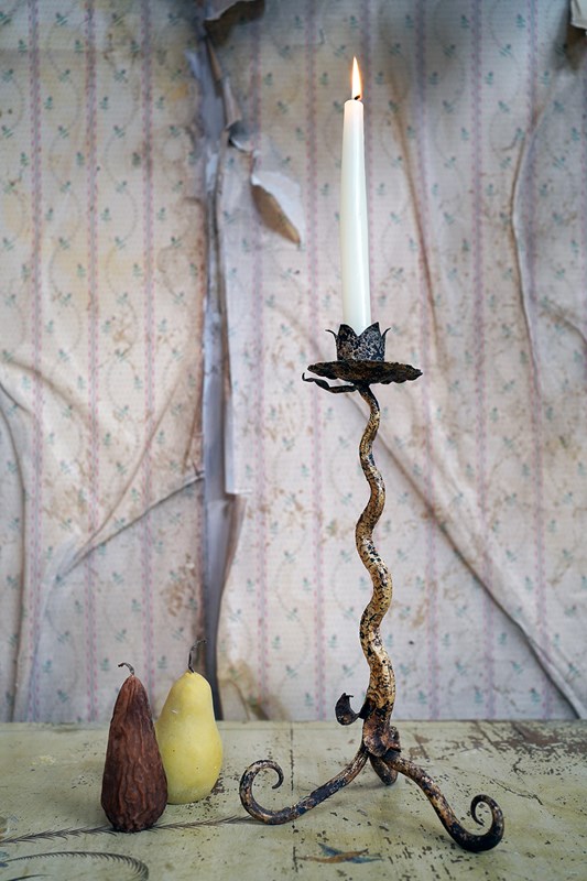 Unique 19Thc Blacksmith-Made Painted Wrought Iron Candlestick C.1890