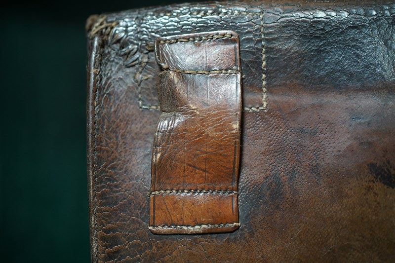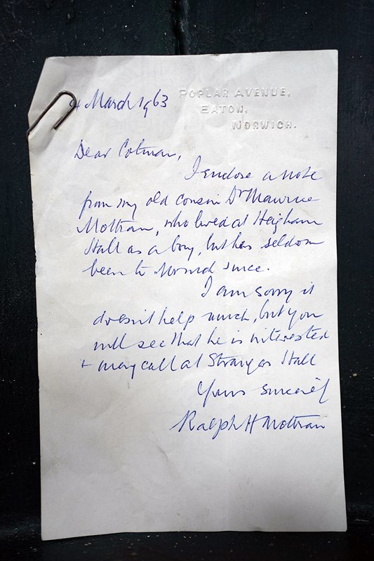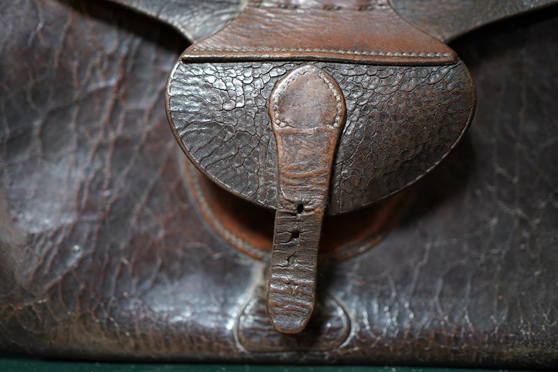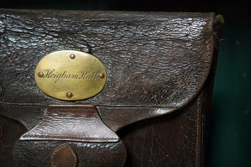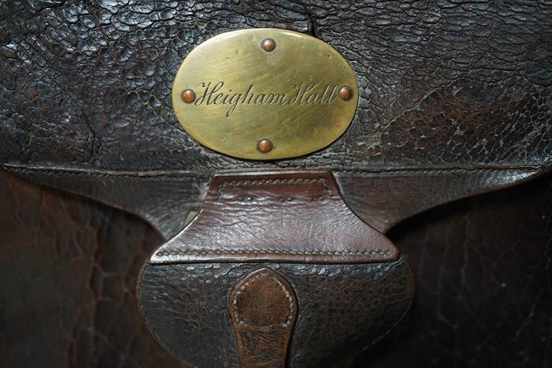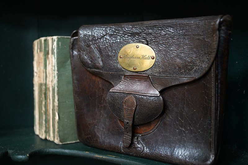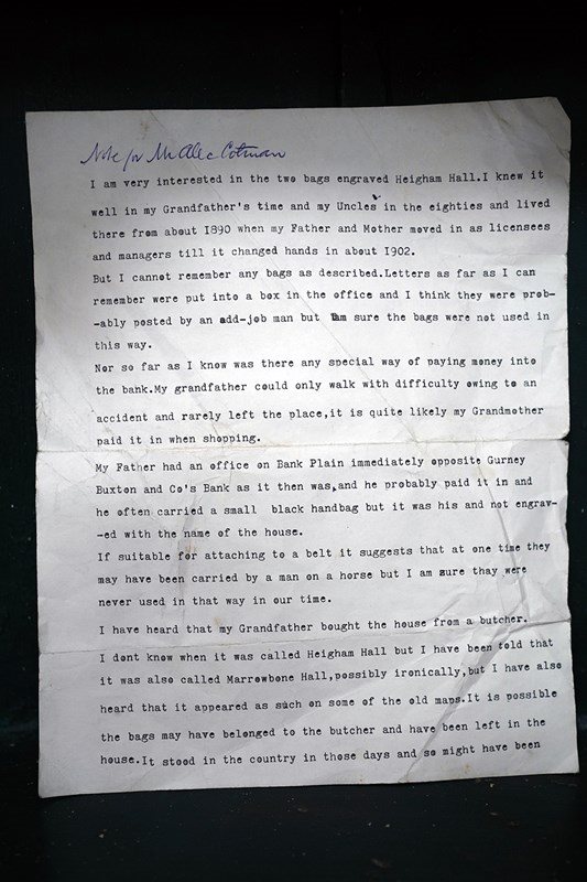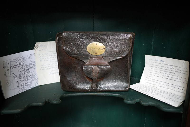 The cases construction what with the straps to the reverse points to it possibly being used on horseback as mentioned in the letters. Moreover, the accompanying ephemera consists of a photocopy of the site of the hall, a letter from a certain Maurice Smotham who’s grandfather lived at the hall and wanted to acquire the bag, and a further letter discussing the sale of the bag by visiting ‘Strangers Hall’.