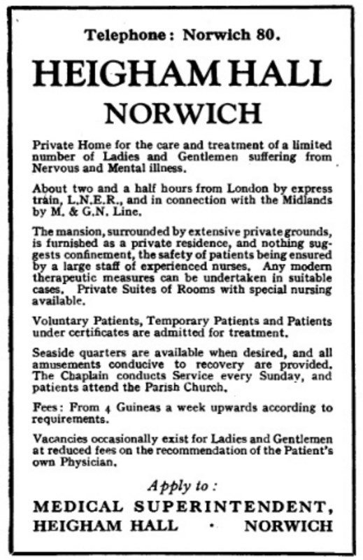 The Heigham Private Lunatic Asylum – “The Retreat” or “Heigham Retreat” was an asylum for ‘patients belonging to the upper and middle classes’ and was probably the last privately owned lunatic asylum in the country. The Hall, formerly The Grange, was partly renovated by butcher Lowden around 1810 ‘in modern style’. Then, in 1836, it opened as a private mental home, managed by Drs John Ferra Watson and William Peter Nichols. Heigham Hall had set itself up in competition with an establishment near Park Lane known as Heigham Retreat – the word ‘retreat’ signifying its use as a private asylum.