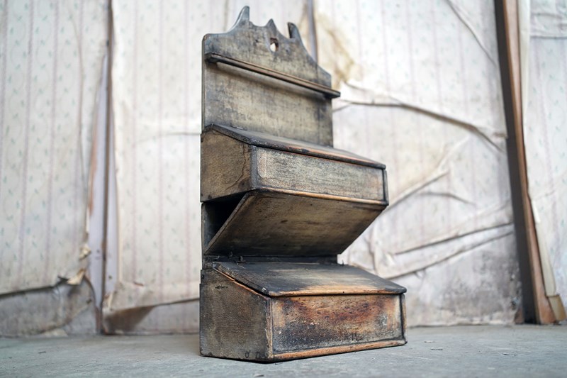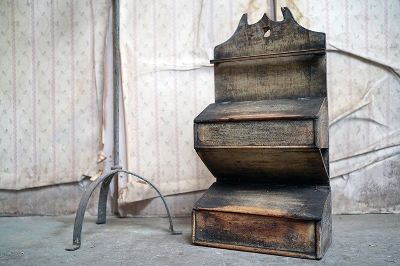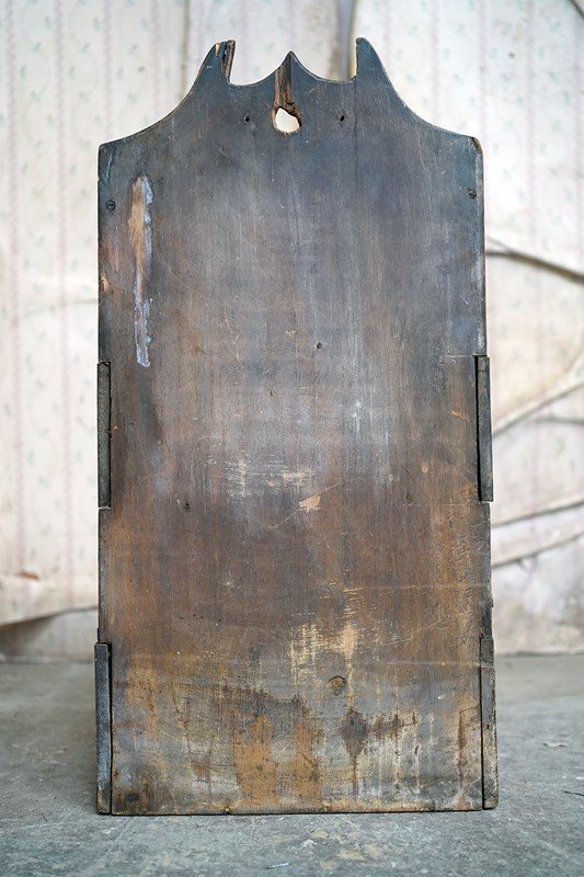 In super condition, she is very honest and a bears a great colour. Designed to be hung on the wall at the shaped top, but she also free stands well on a table. The provincially made carcass has a wonderfully textured patina, with a host of character commensurate with its age and use and it complete and undamaged.