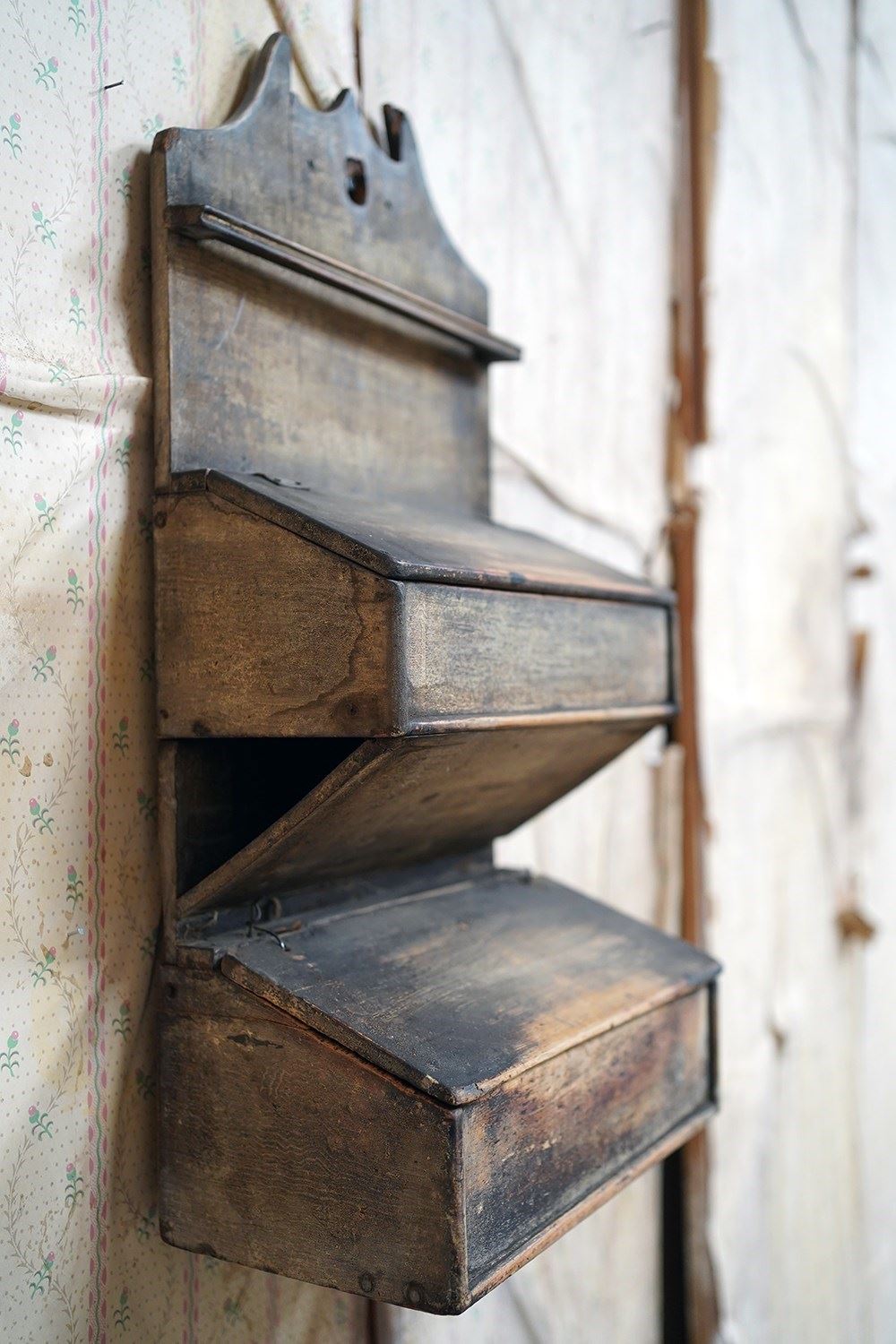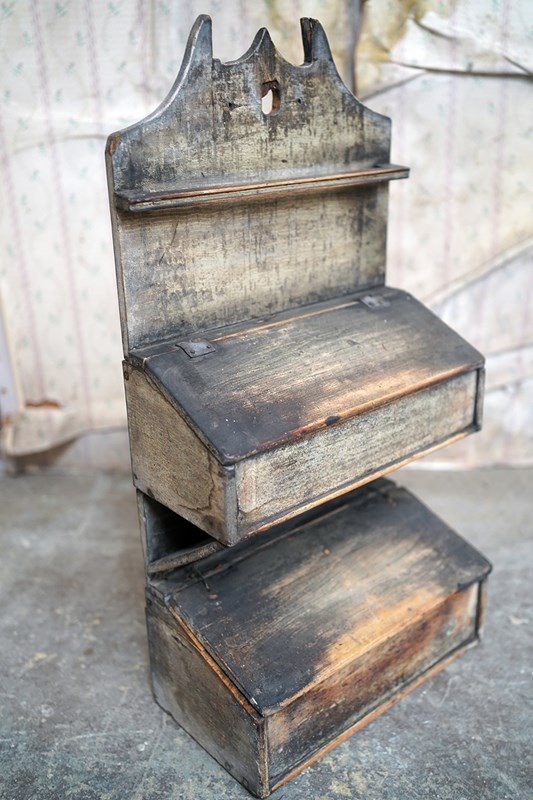 Unusual Early 19Thc Provincial Painted Pine Spoon Rack & Cutlery Box C.1800