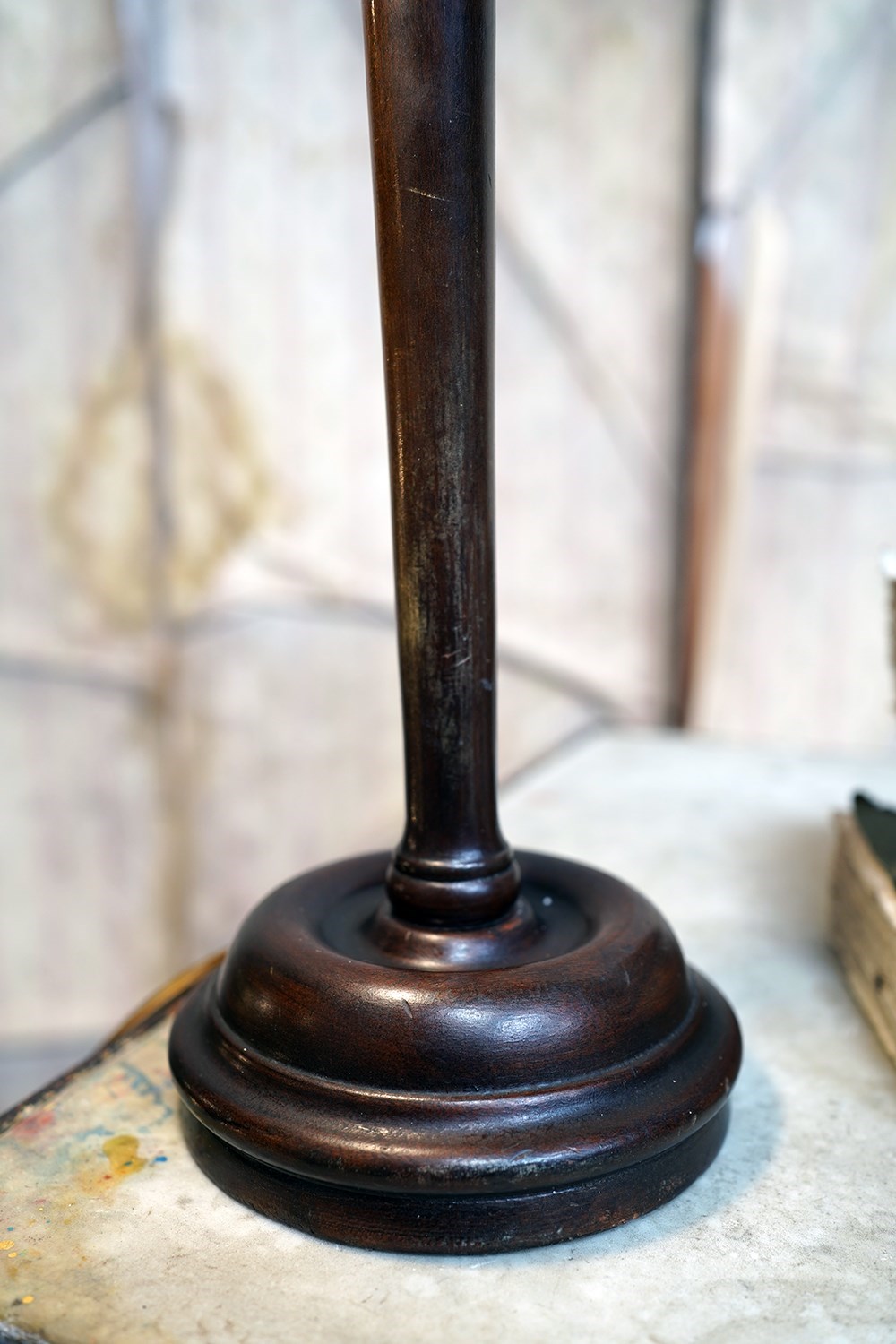 The lamp is in operational order, having recently been re-wired and the whole has no damages with the carving having taken on a nice warm glow and not having not been over polished.