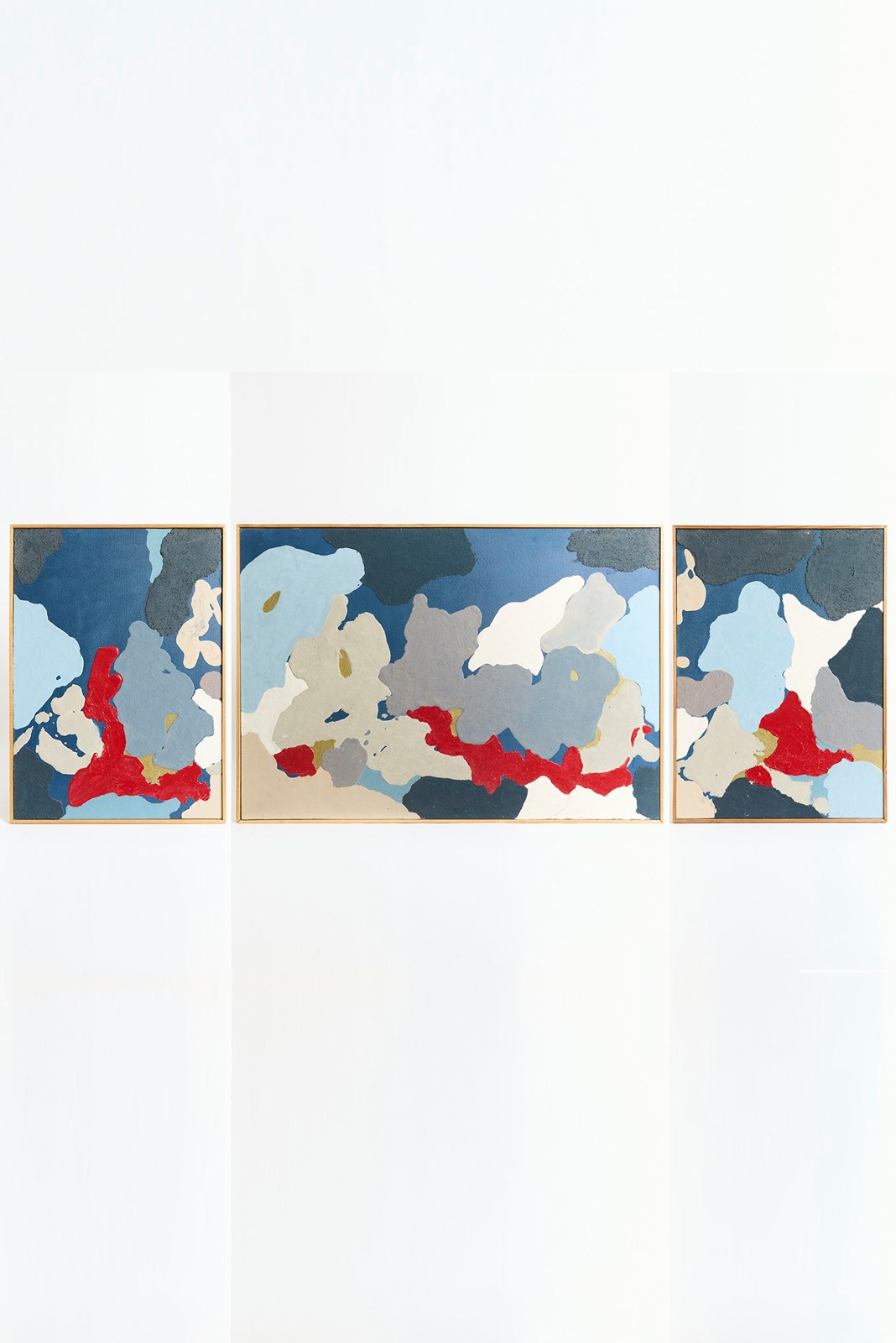 Each flanking paintings: 87 cm high by 62.5 cm wide by 2.5 cm depth