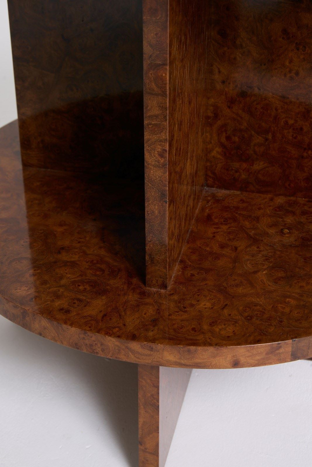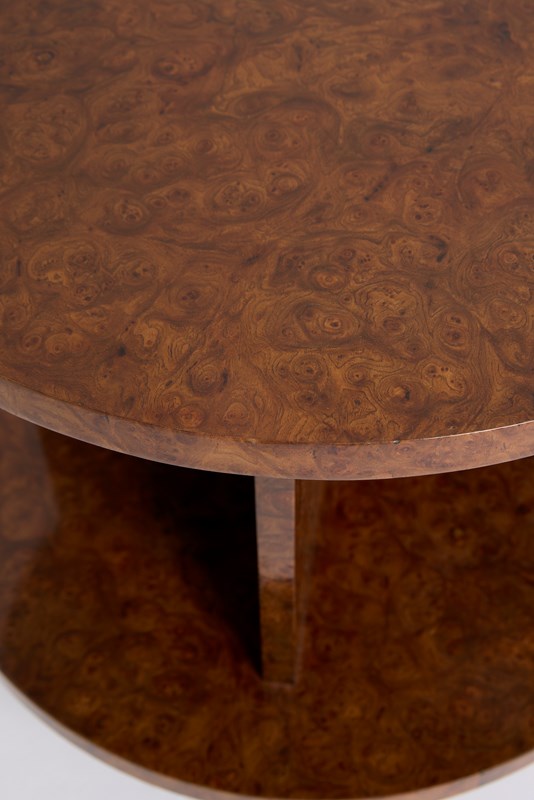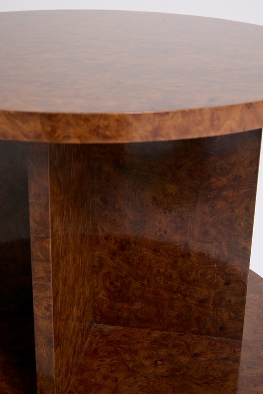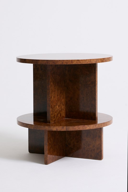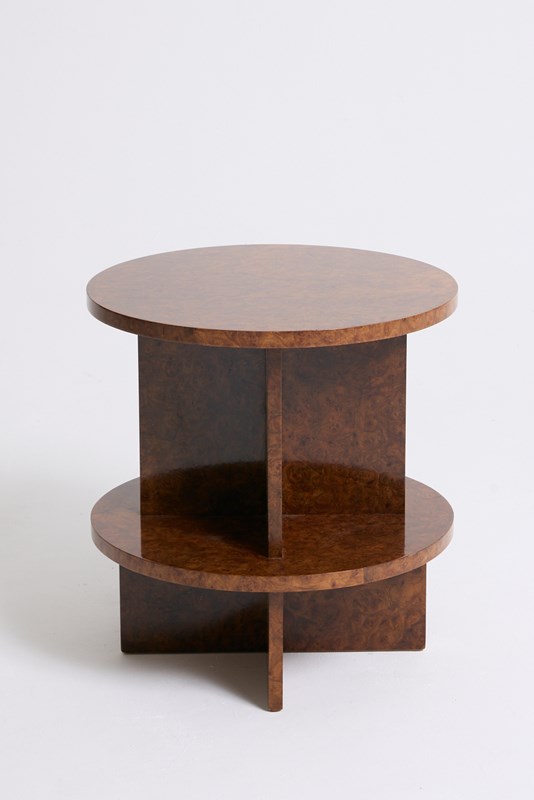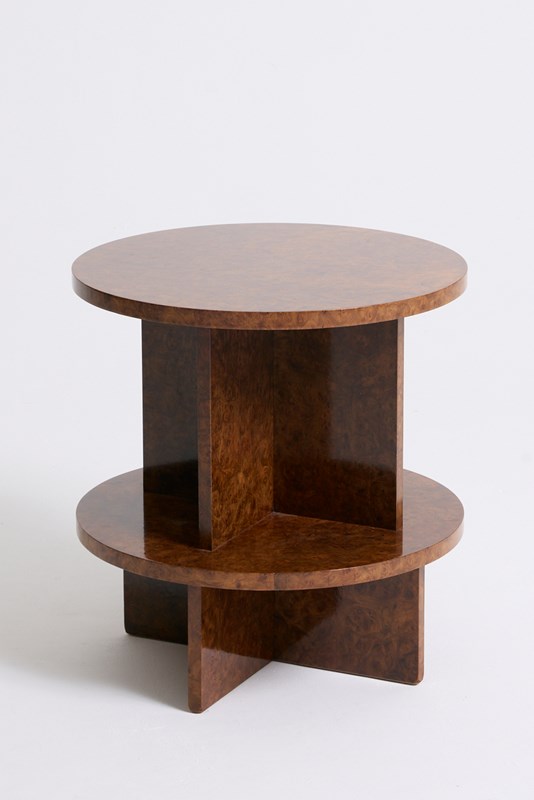 An Art Deco amboyna burr two-tier side table