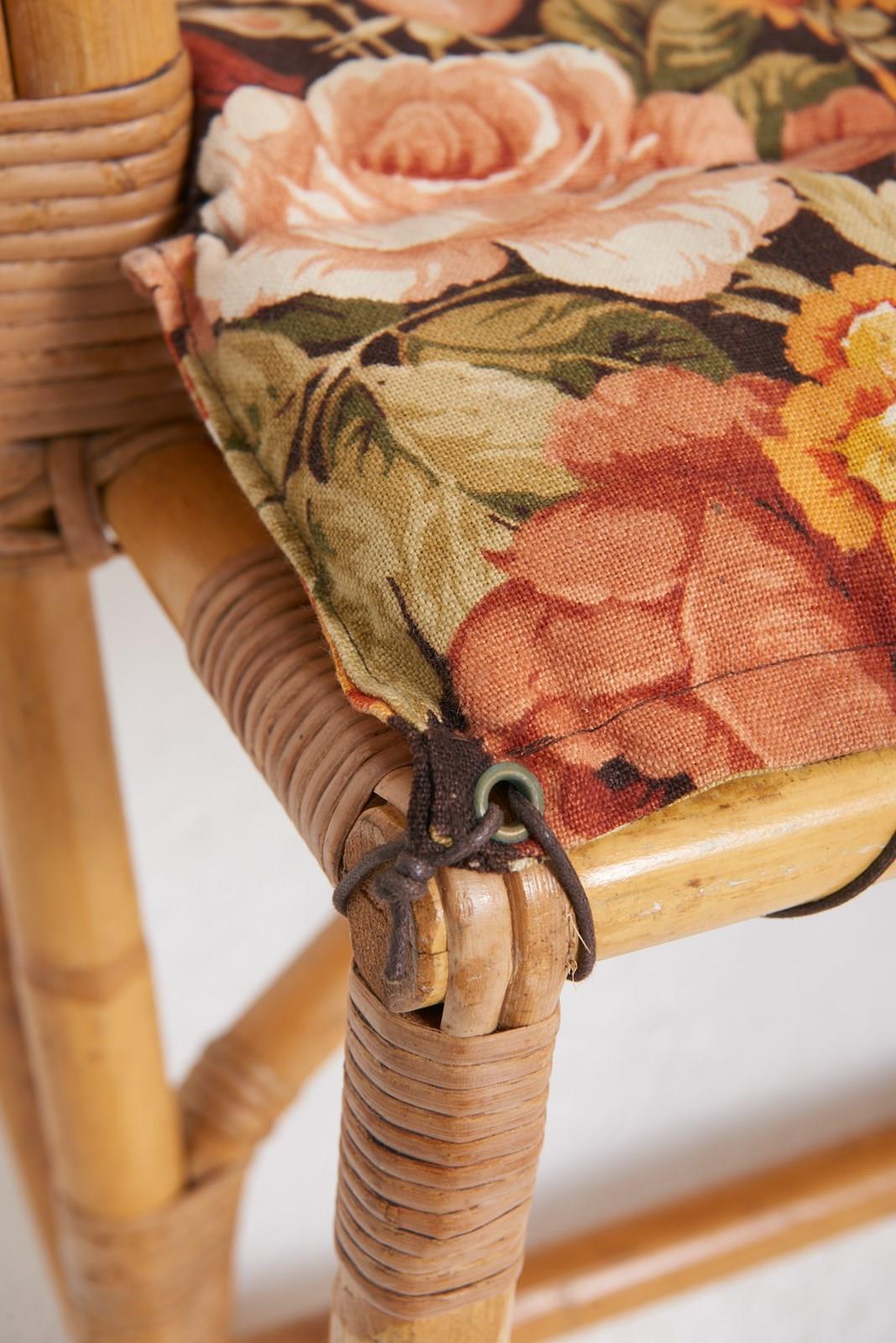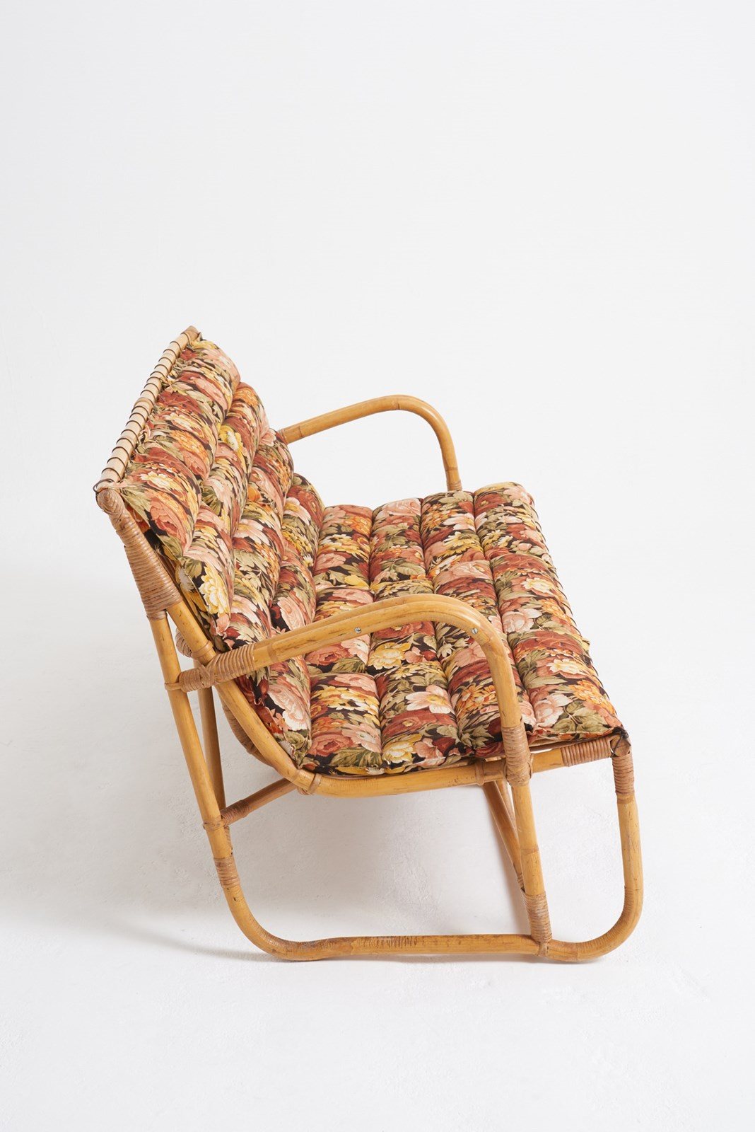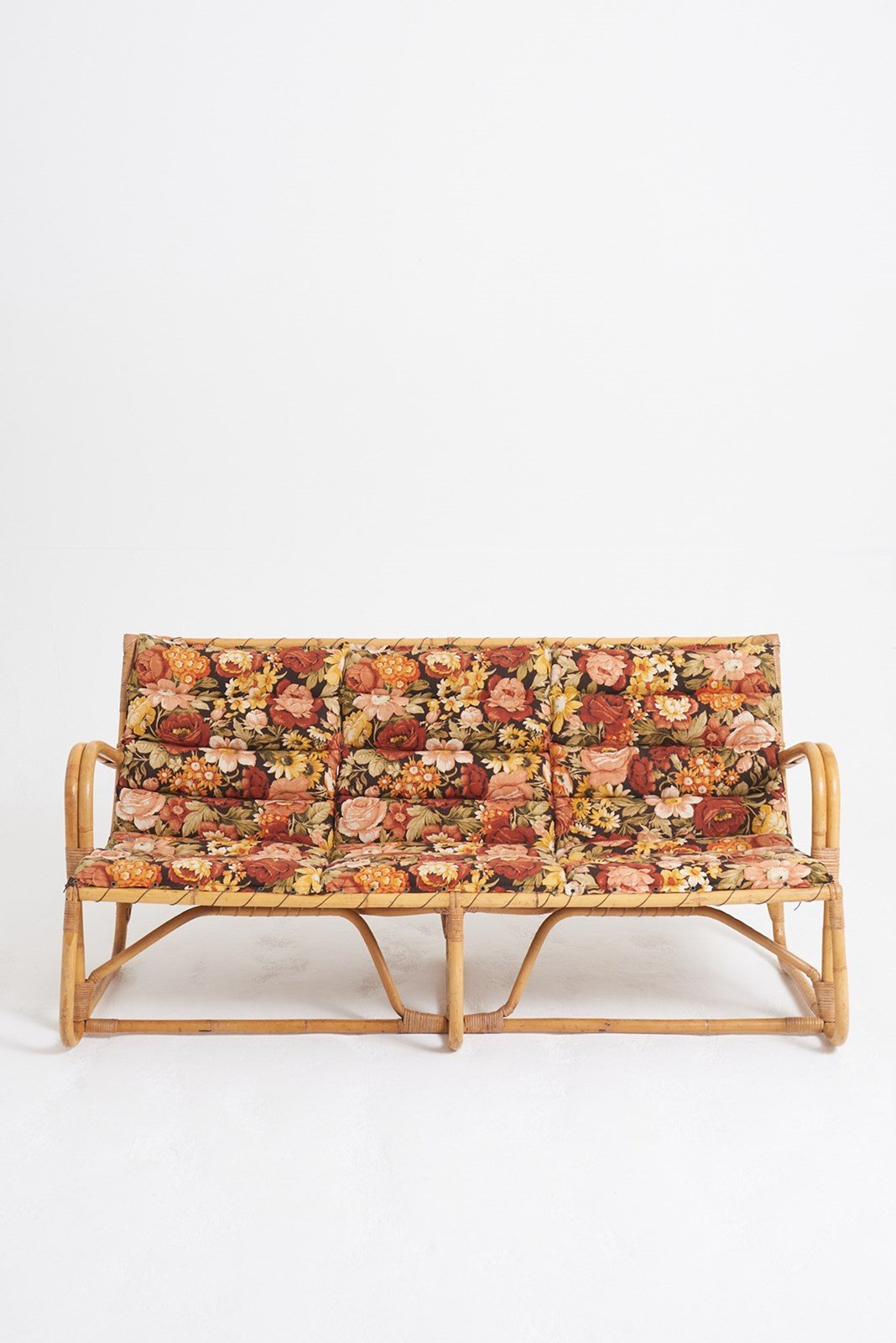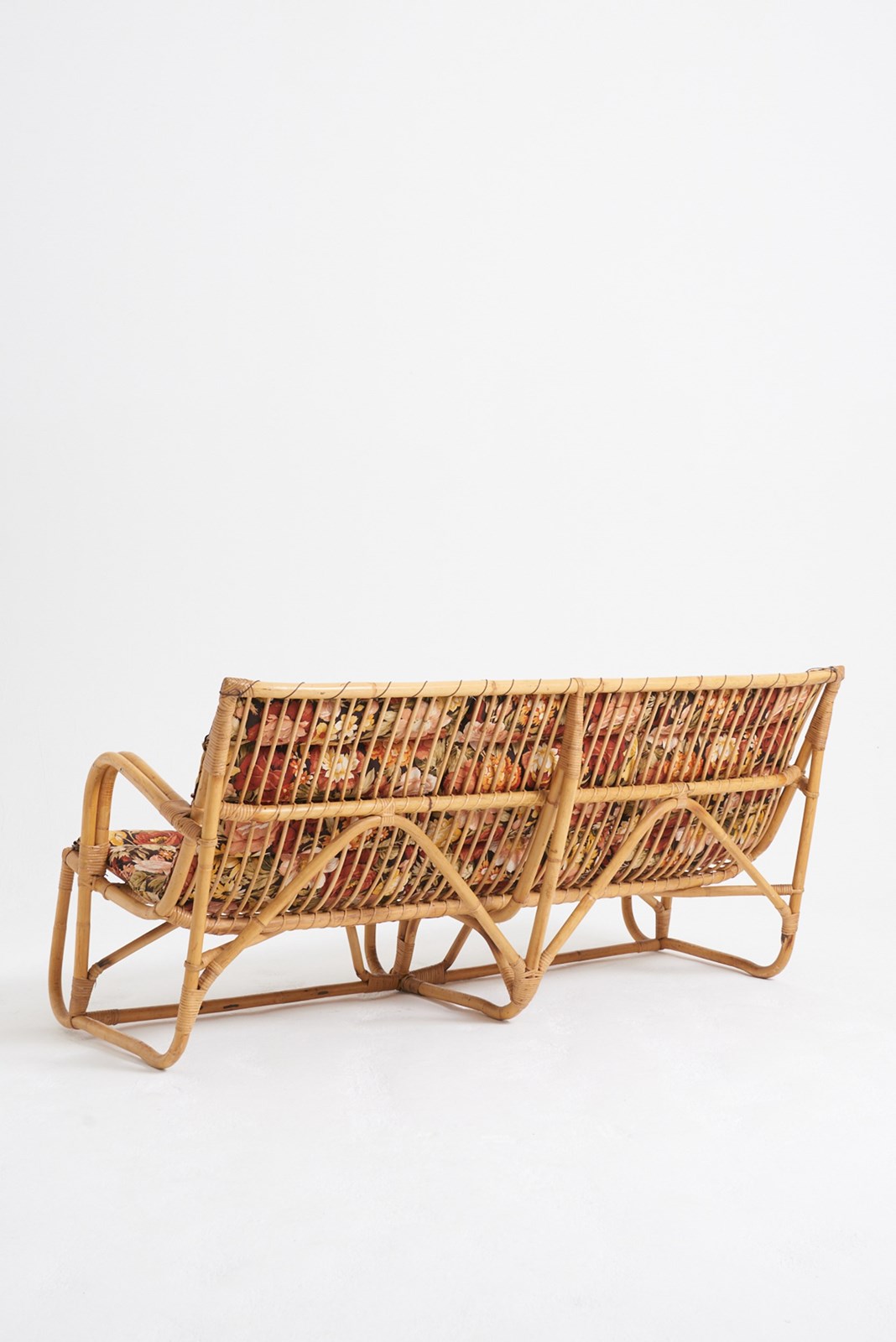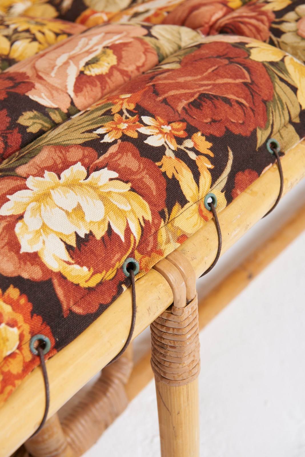 A bamboo and rattan sofa