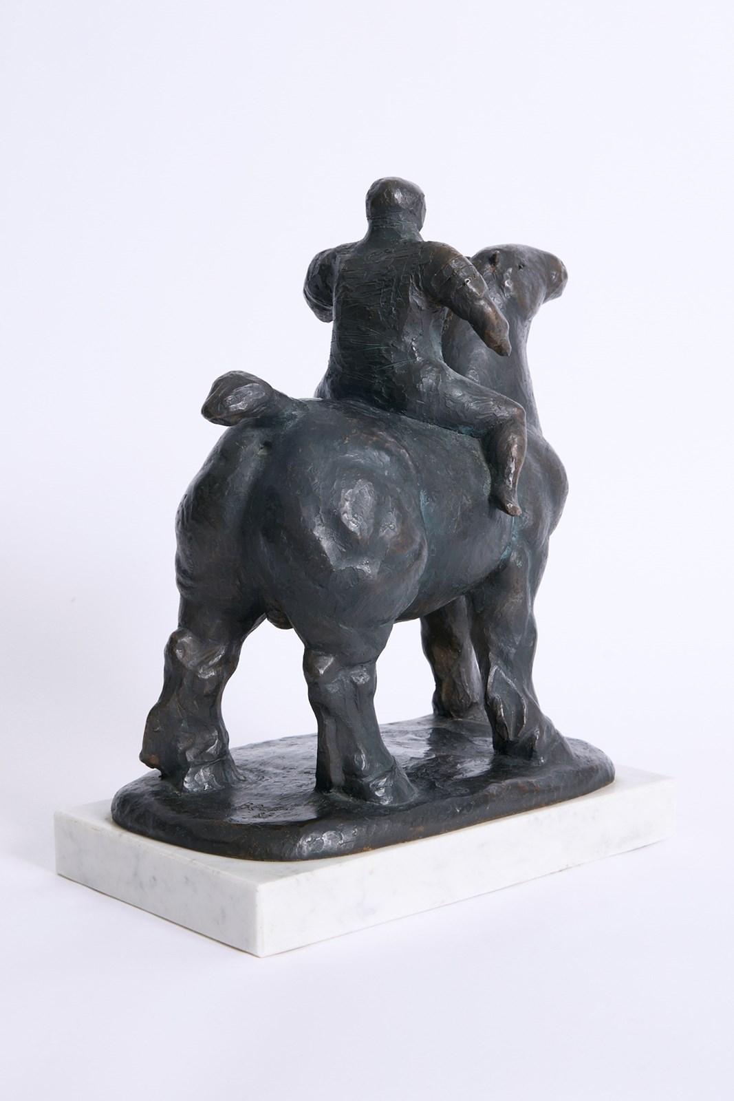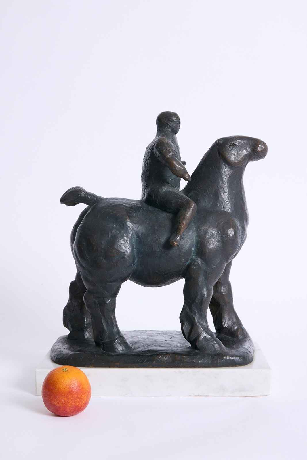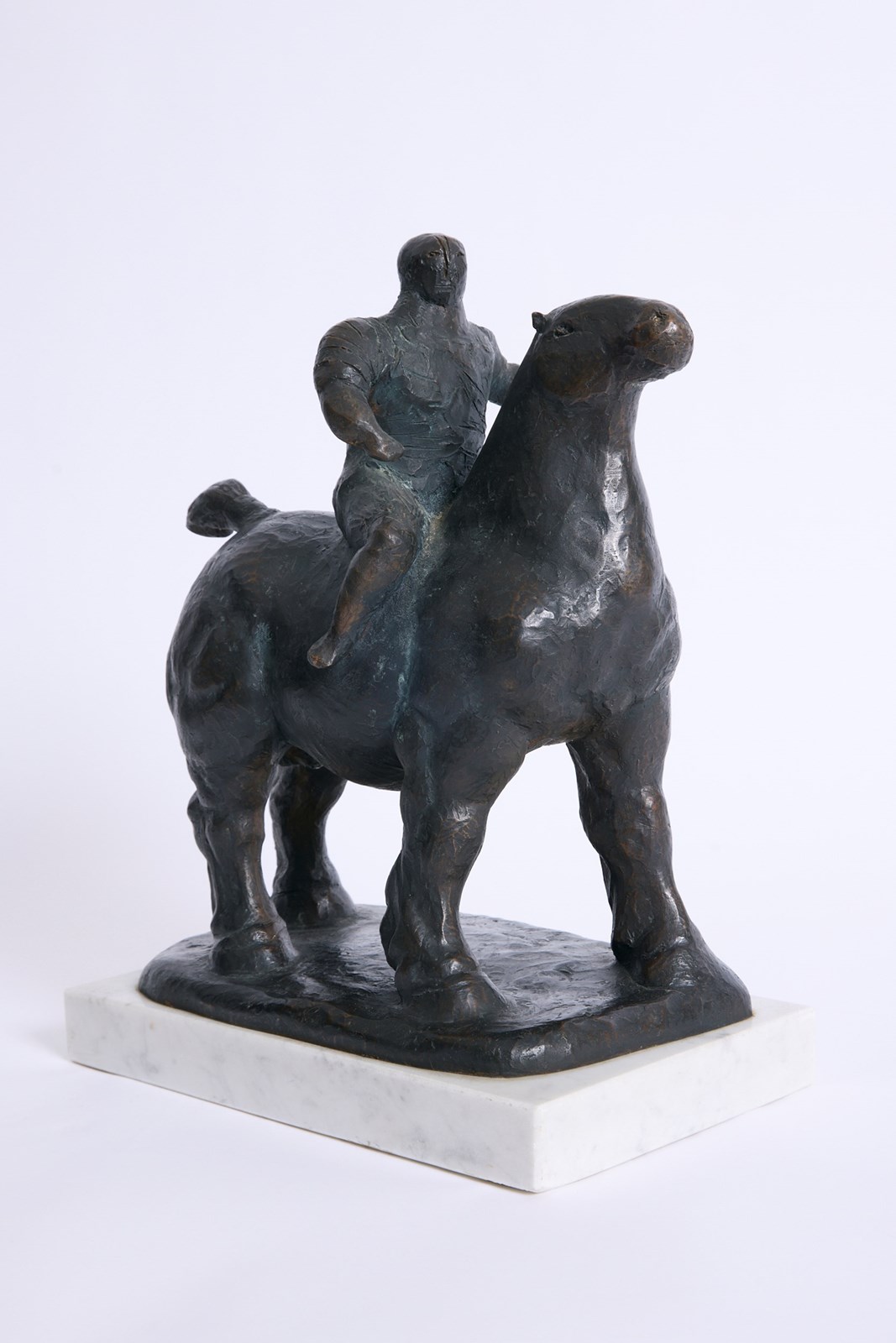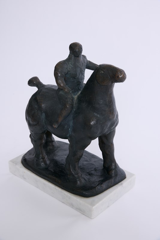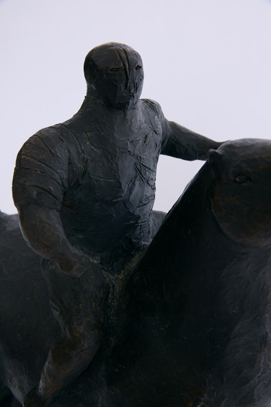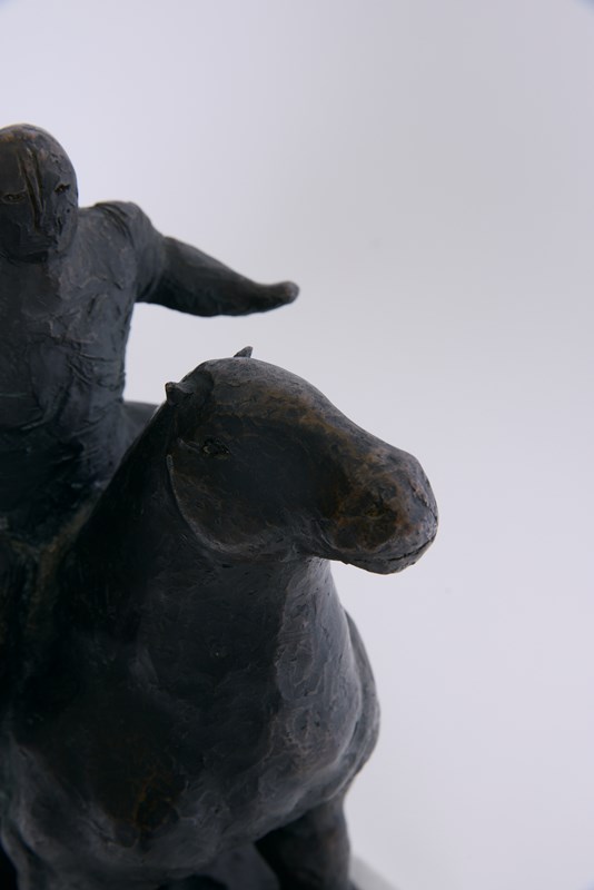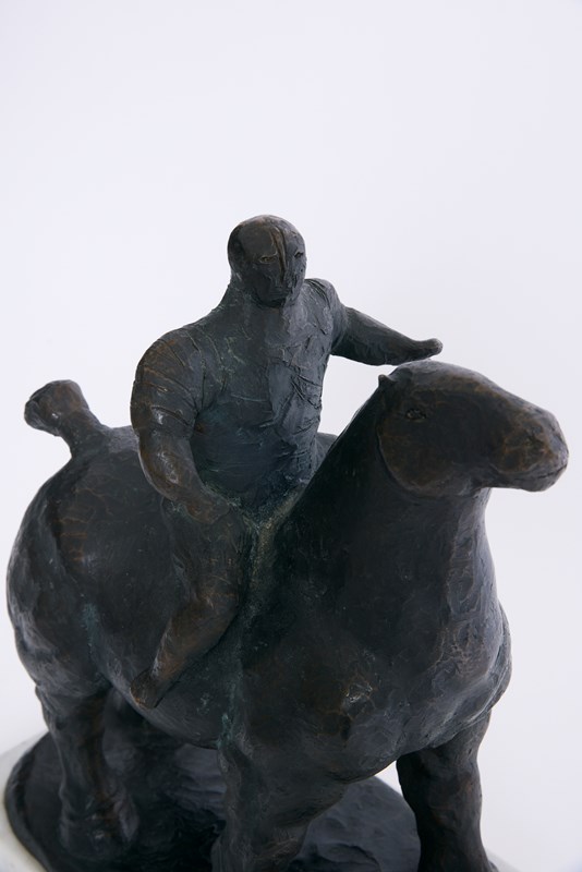A large bronze sculpture of a horseman