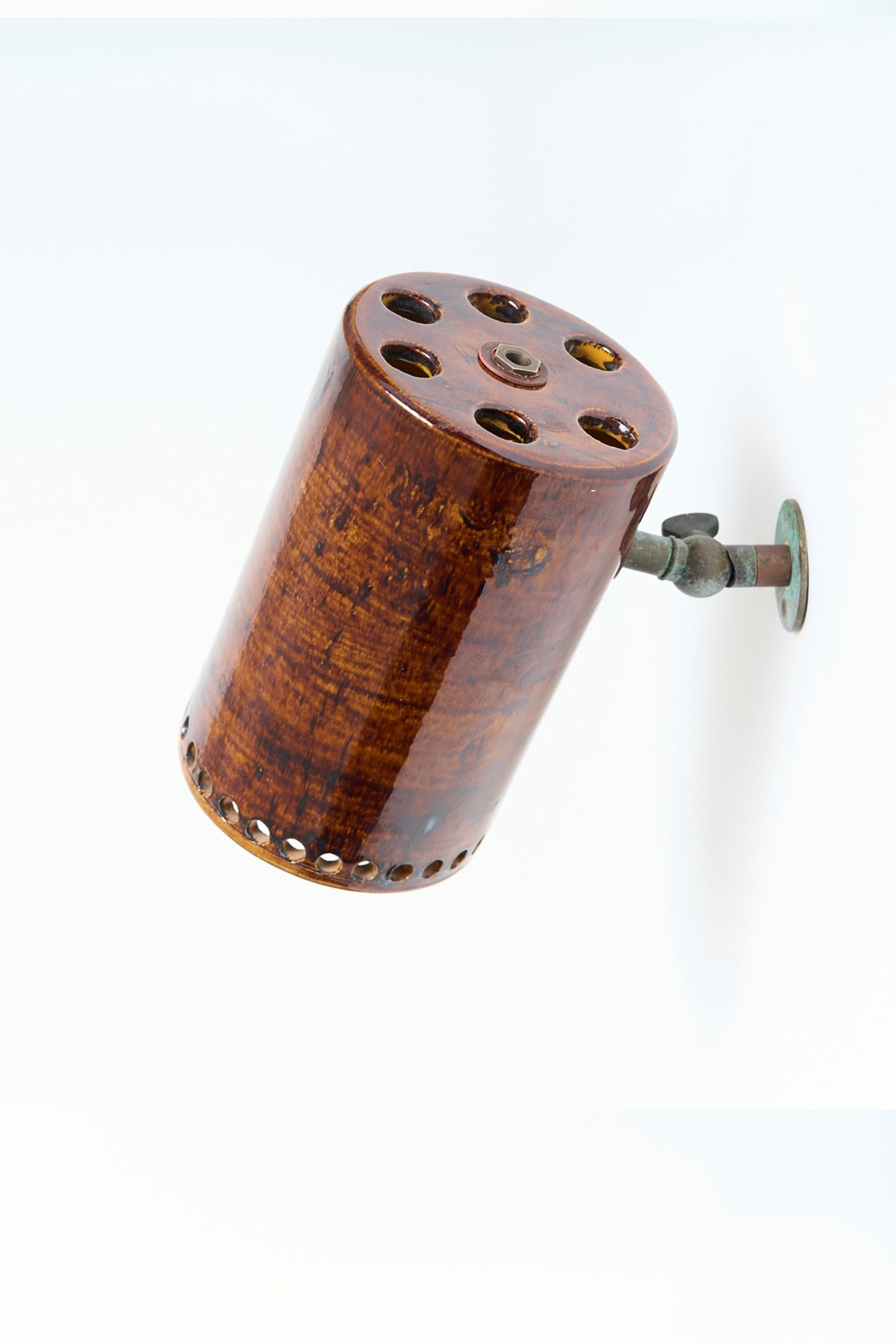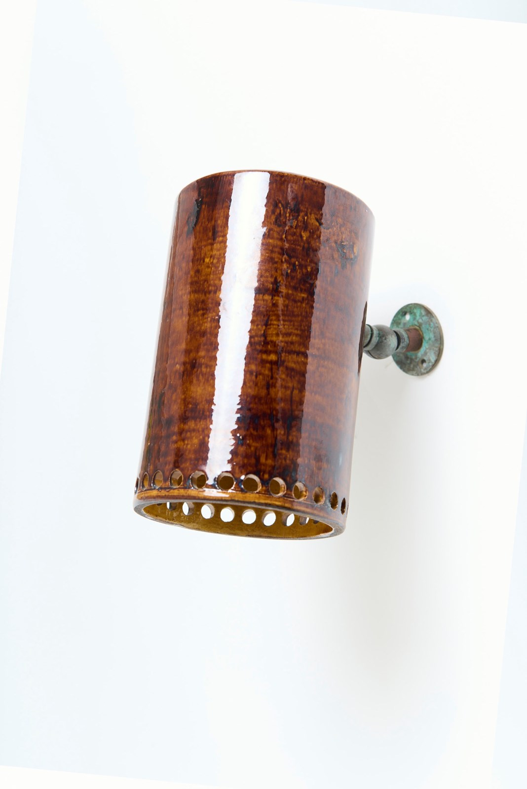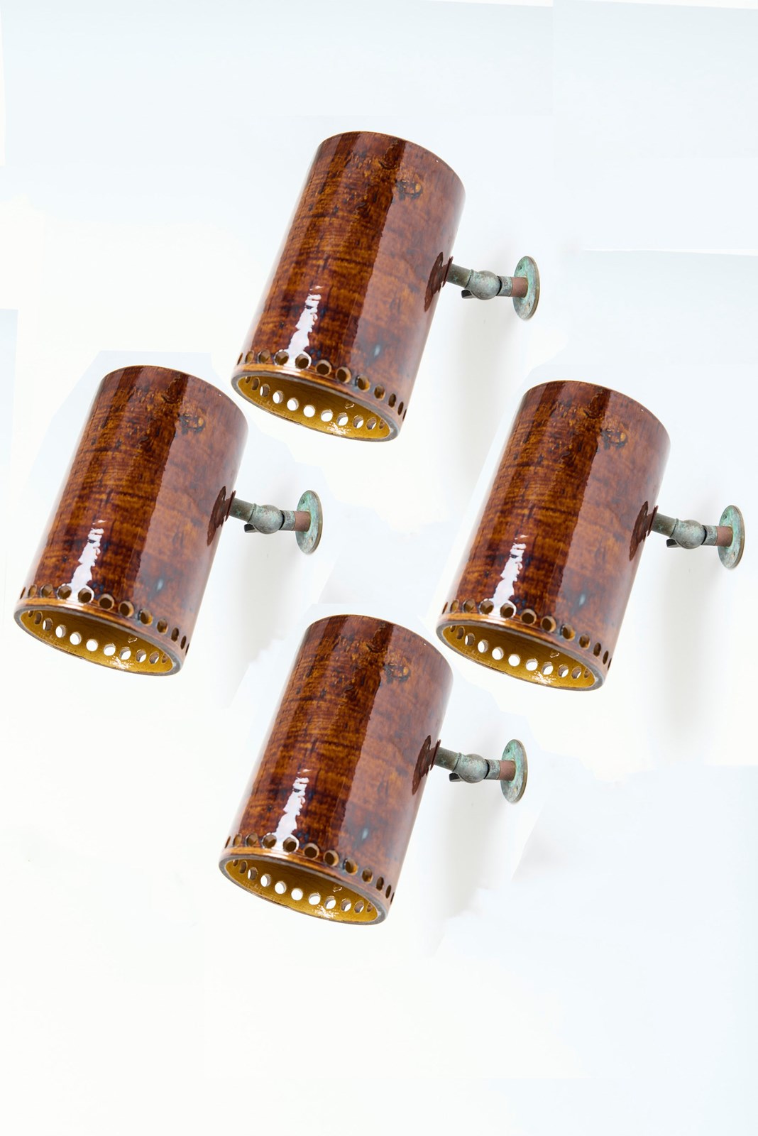 A pair of ceramic wall lights - or spotlights Signed France, 1960s 19 cm high by 19 cm wide by 10.5 cm depth as shown Ceramic: 16 cm high by 10.5 cm diameter Unfolded arm: 5.5 cm