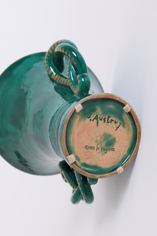 A green ceramic vase by Jean Austruy (1910-2012)