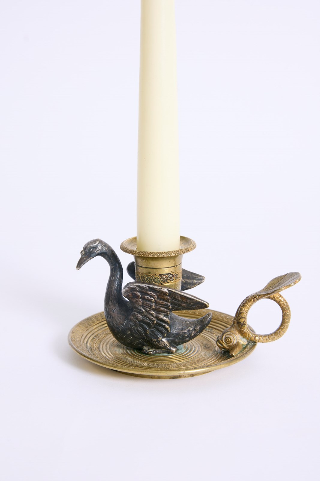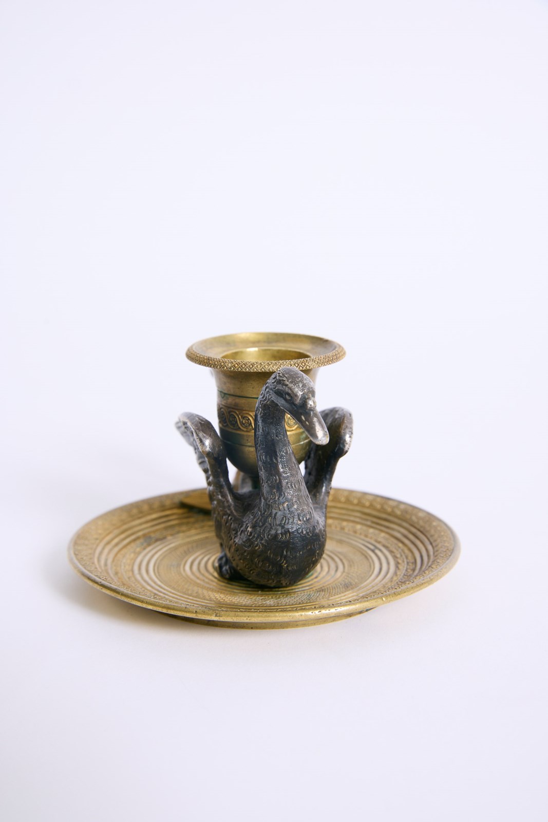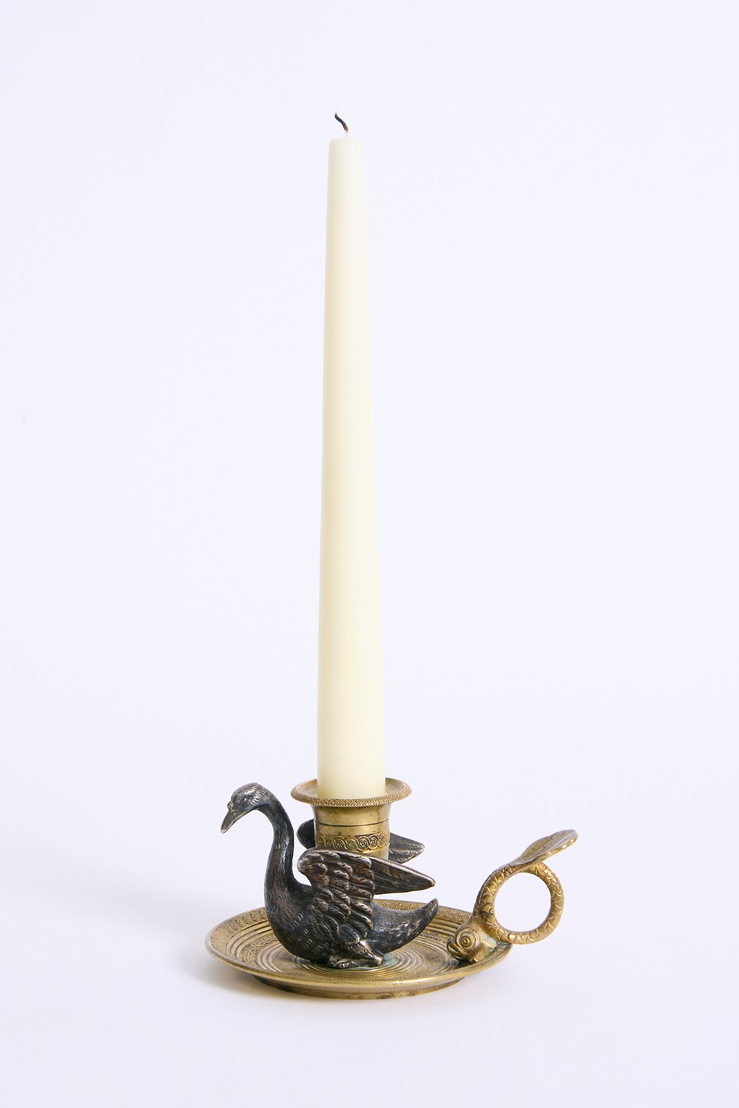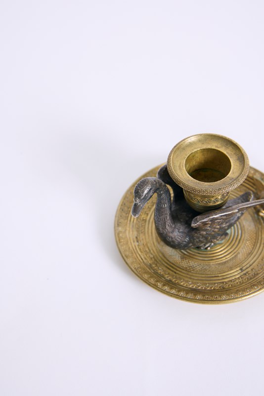 A gilded bronze swan candlestick
