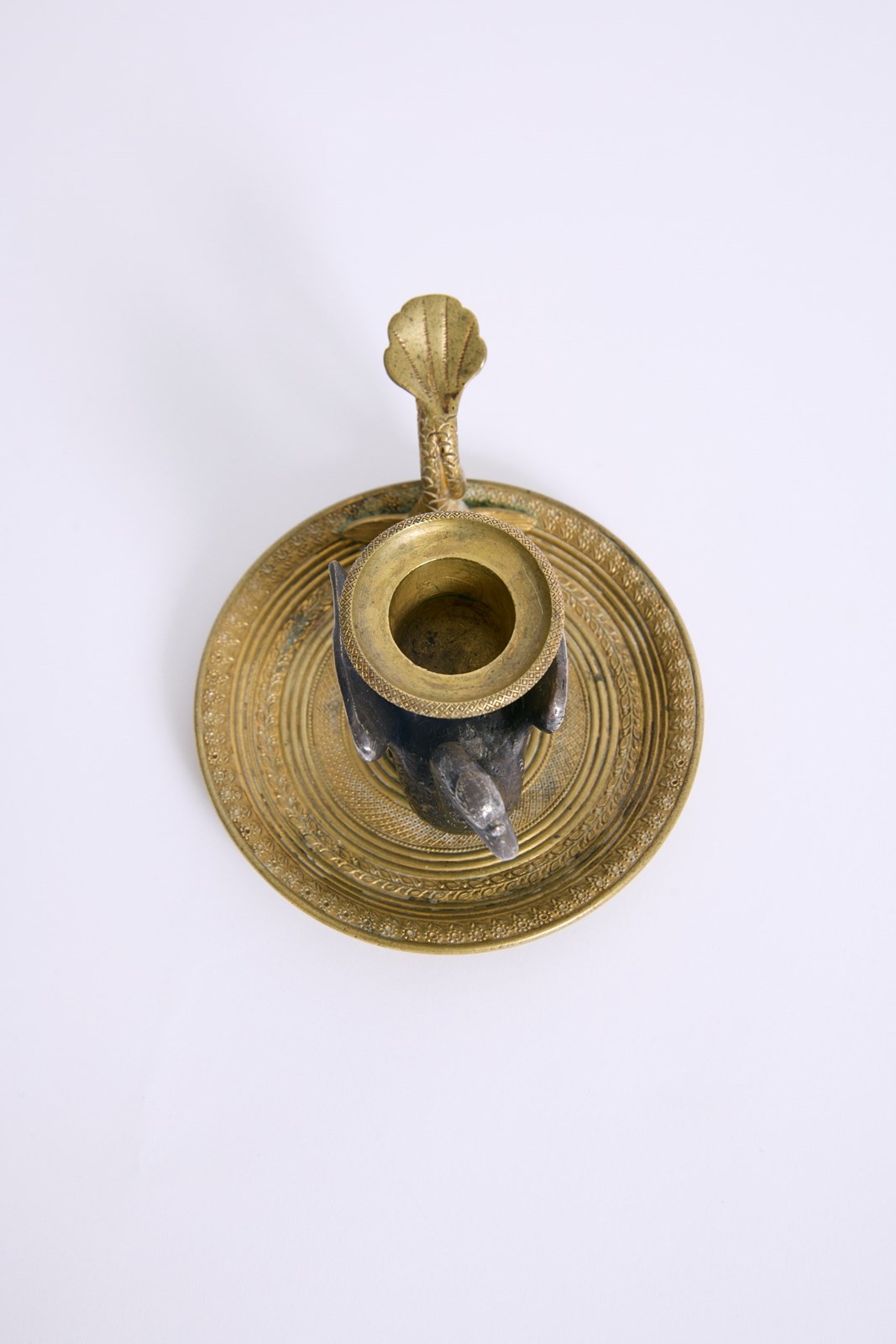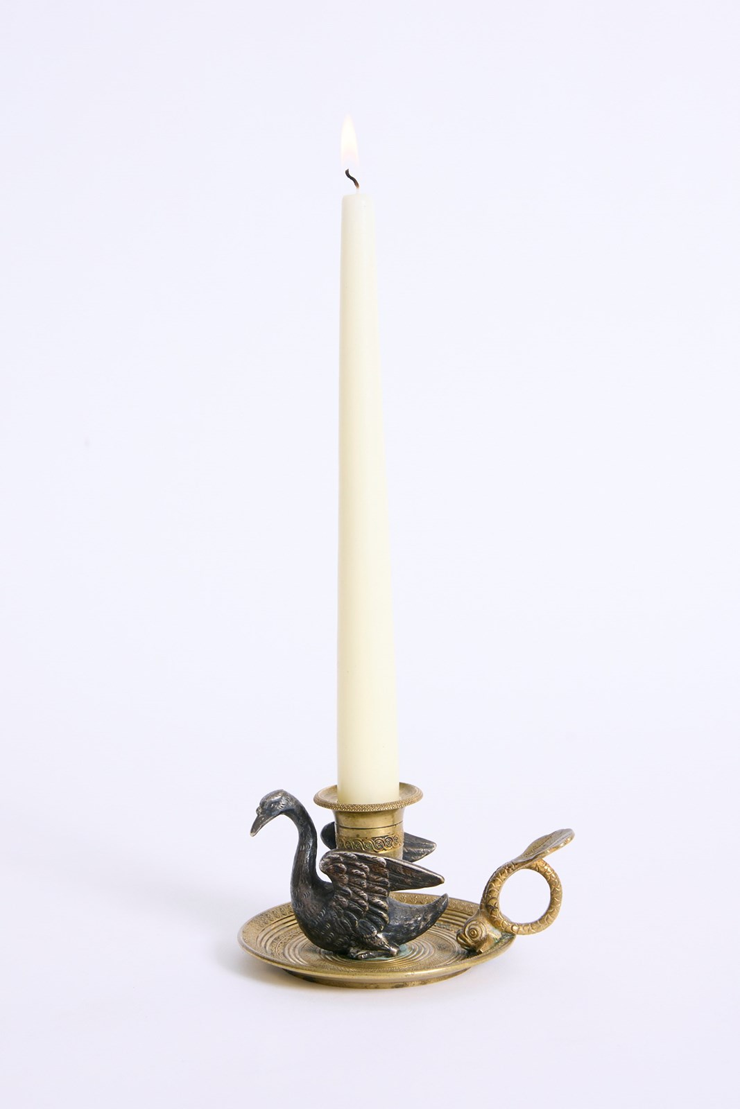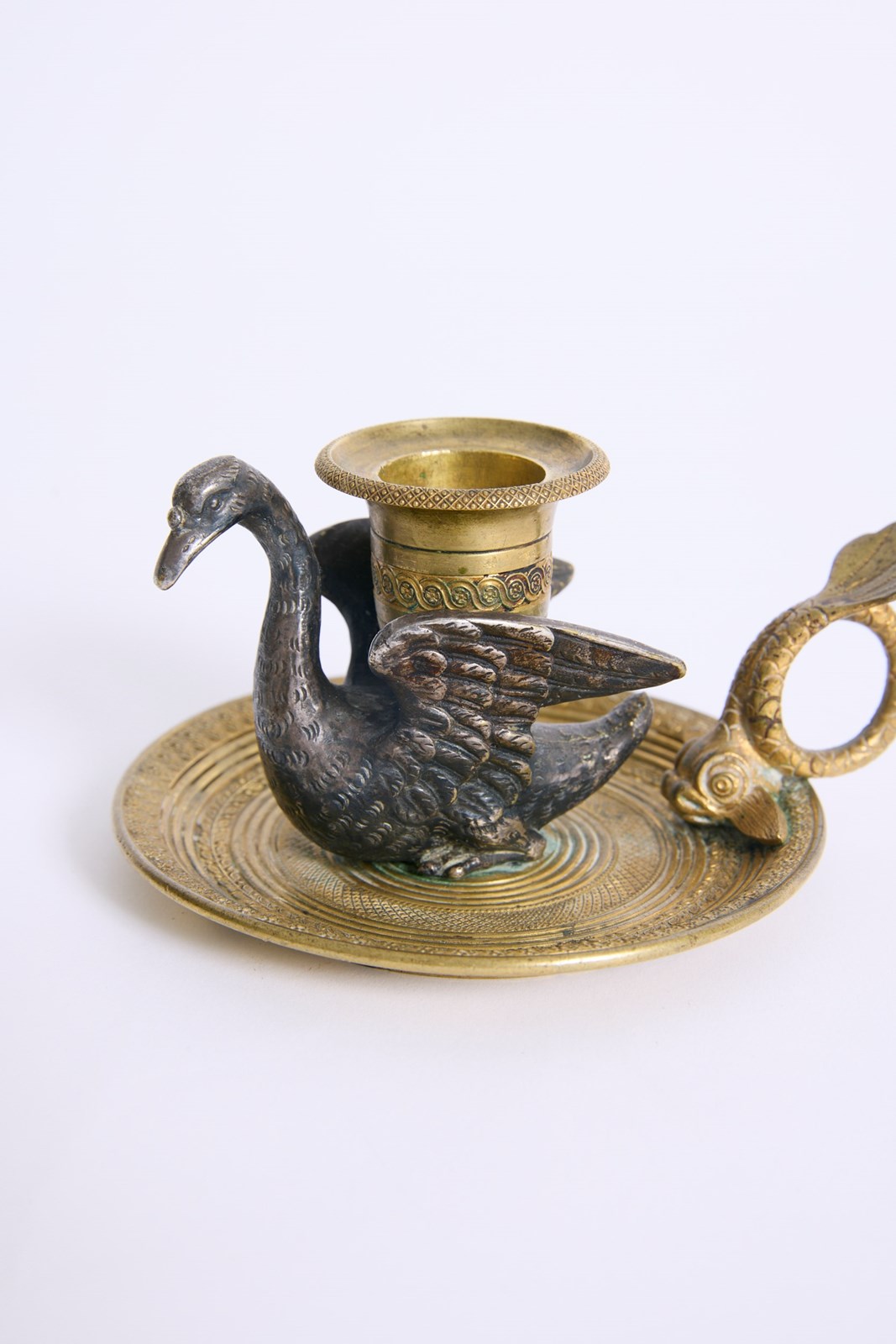 A gilded bronze swan candlestick