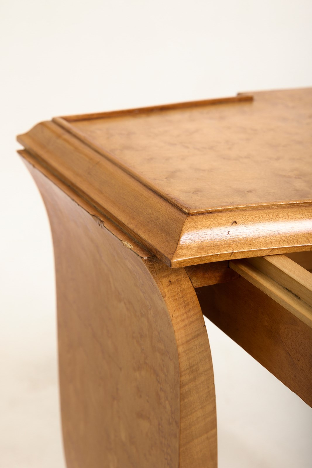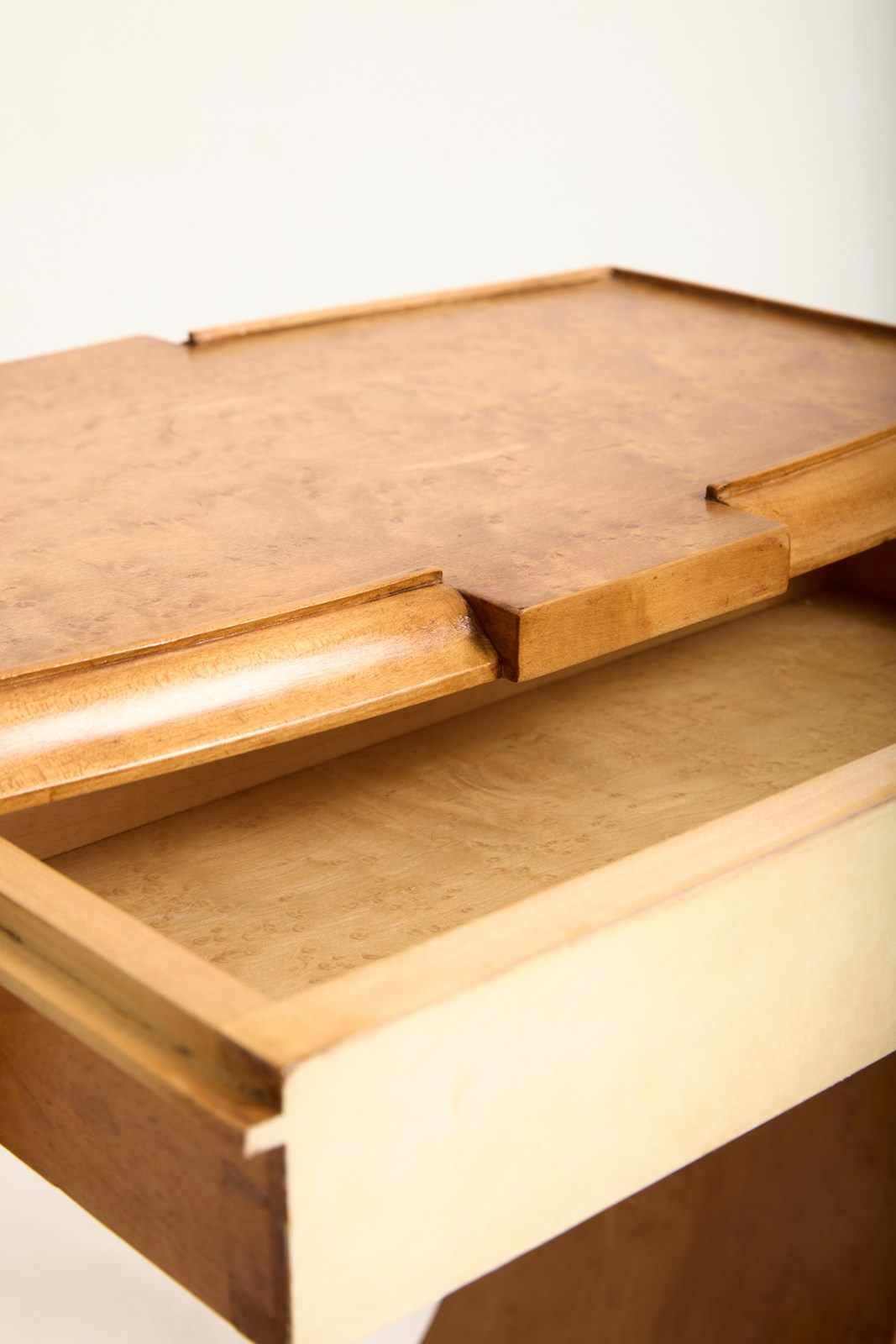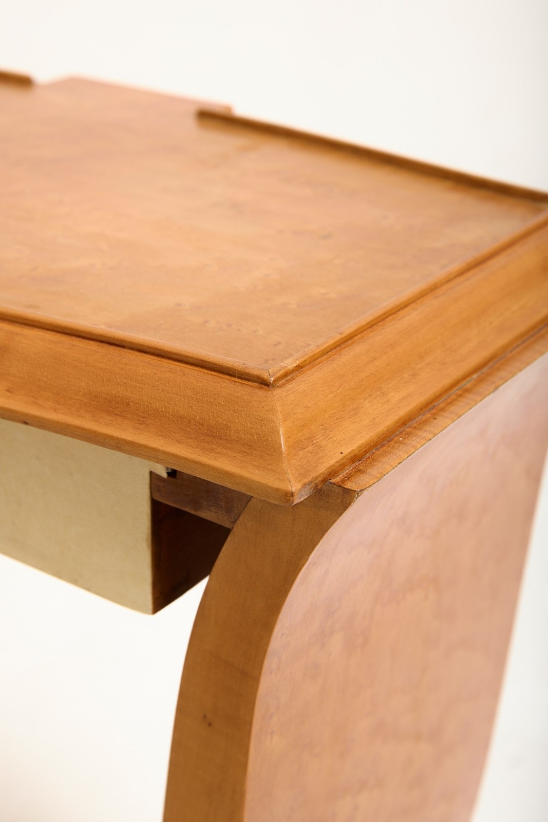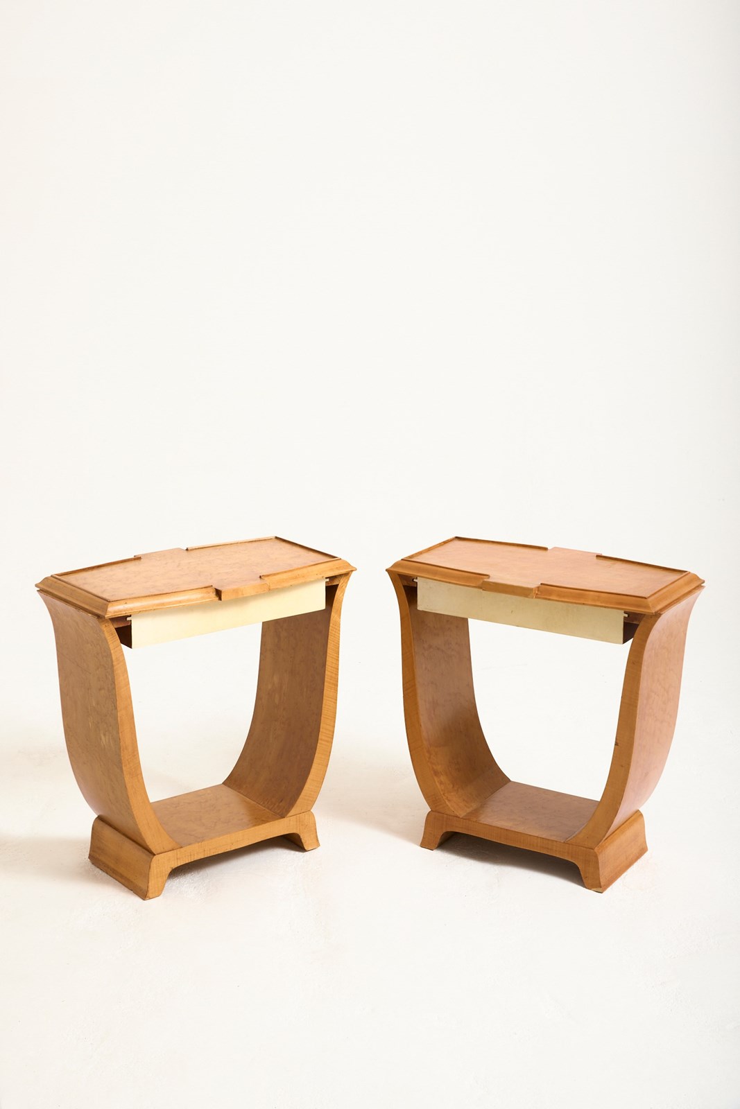 A pair of Art Deco birch and velum side tables