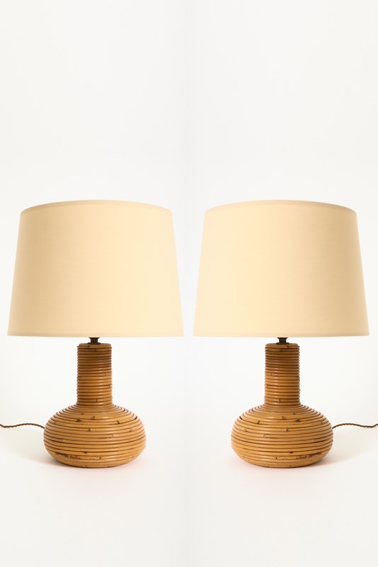 Pair Of Rattan Table Lamps