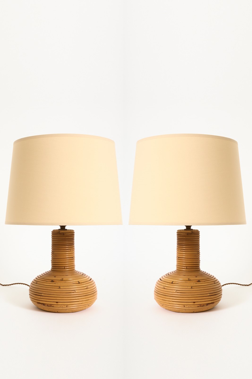 A pair of rattan table lamps