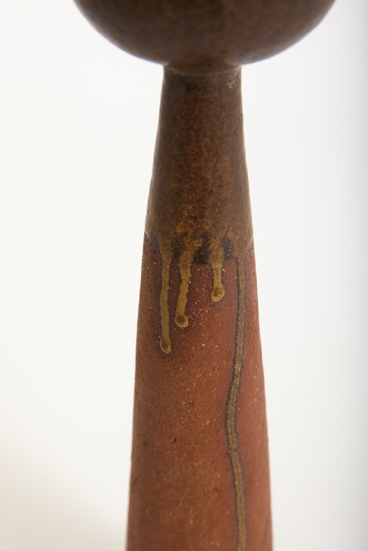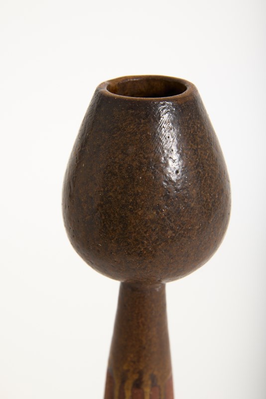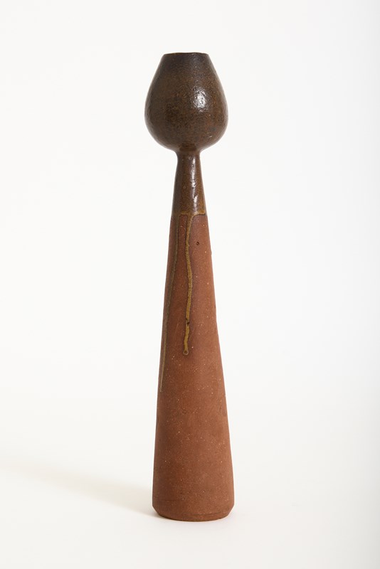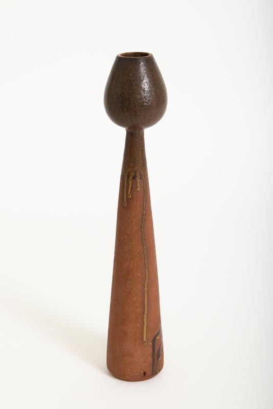 A tall stoneware vase