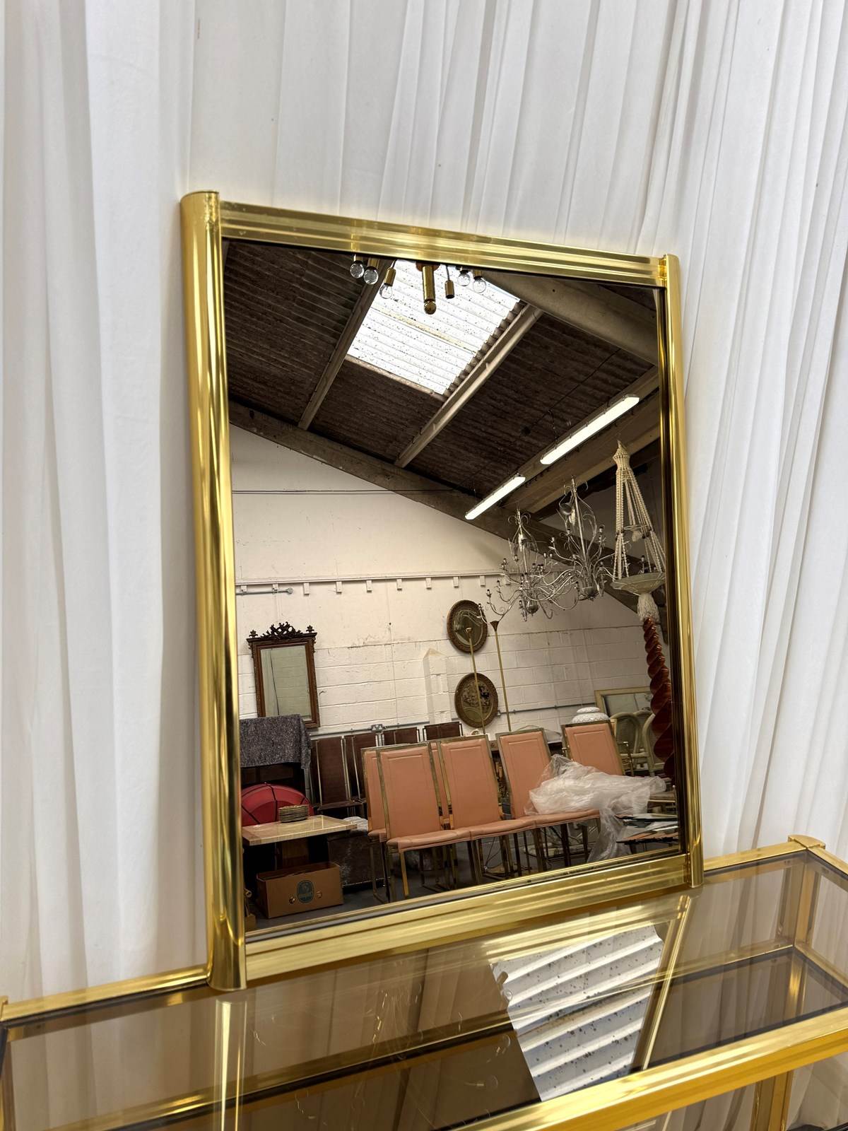 The matching wall mirror, framed in coordinating metal, completes the set beautifully—ideal for an entryway, hallway, or dressing space.Condition: