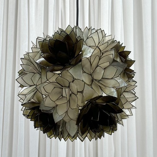 Unusual gilt & glass Italian chandelier by Masca. Rare piece that includes unique glass sheaf of wheat designs. In good original condition with some loss of gilt. 6 arms holding e14 light bulbs. Some heat discoloration below the bulbs nothing too noticeable.