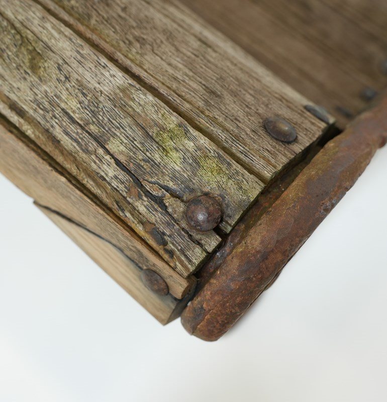 The top scrolled rail has had primitive repair with a 12.5cm oak piece.