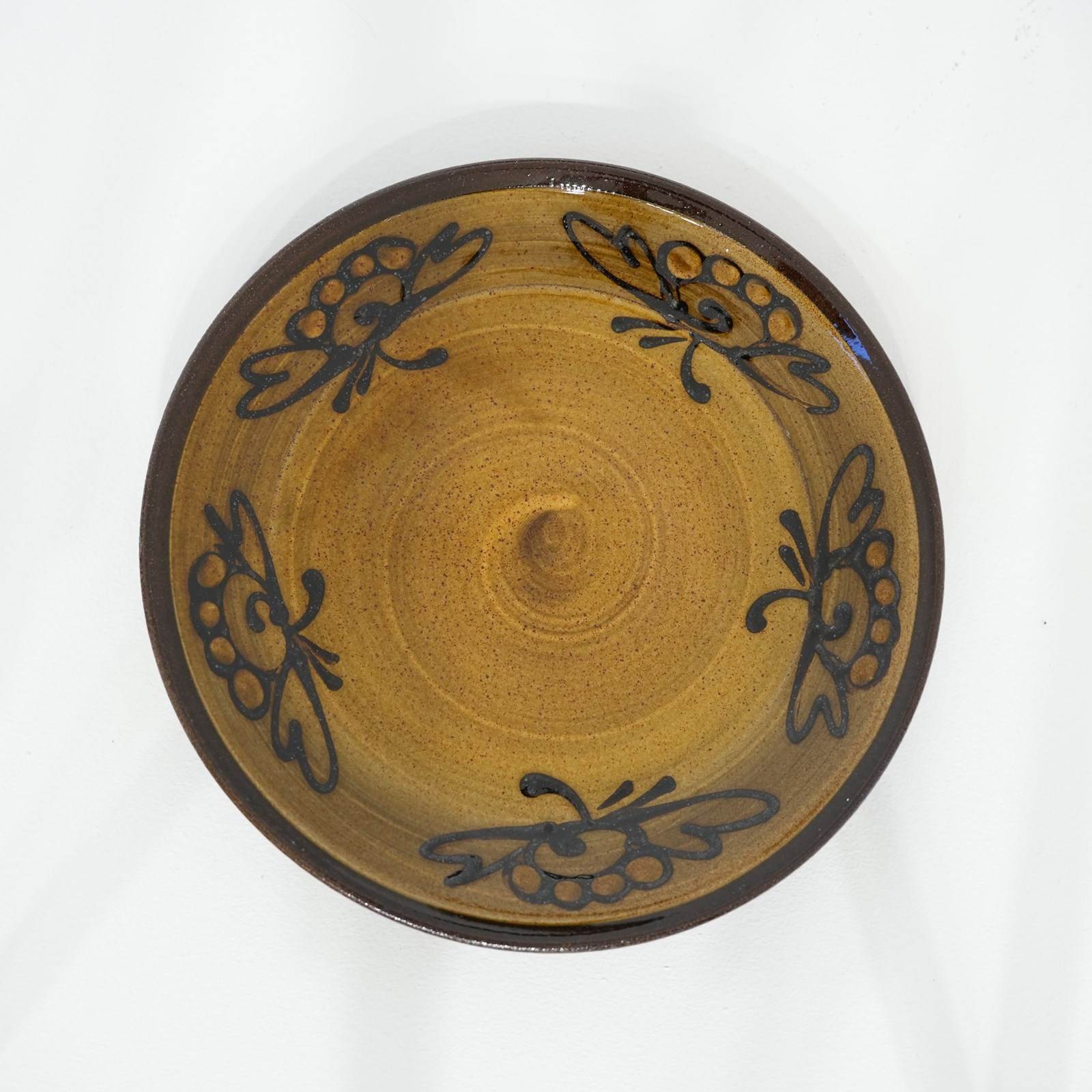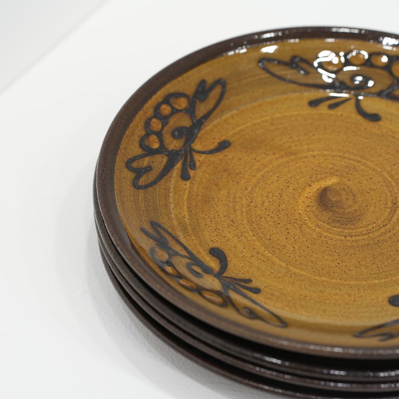 Set of four mid-century slipware studio pottery plates, from maker Coxwold Pottery.