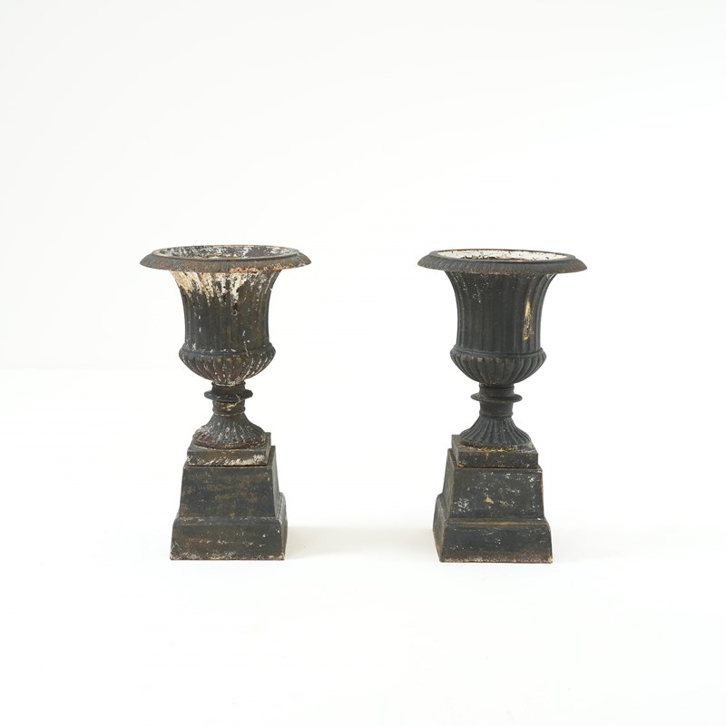 Pair Of Cast Iron Campana Urns On Plinths