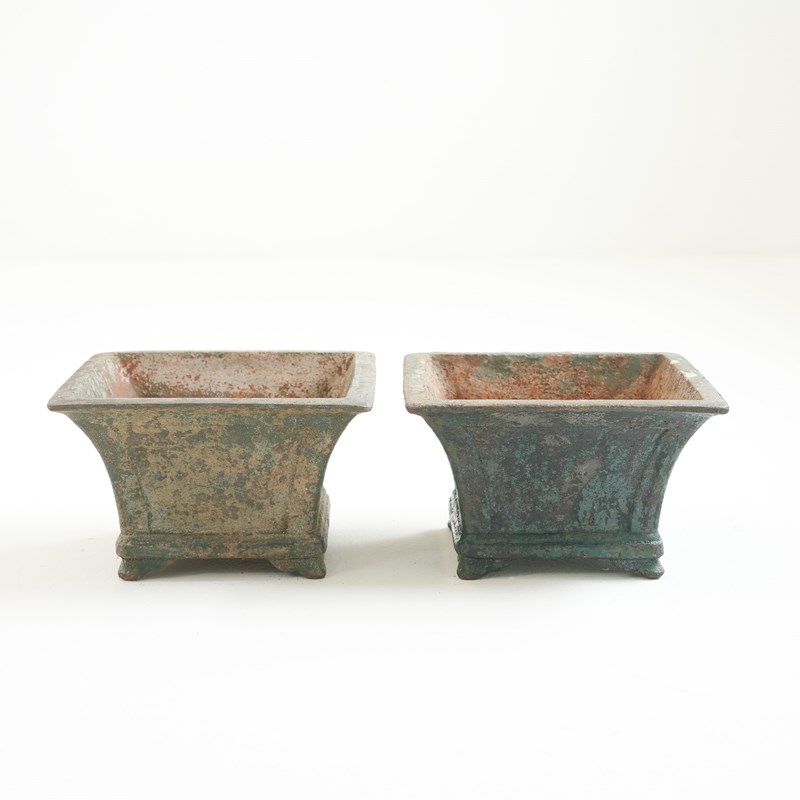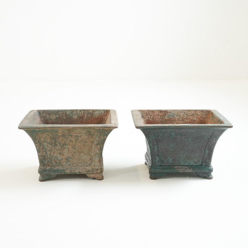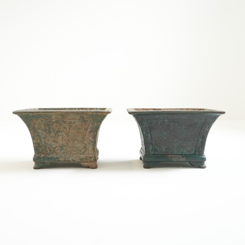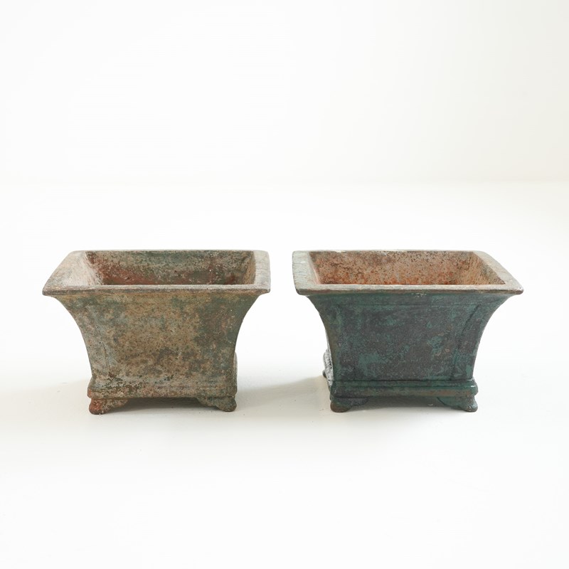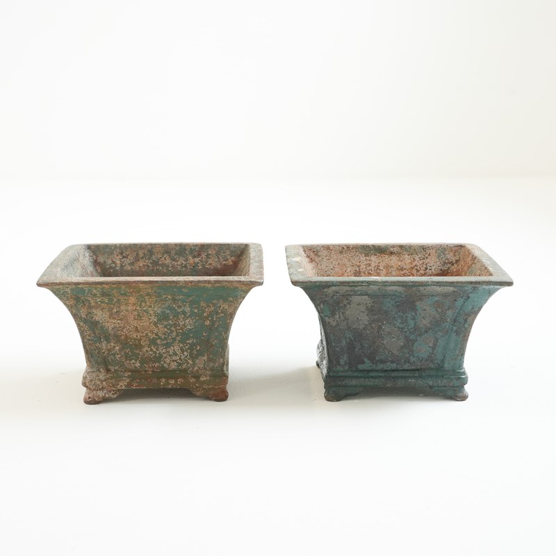 Pair Of Small Painted Cast Iron Garden Urns