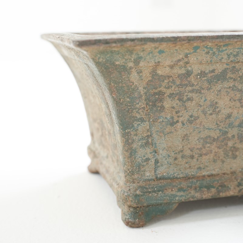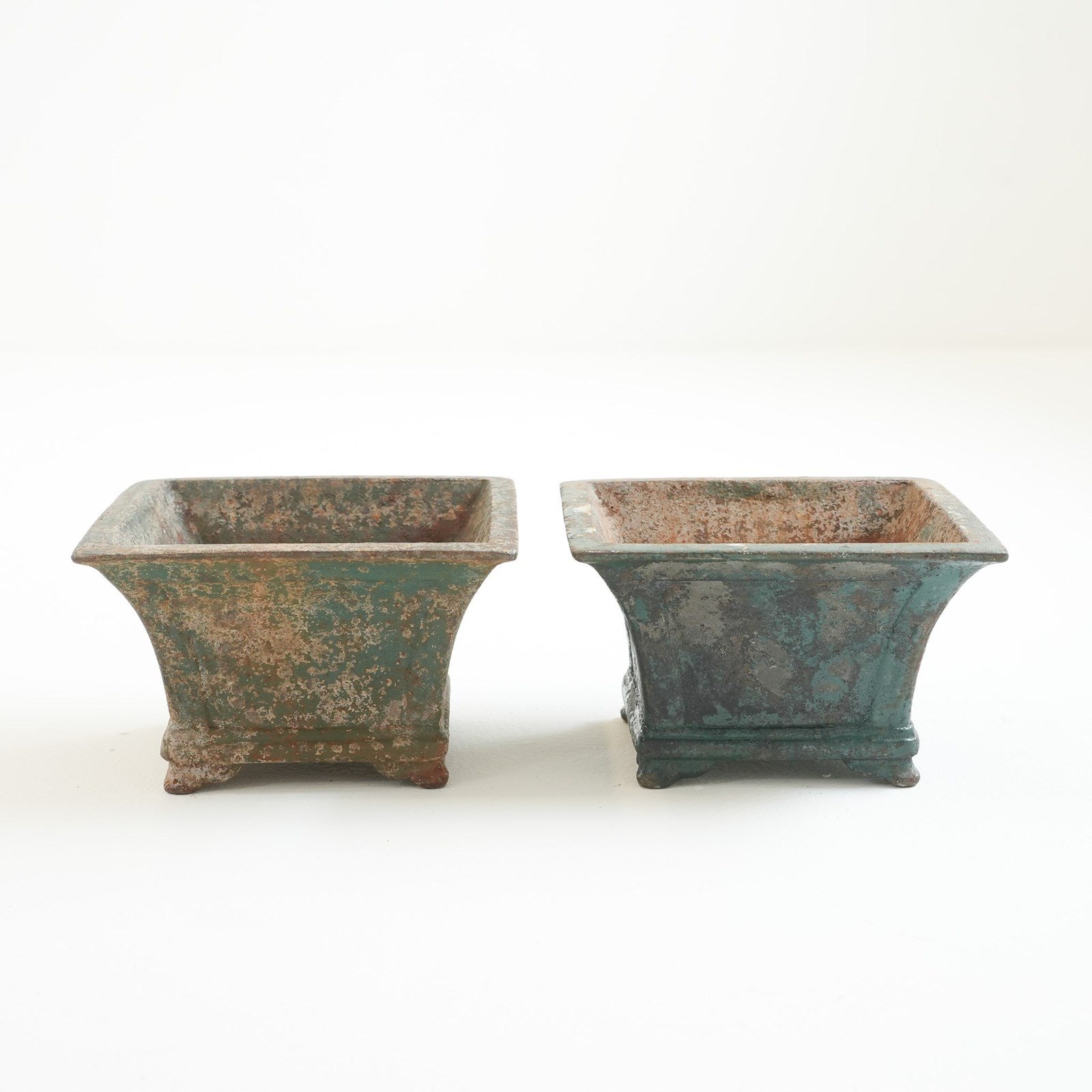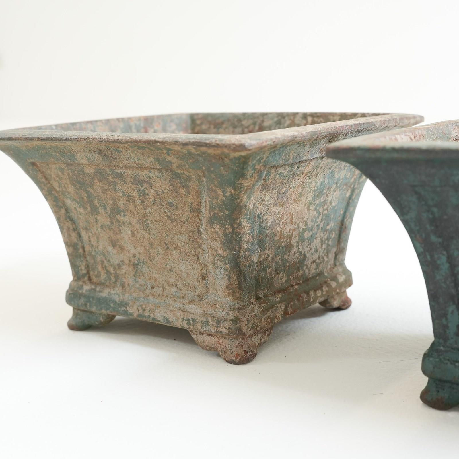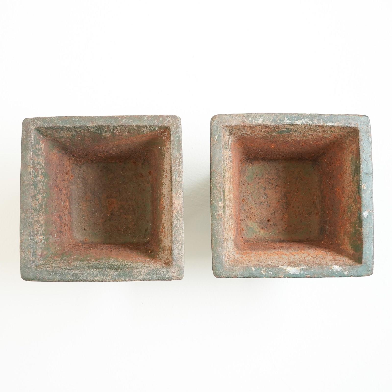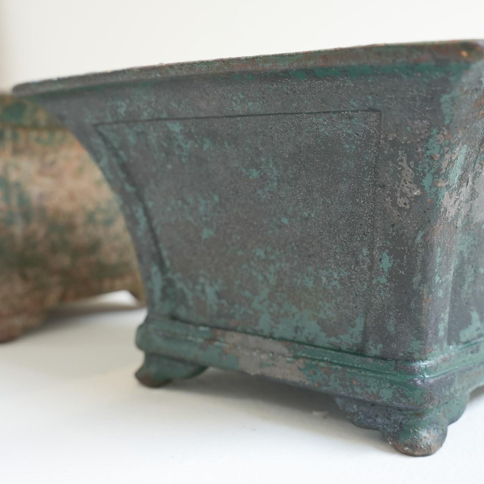 A pair of small painted cast iron garden urns.