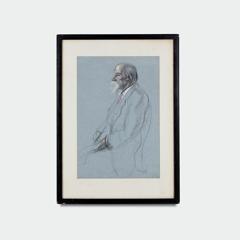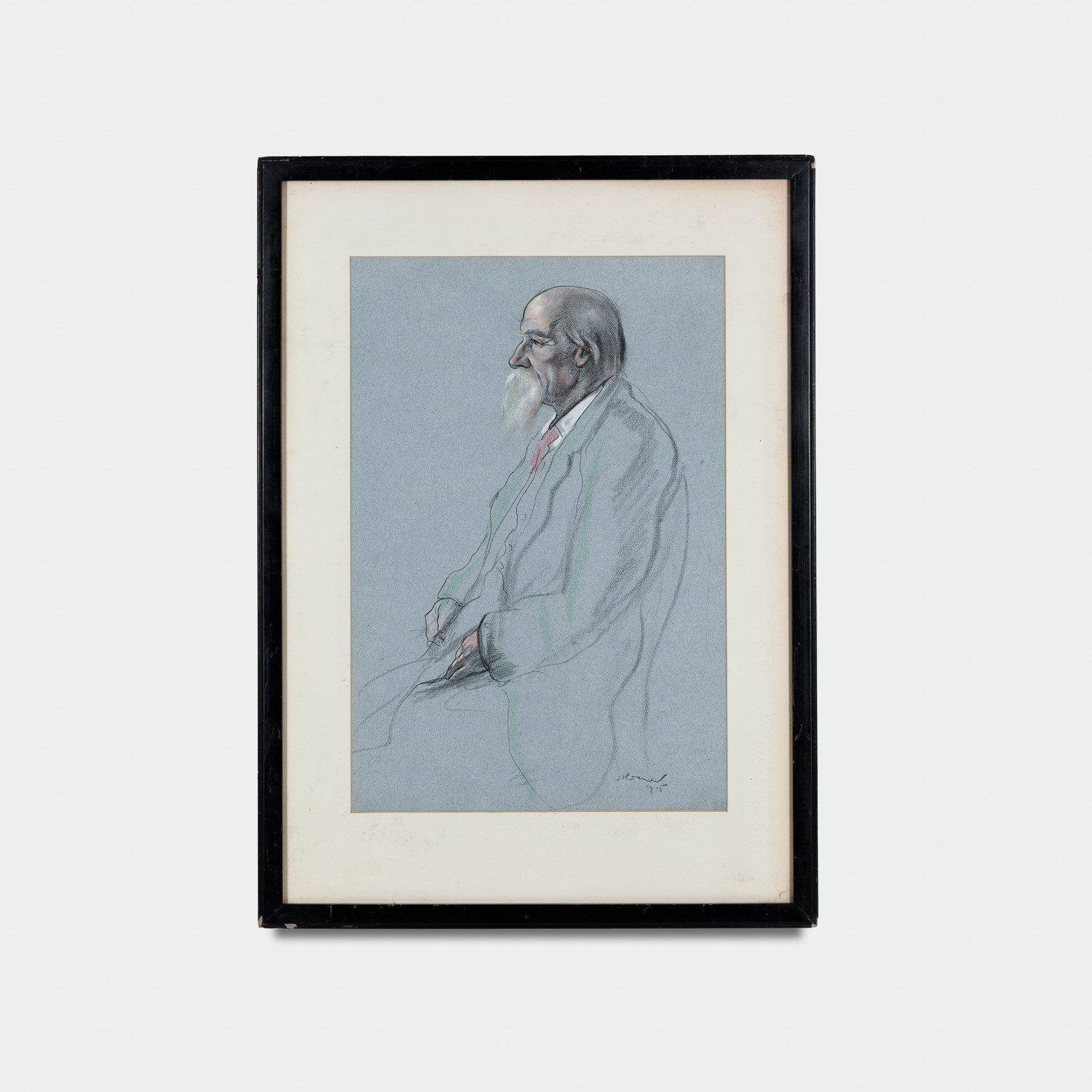 Portrait of an old man, pastel on blue paper, signed and dated 1915 by Jacob Kramer, in an ebonised frame.