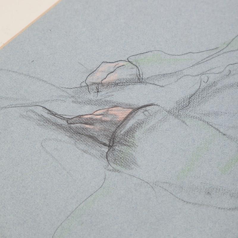 The drawing is in good condition, however there is some discolouration to the mount. The piece could be hung as is, but if reframing is preferred we can assist with this, please get in touch.