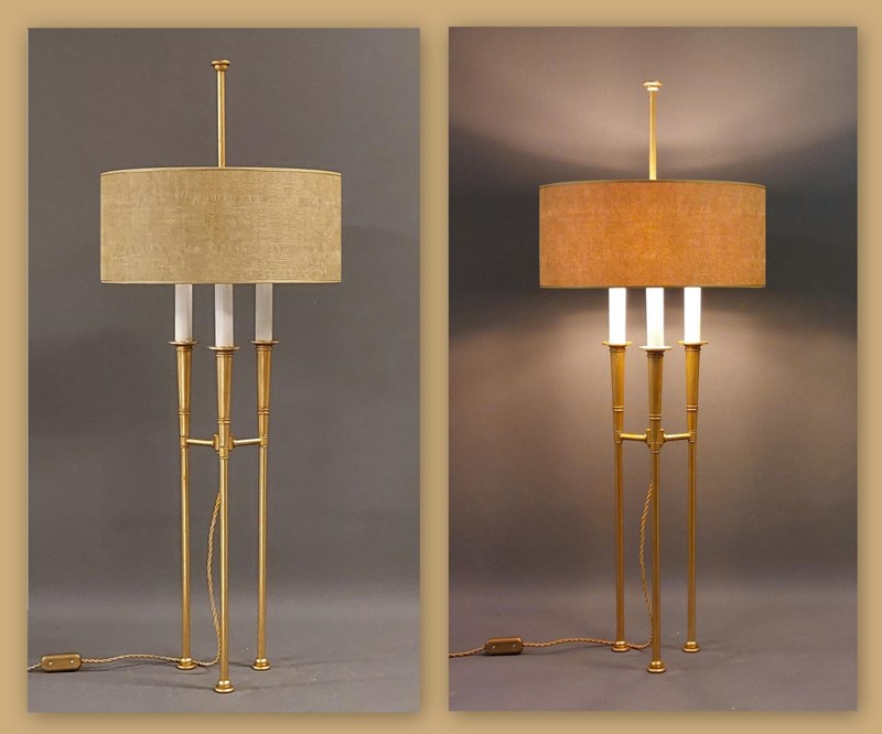 Lamp can be fitted with lamp holders inside the candle sleeves or with a triple cluster.