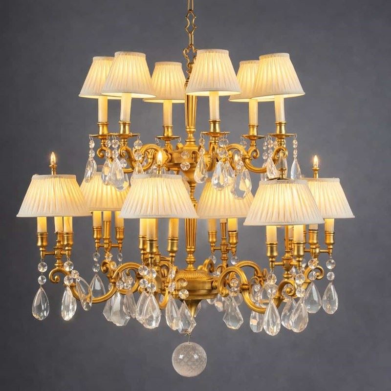 Last image is an AI created in aged gold leaf and silk knife pleat shades. ( all other images is the real deal...☺)