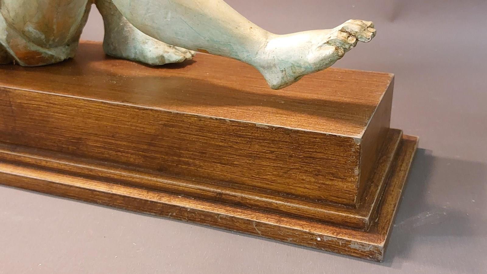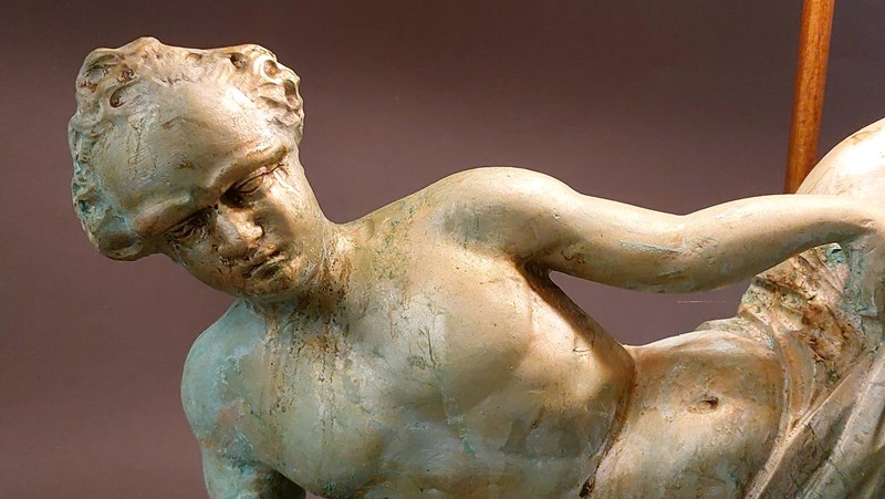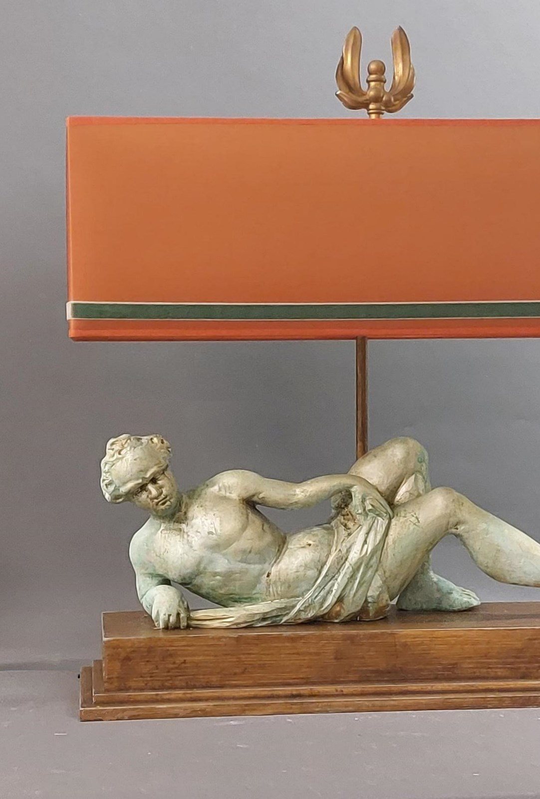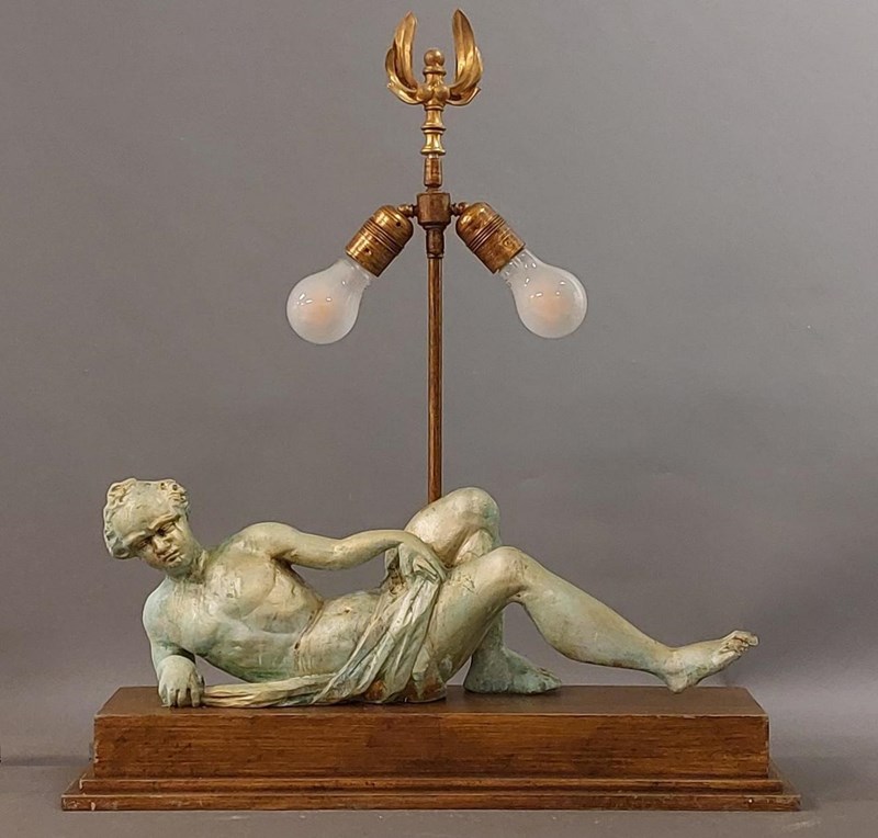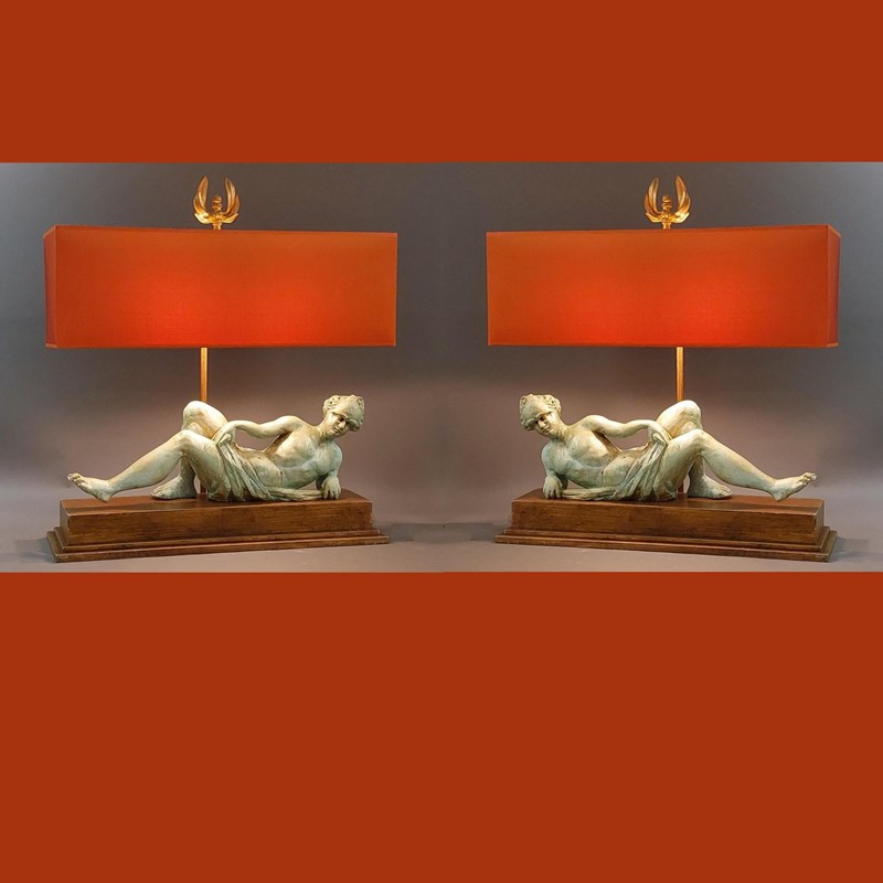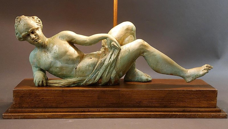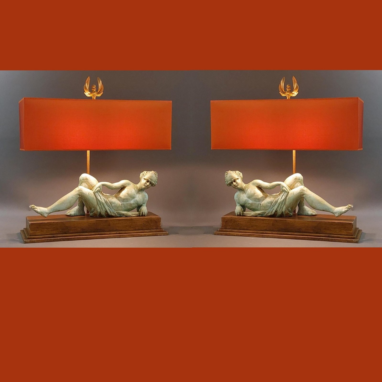 Pair of vintage carved lying Roman figures mounted as lamps.