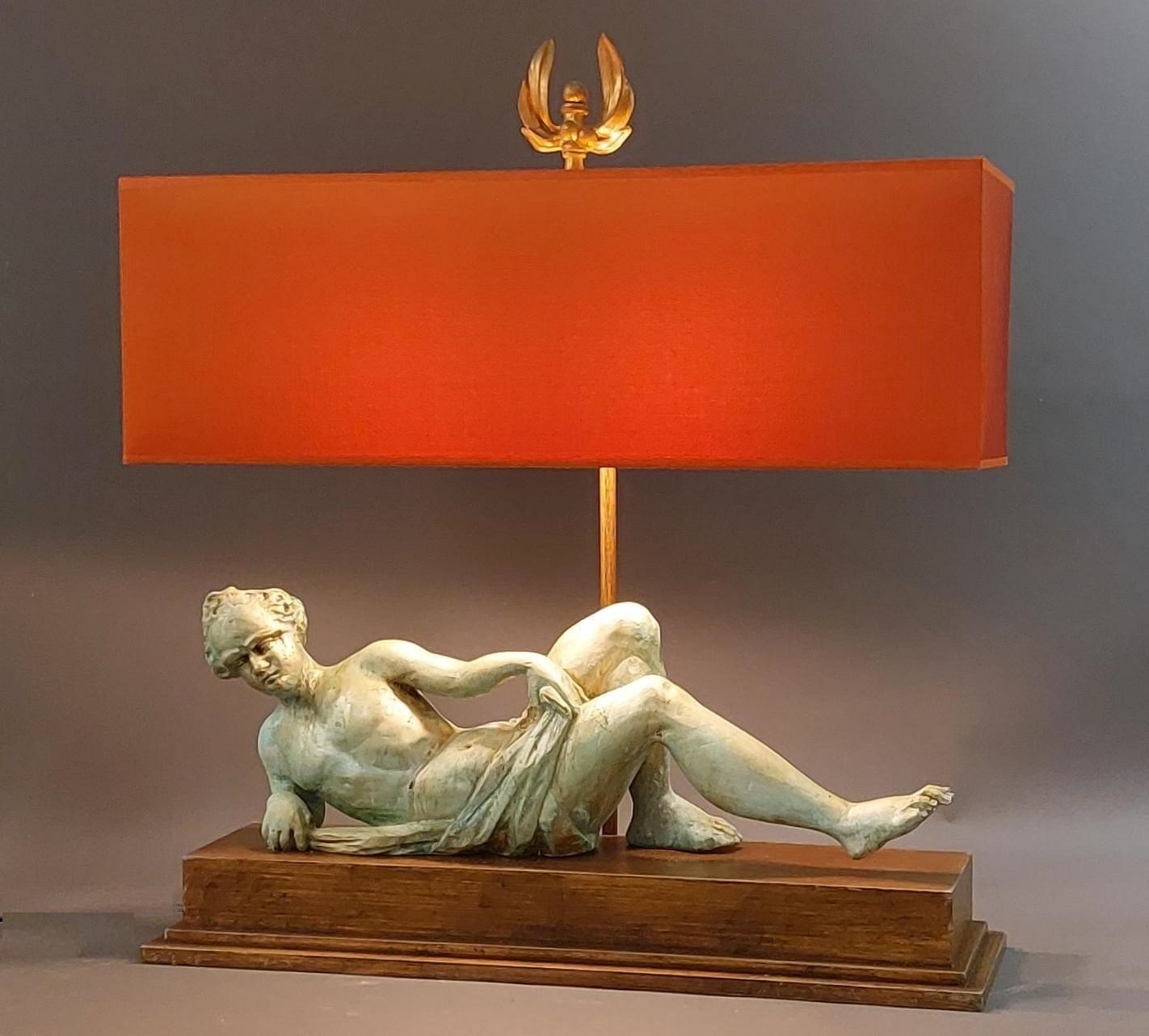We created the plinth in aged gold leaf and mounted them to be lamps.