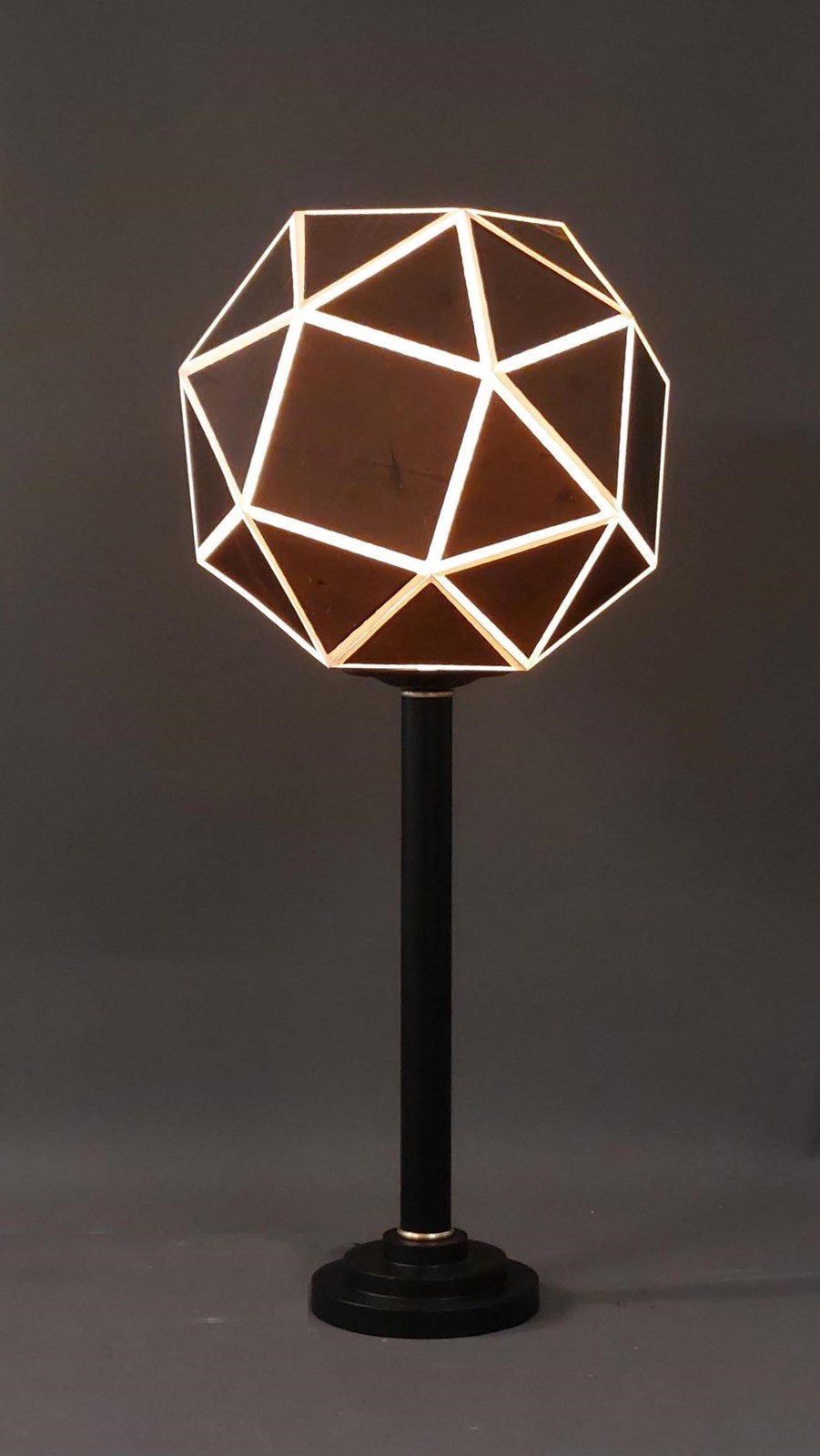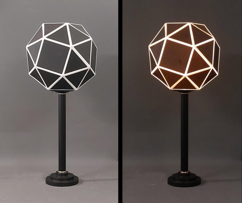 It is more the art of paper folding + a light effect. The white lines light op when turned on.