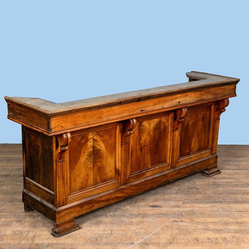 A reclaimed 19th Century decorated corner cupboard that is in two sections. The cupboard has three small drawers inside (one drawer is missing a knob) and shelving with hooks. There is some damage to the back at the base, as well as some of the beading missing on the left and other imperfections, which can be expected with age and use. There is evidence of a small patch of woodworm holes to the ceiling part of the cupboard that are not visible.