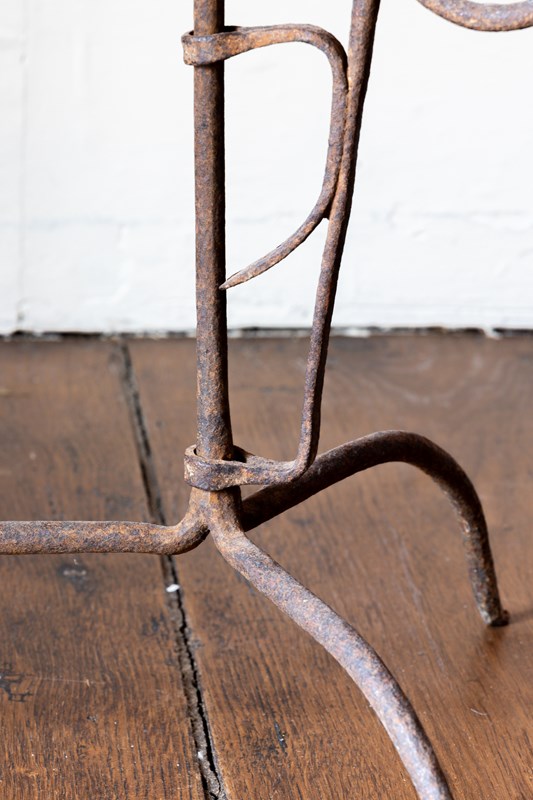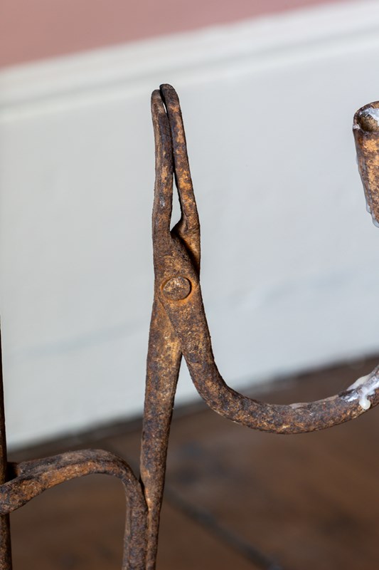A tall tripod-based 18th Century Irish lamp stand designed to hold multiple rush lights. Used before oil or candle lighting, this is a rare and attractive survivor of primitive Irish lighting.