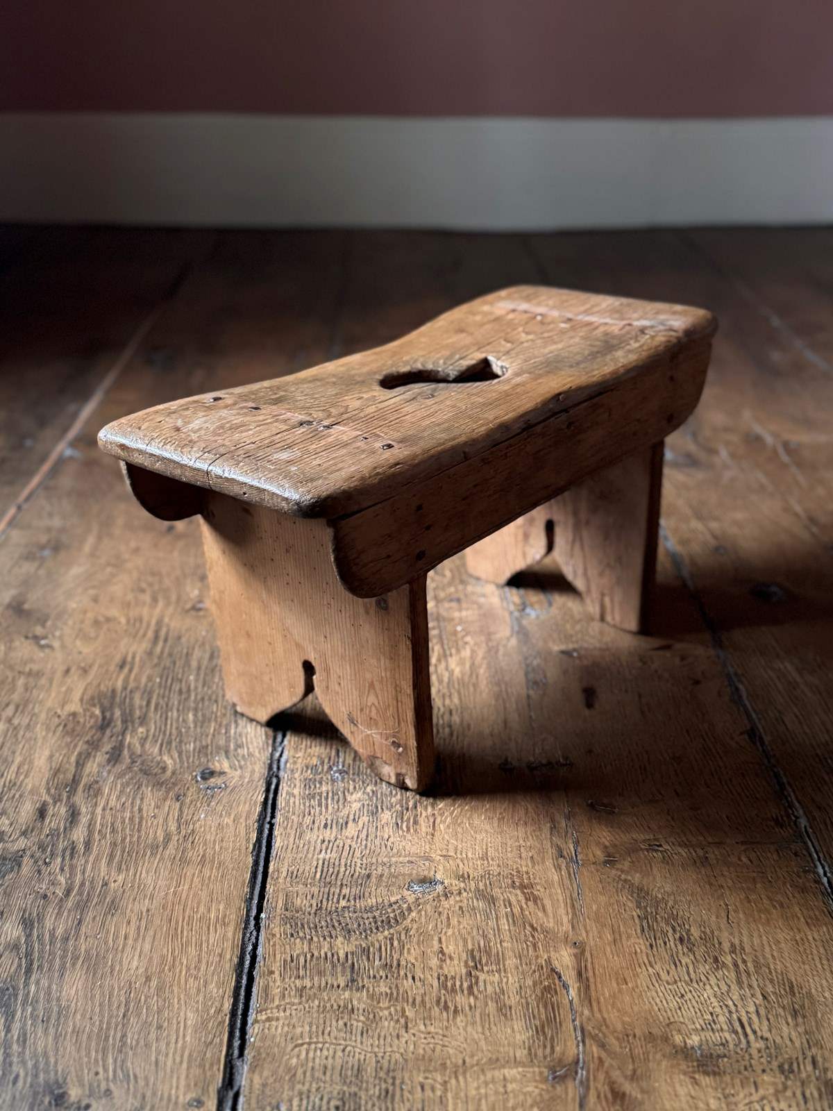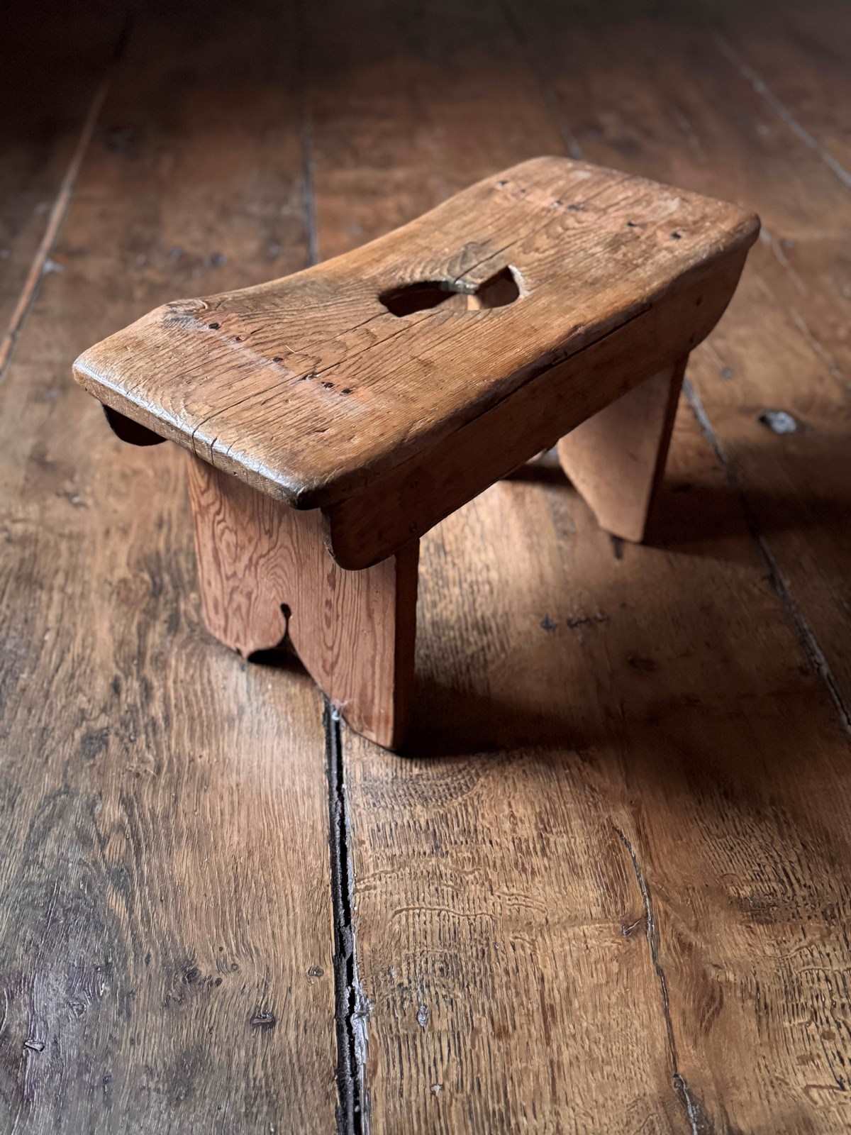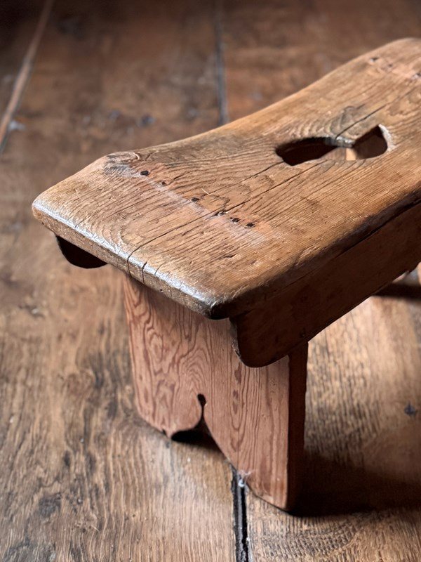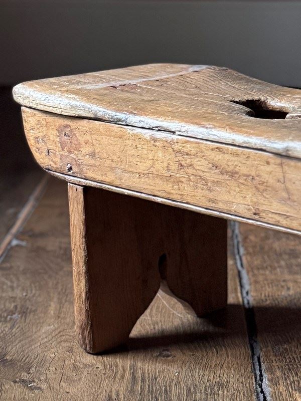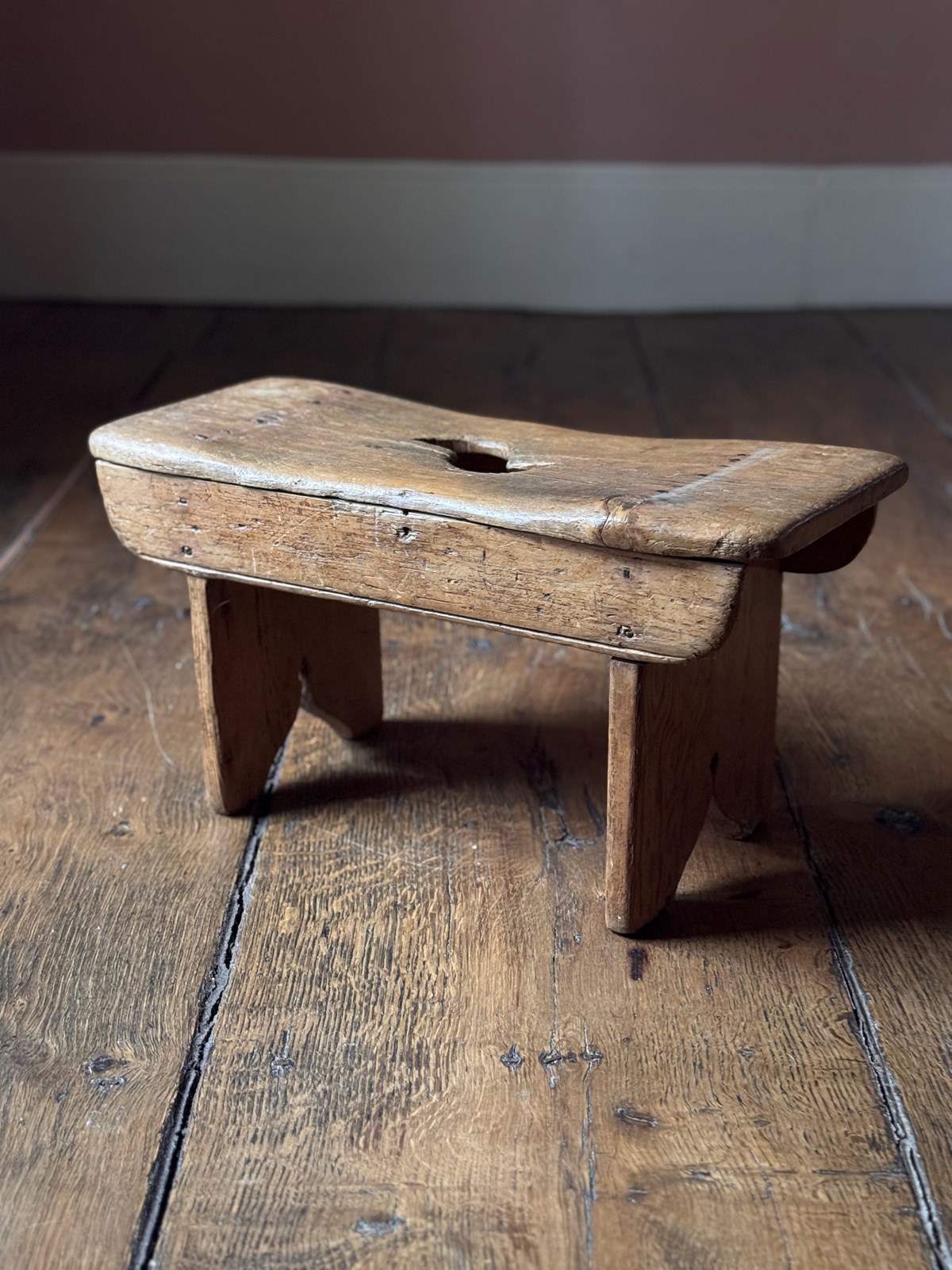 A lovely and useful 19th Century stool, with a decorative hole carved out of the top for carrying. A really nice example.