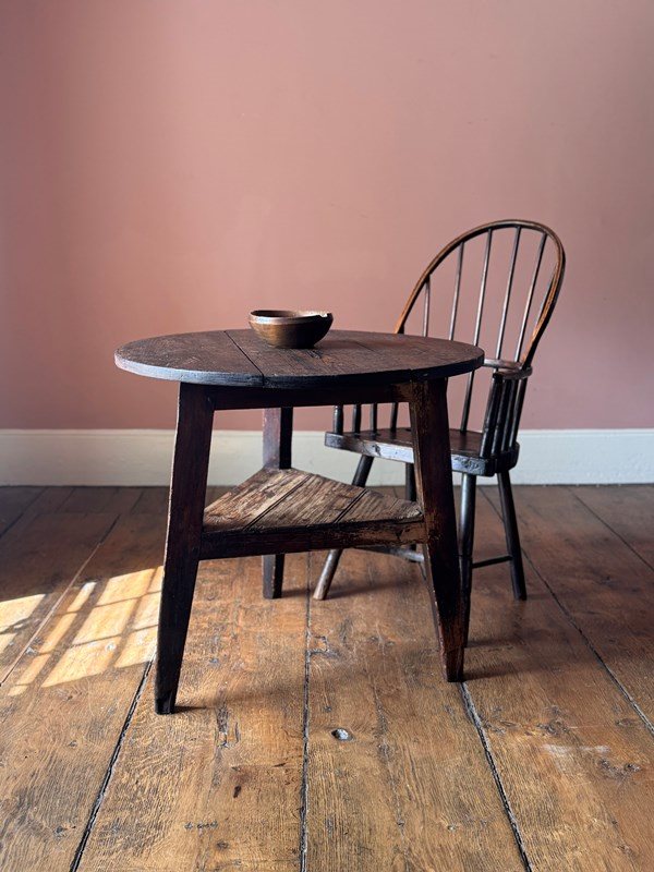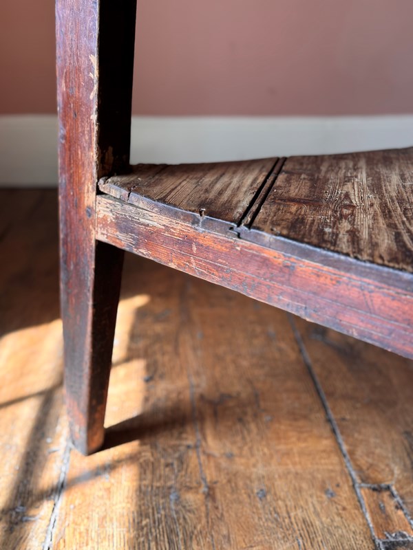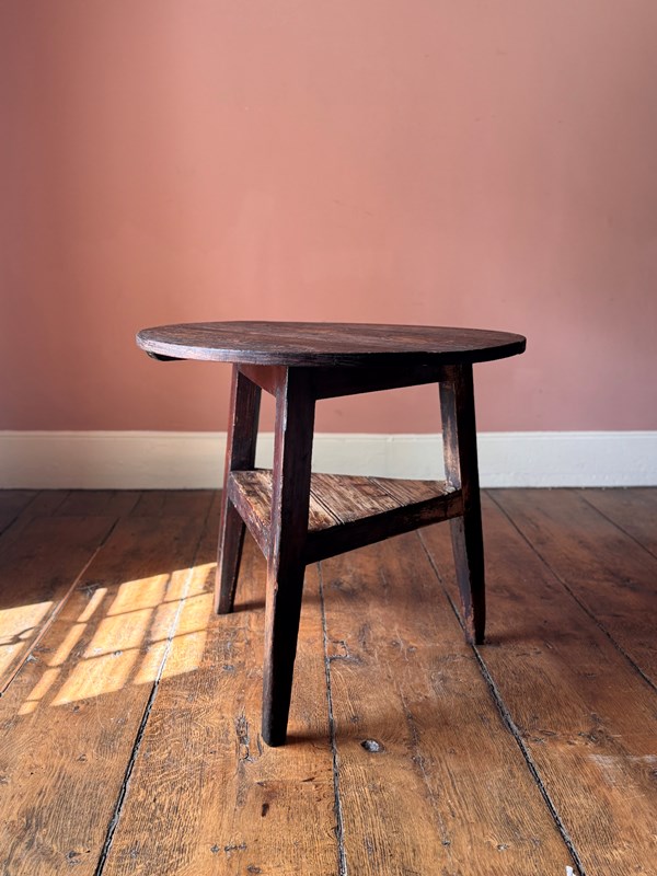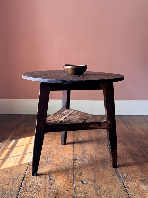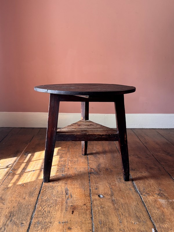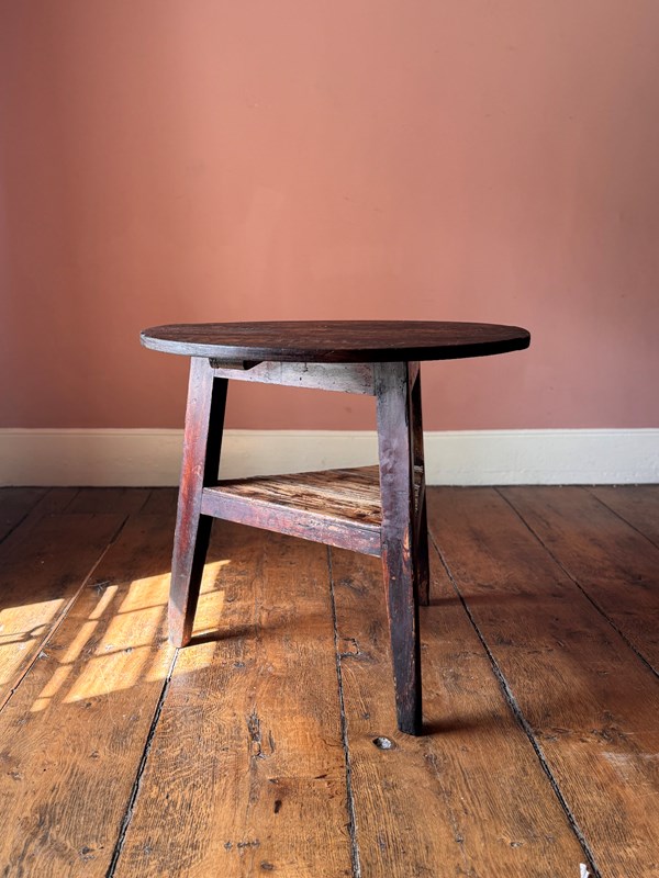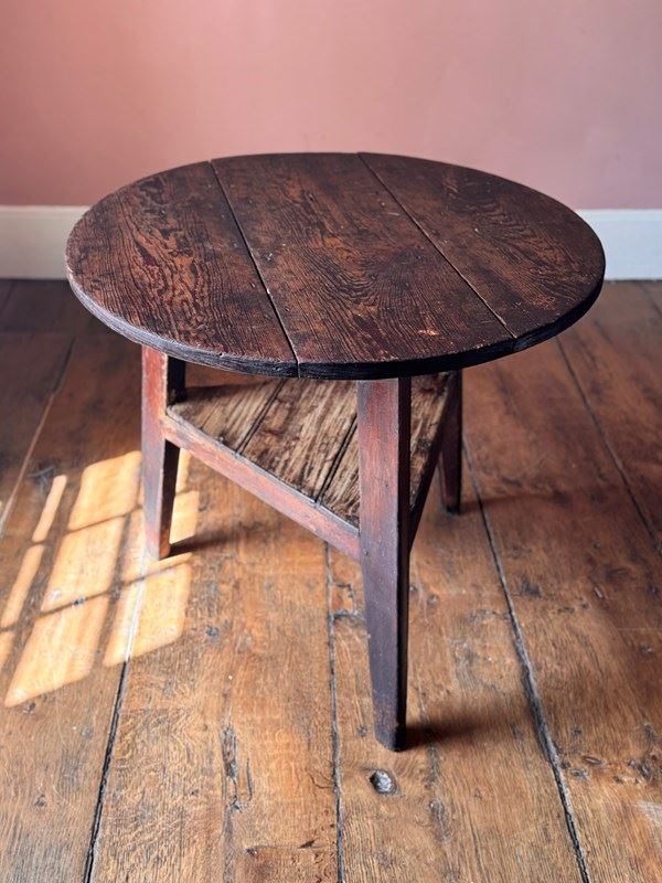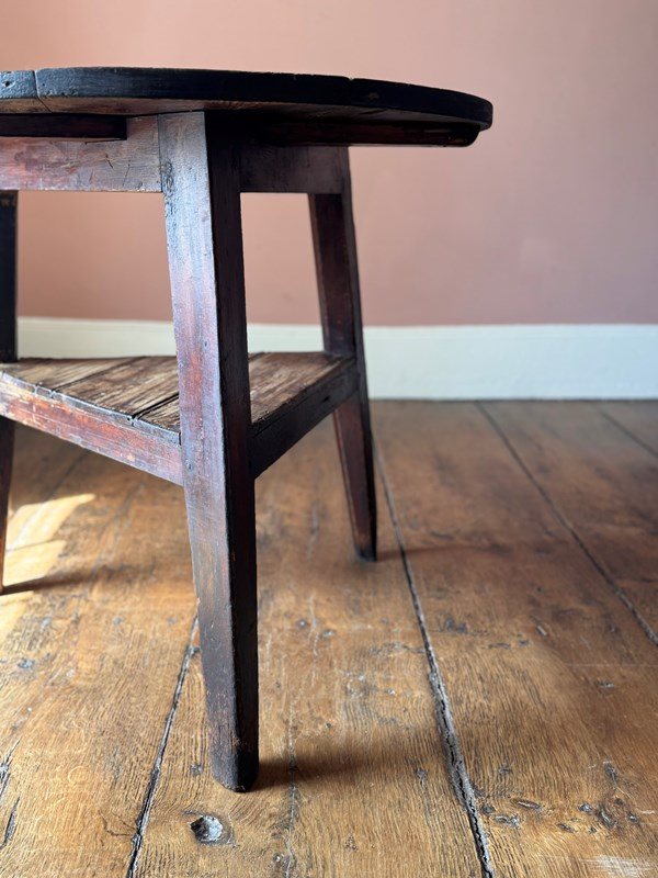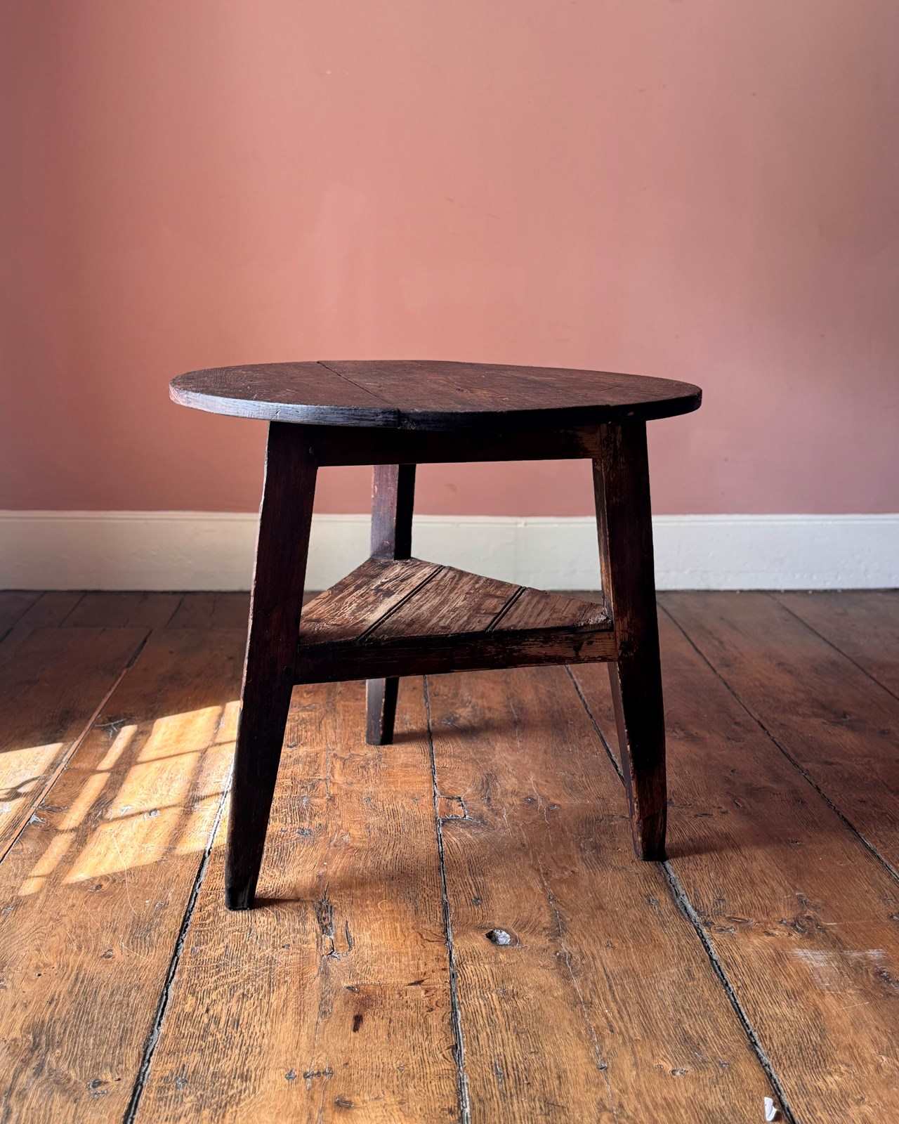 A sturdy and attractive 19th century pine cricket table with shelf. Sourced in Anglesey.