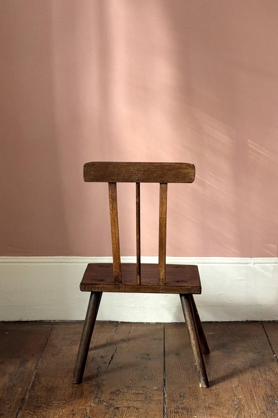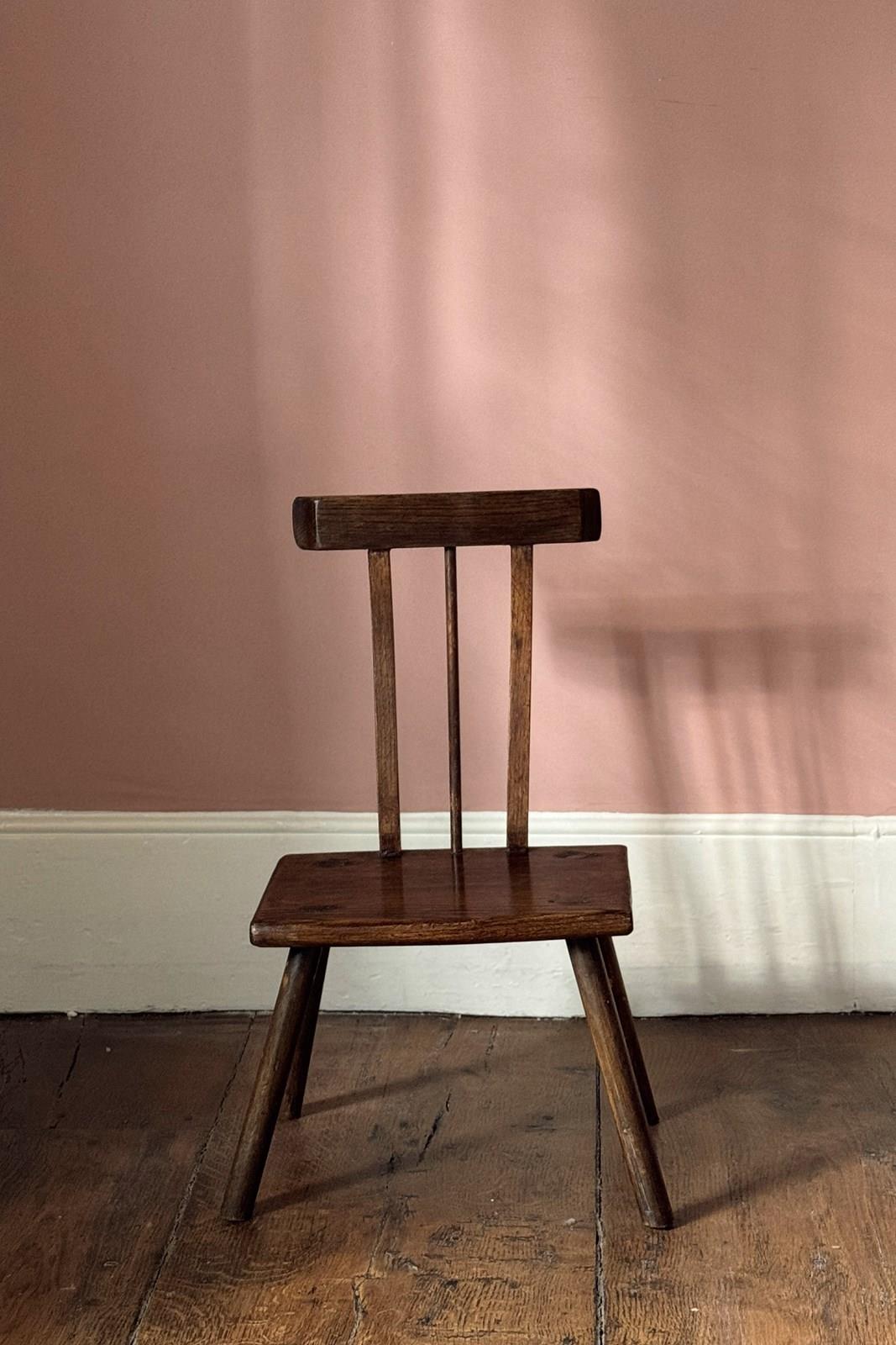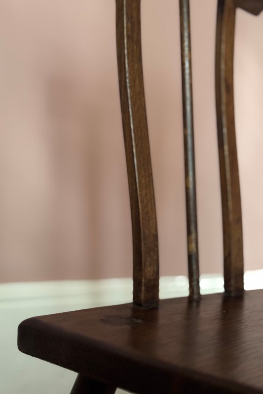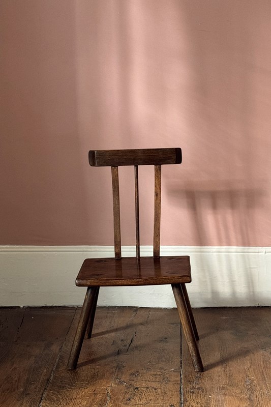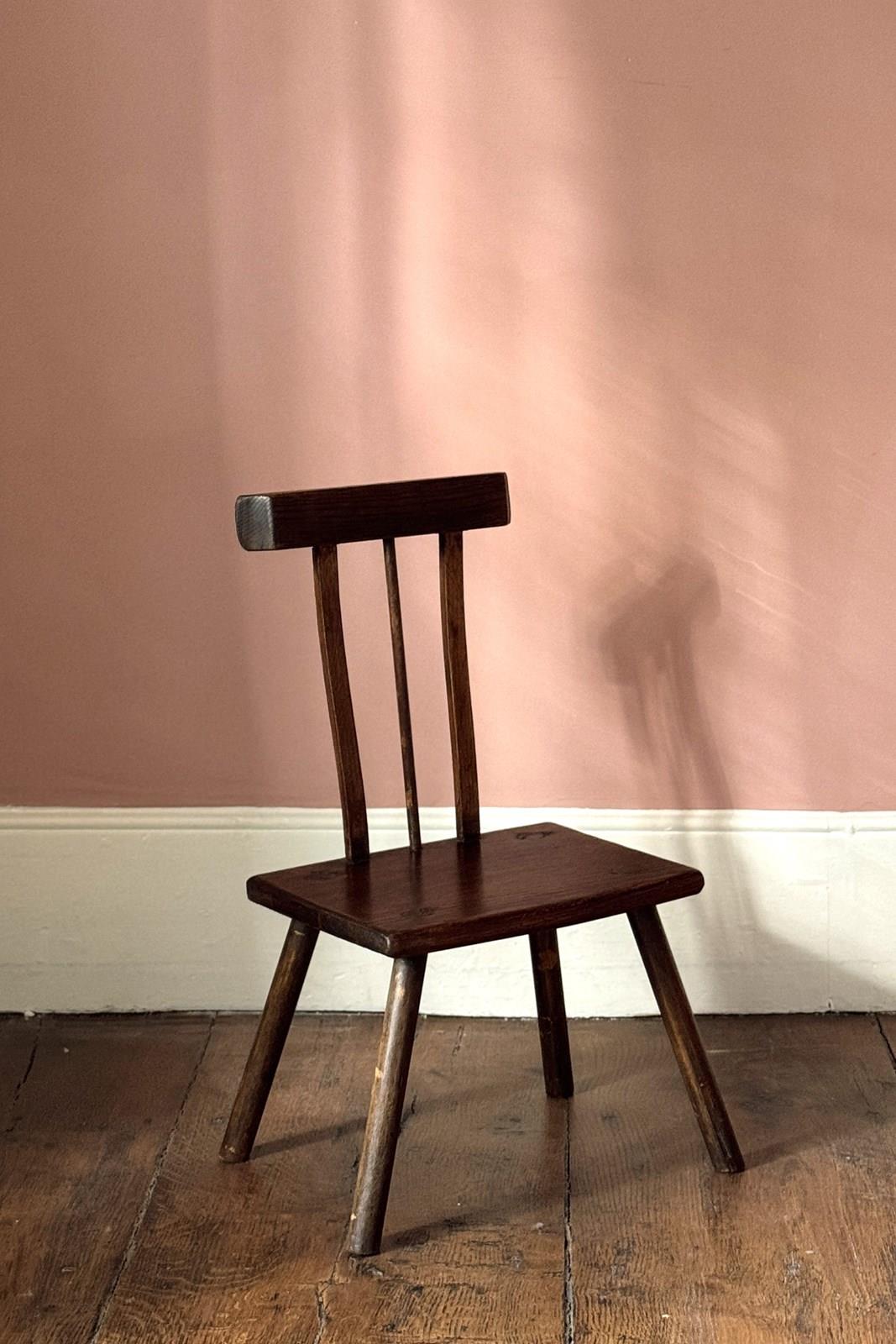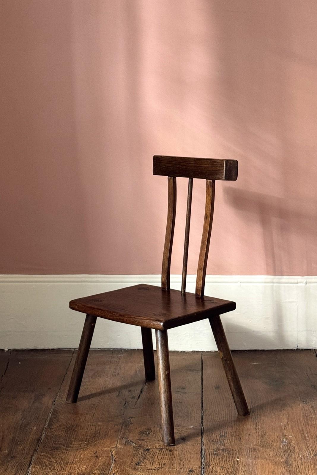 It’s hard to know the exact date of stick chairs as there are seldom records and the simple designs were used over centuries. This one was sourced in Anglesey where it had been in the same family for over ninety years, and likely had a life before that. With its highly sculptural, simple shape it could be mistaken for a piece of contemporary design. A really lovely little chair with a big presence and a good example of simple Welsh primitive furniture.