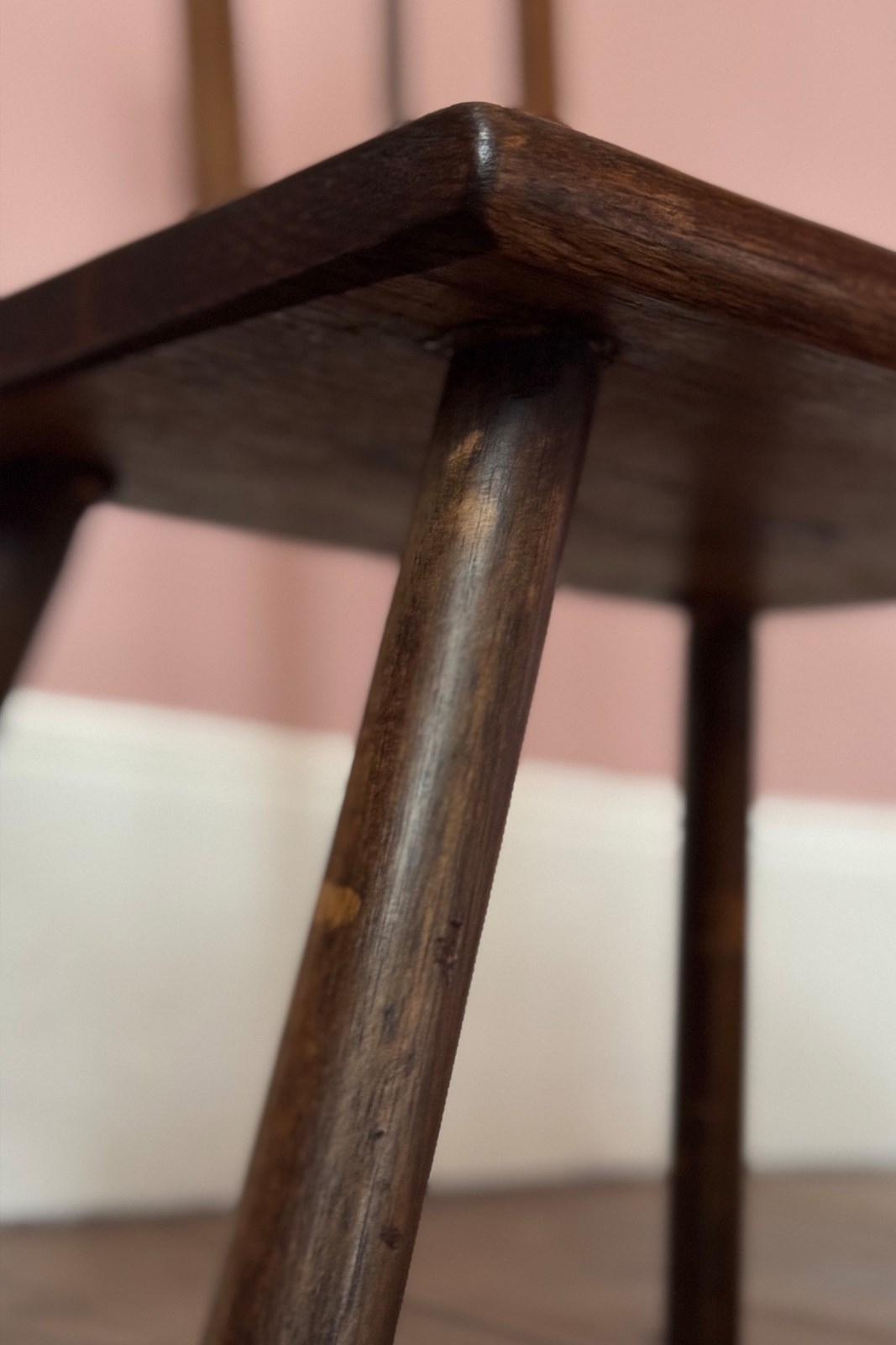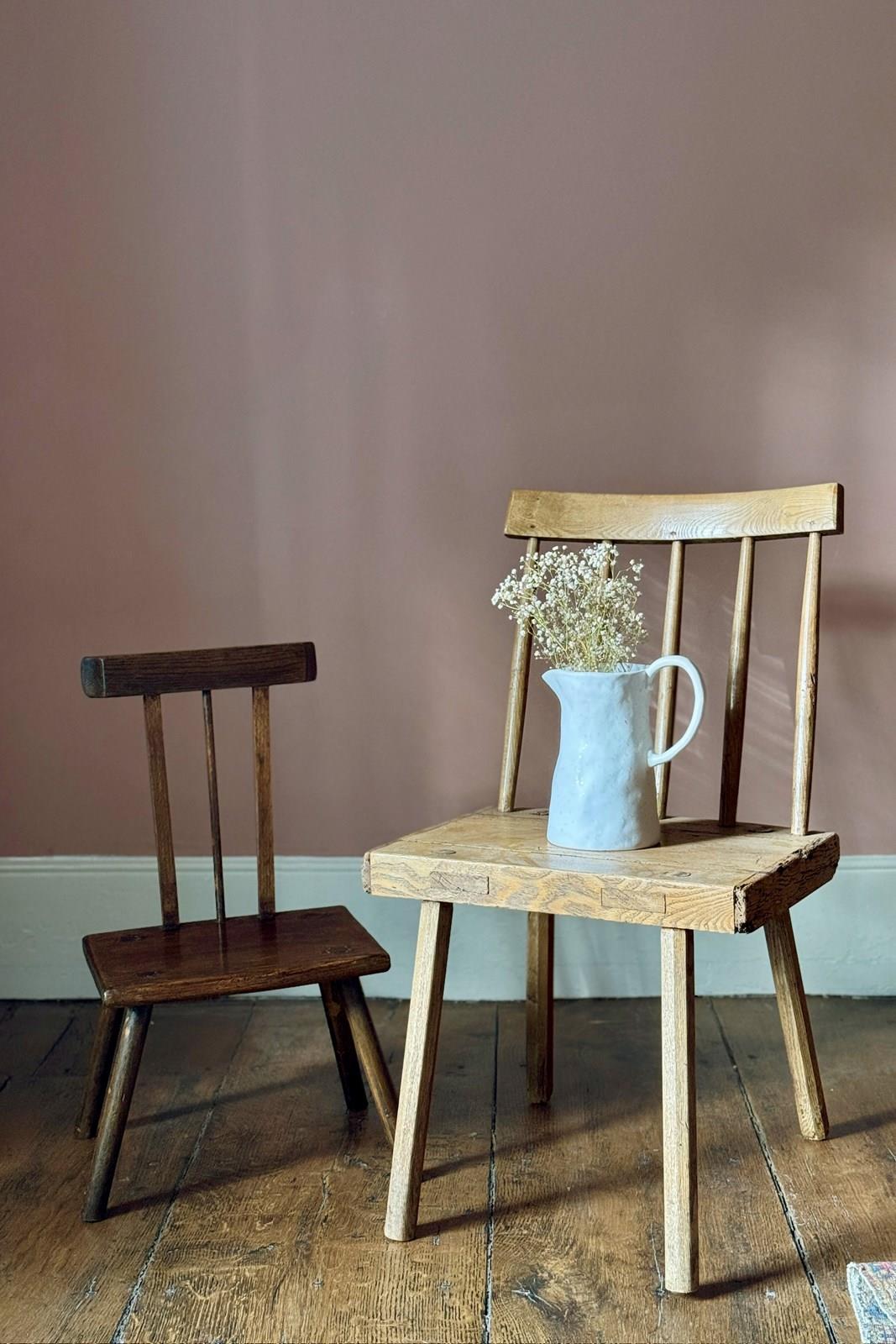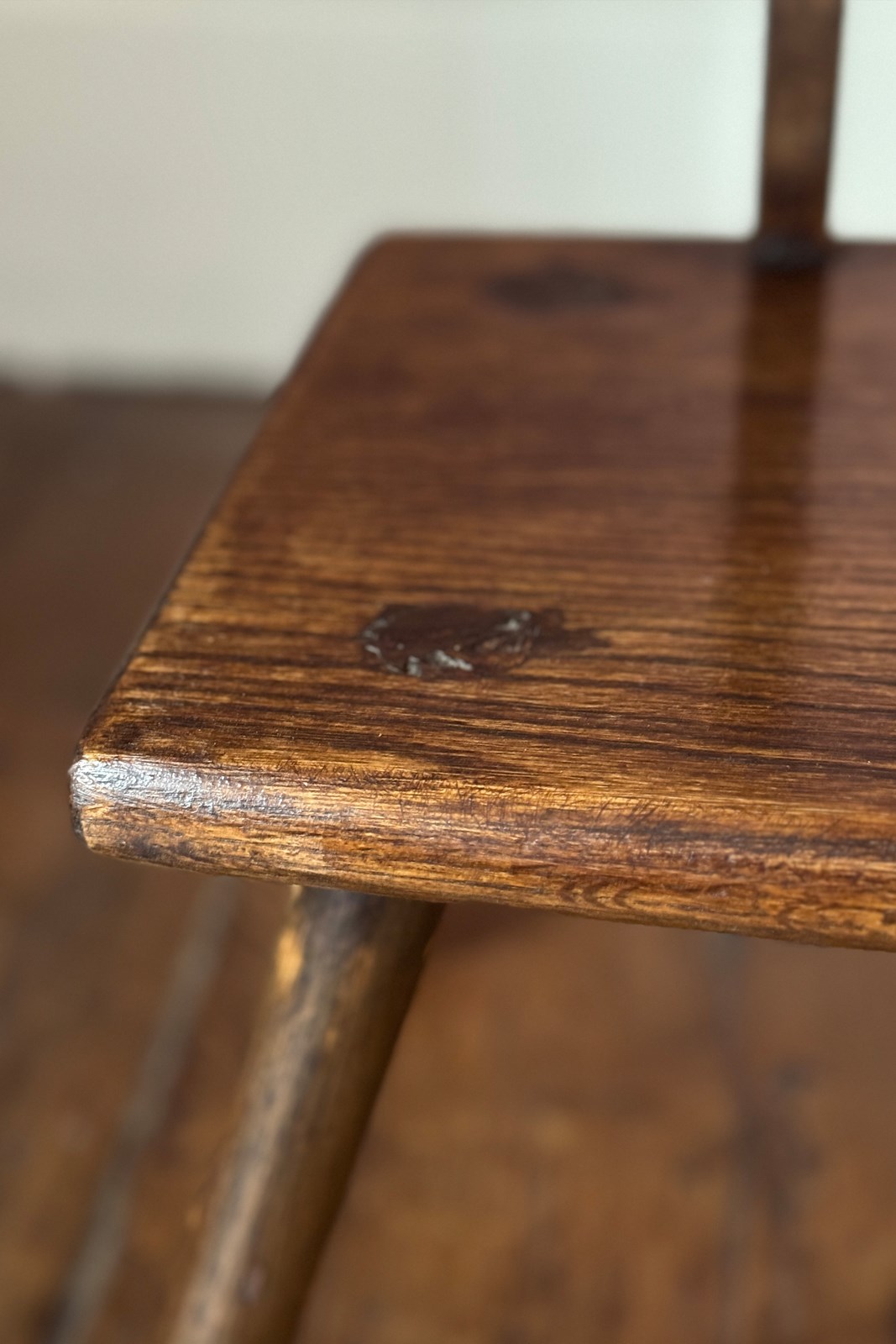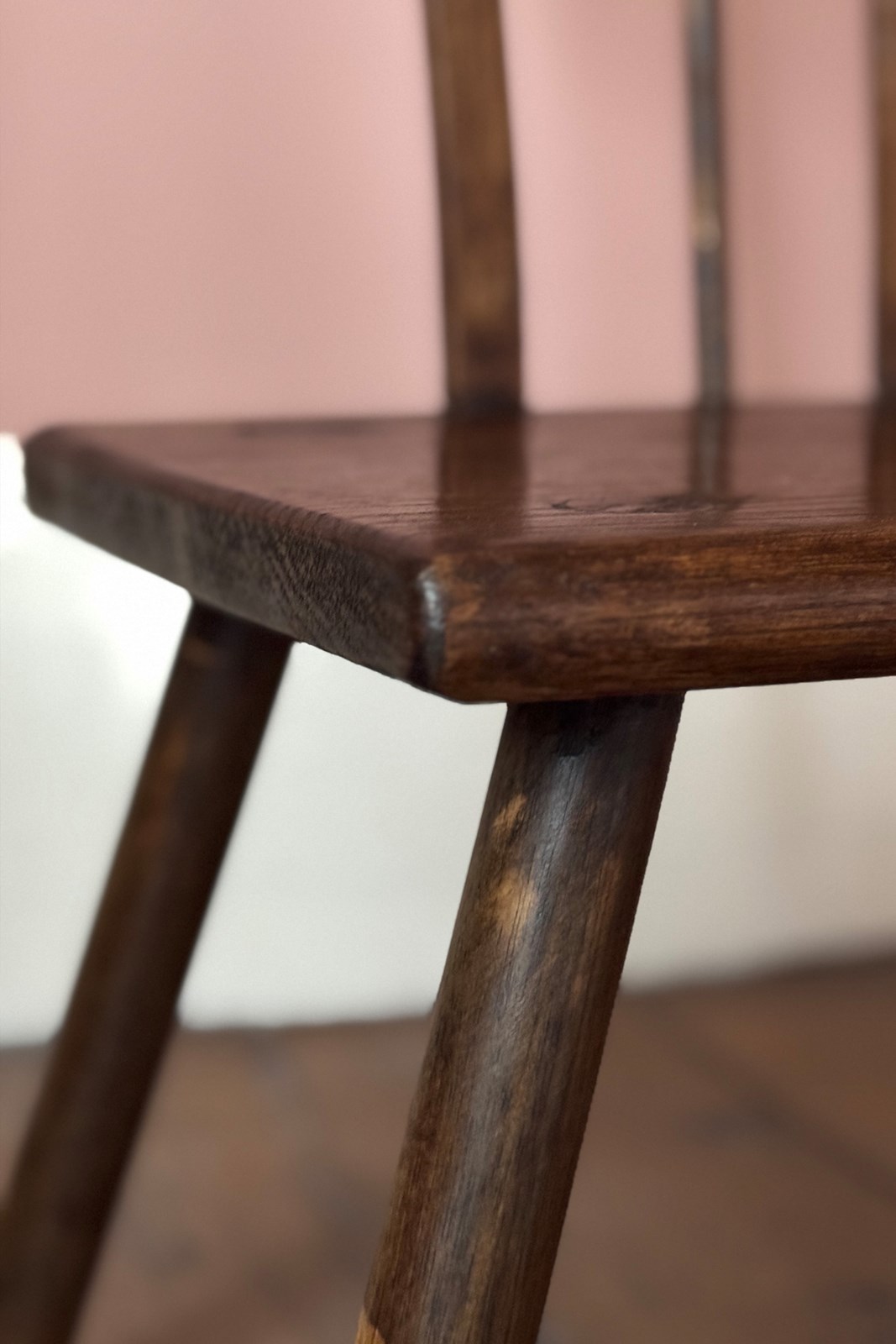 It’s hard to know the exact date of stick chairs as there are seldom records and the simple designs were used over centuries. This one was sourced in Anglesey where it had been in the same family for over ninety years, and likely had a life before that. With its highly sculptural, simple shape it could be mistaken for a piece of contemporary design. A really lovely little chair with a big presence and a good example of simple Welsh primitive furniture.