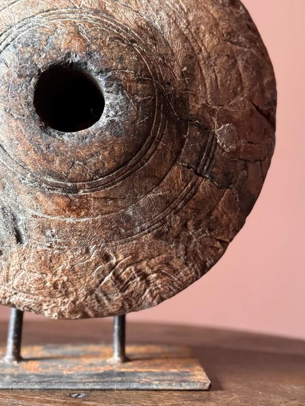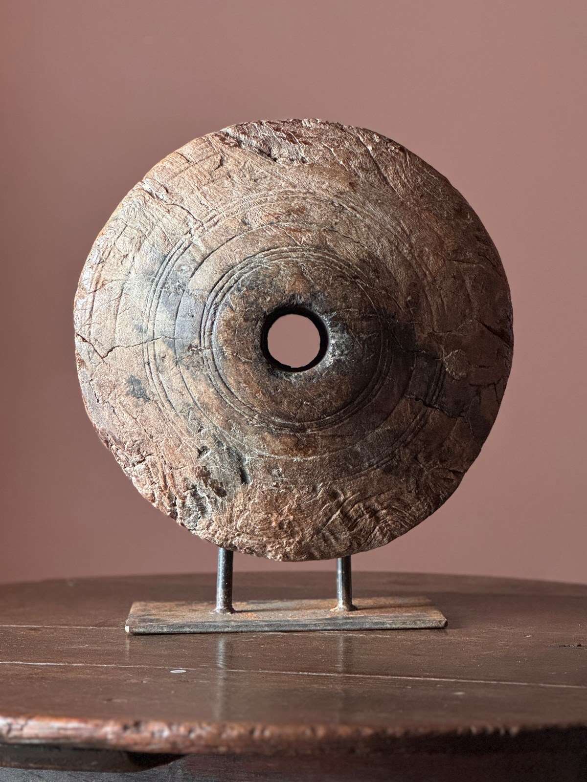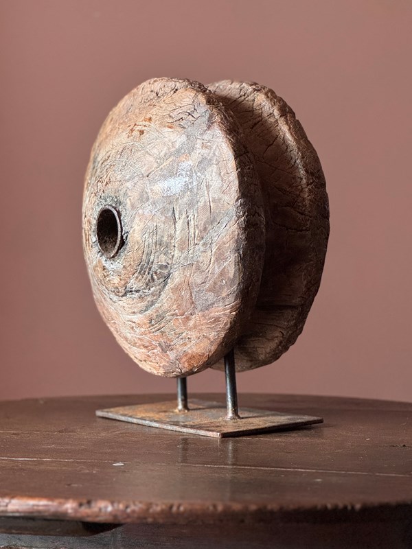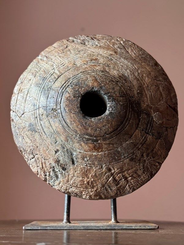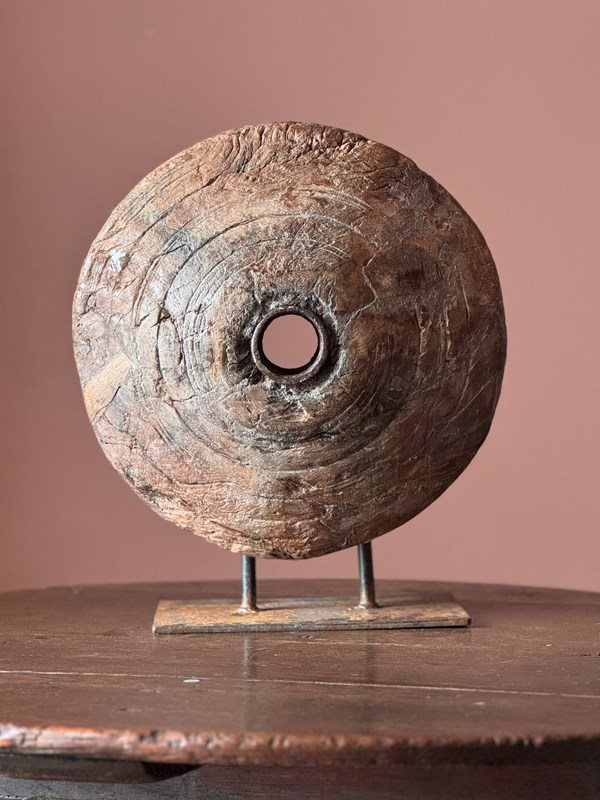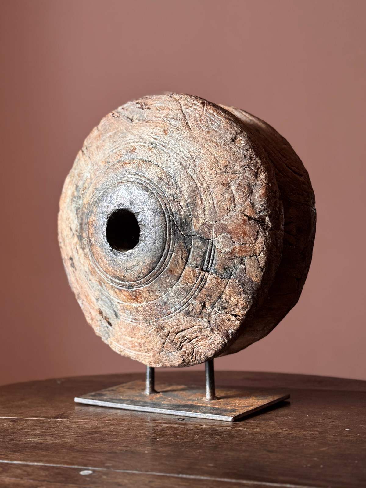 An attractive 19th Century pulley wheel rescued from a Dutch grain mill. Great form, colour and texture. A wonderful aesthetic object that would not look out of place in a gallery.