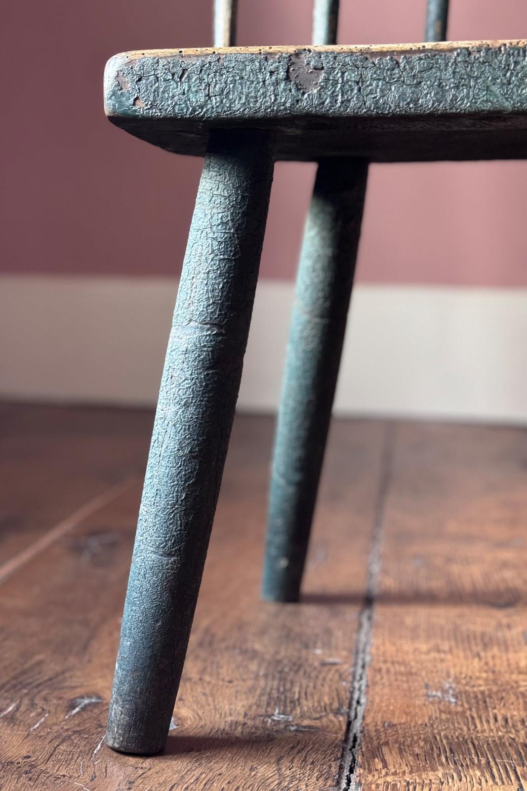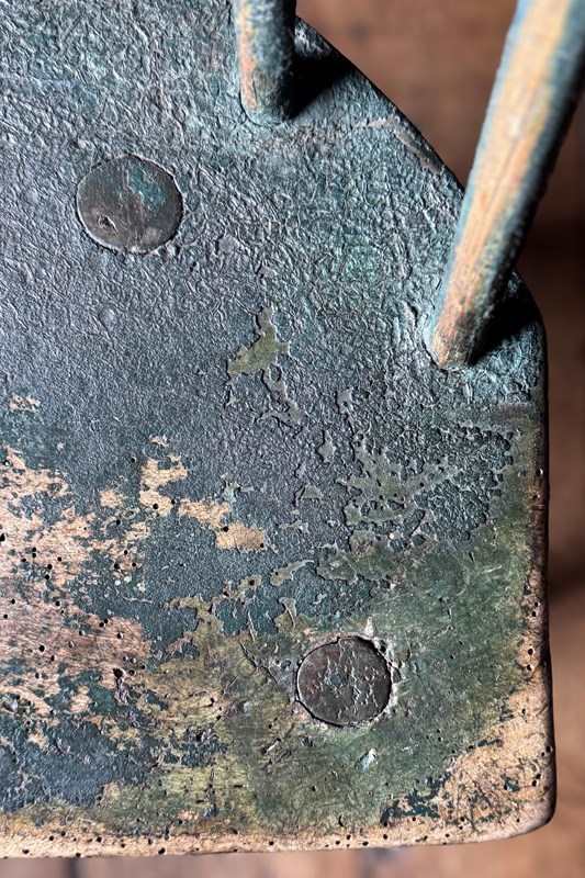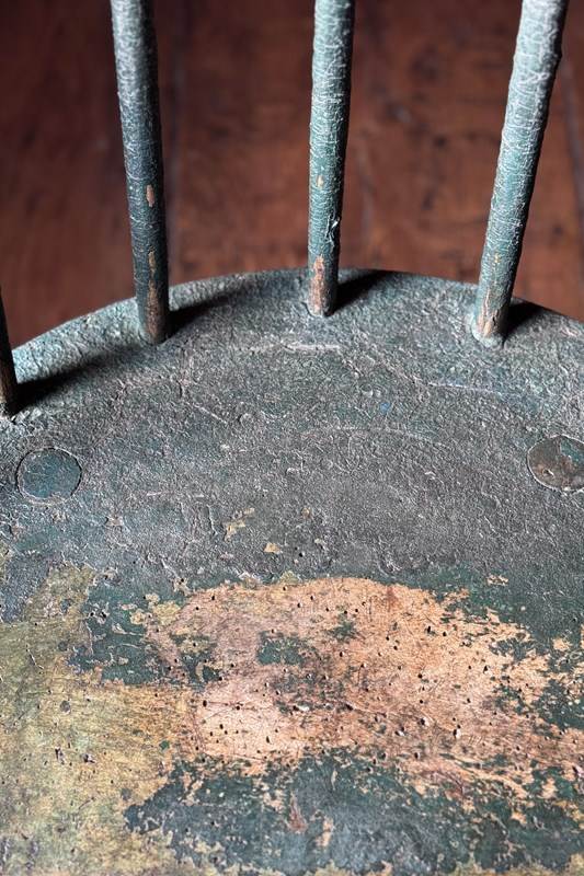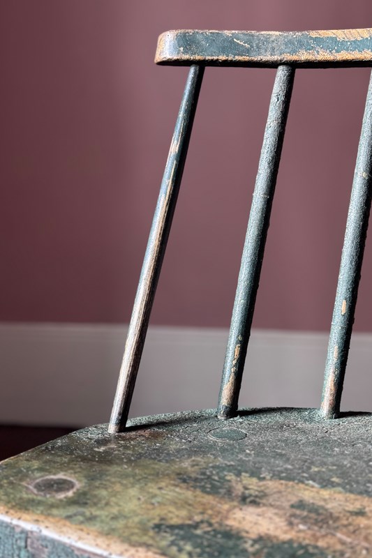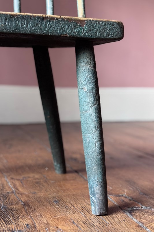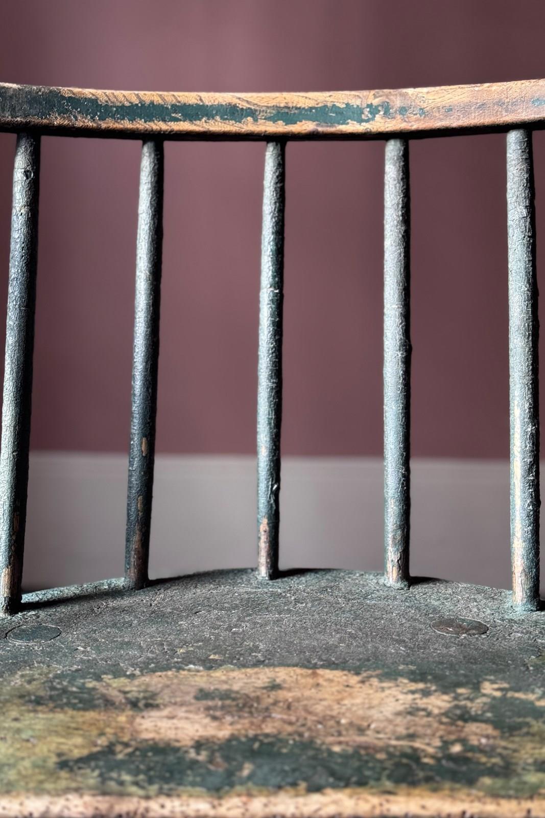 A really good 19th Century Irish hedge chair from County Down with the most fantastic remnants of the original green painted finish. An excellent example of Irish vernacular furniture.