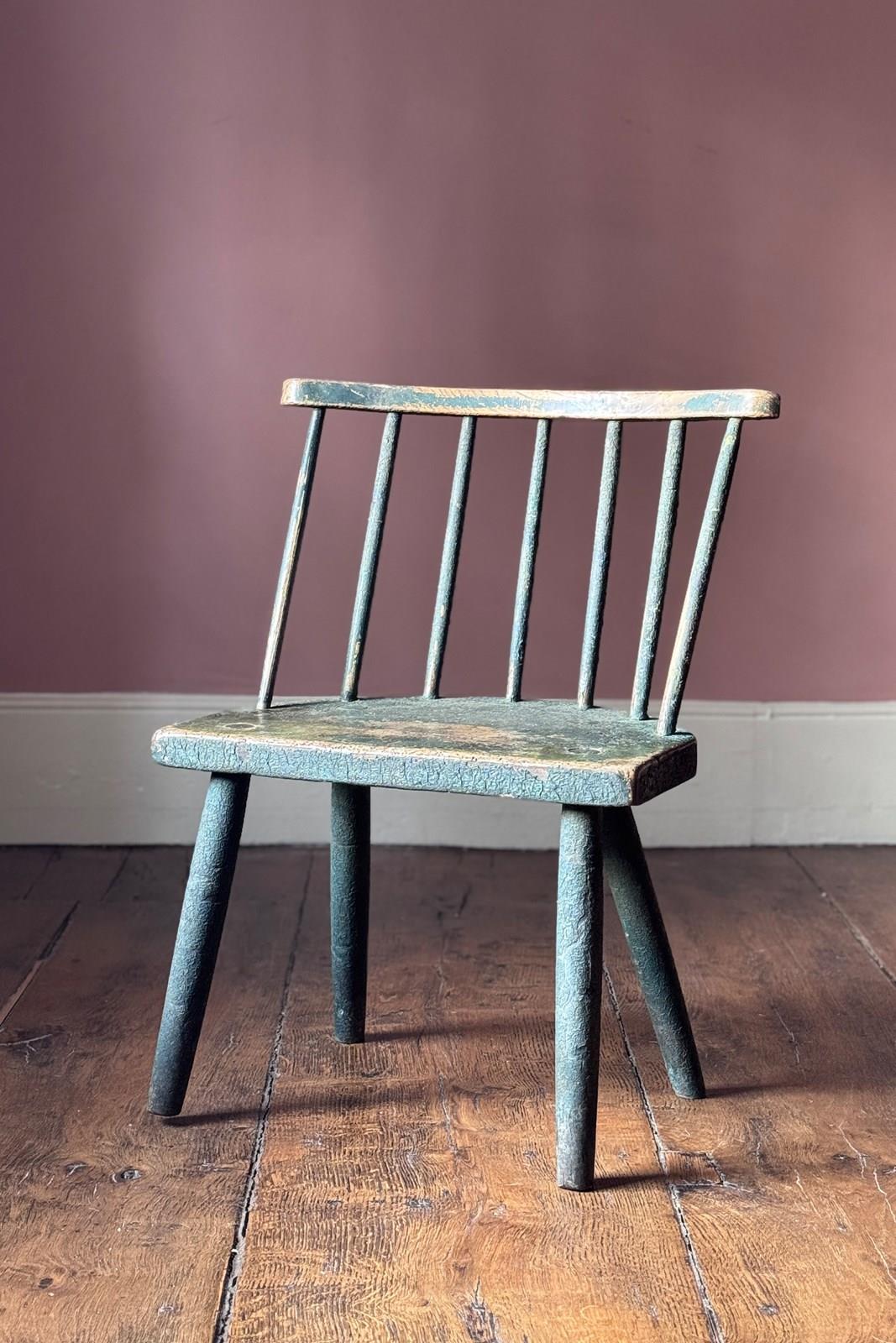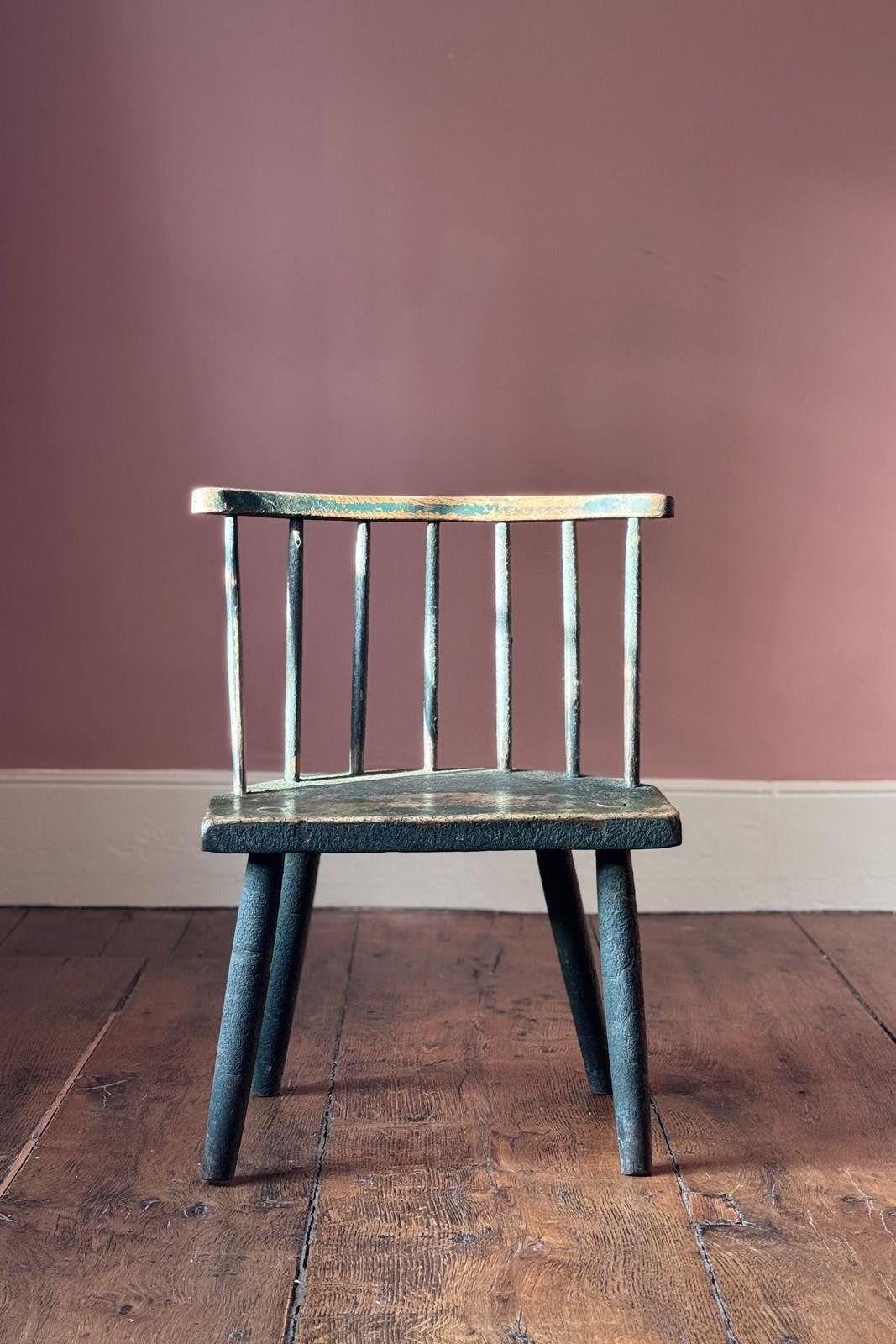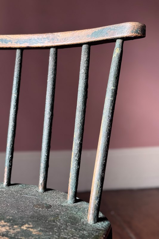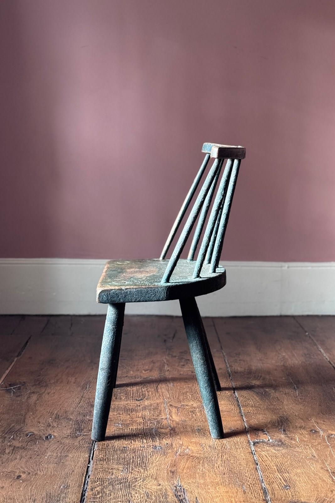 A really good 19th Century Irish hedge chair from County Down with the most fantastic remnants of the original green painted finish. An excellent example of Irish vernacular furniture.