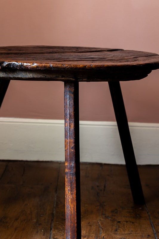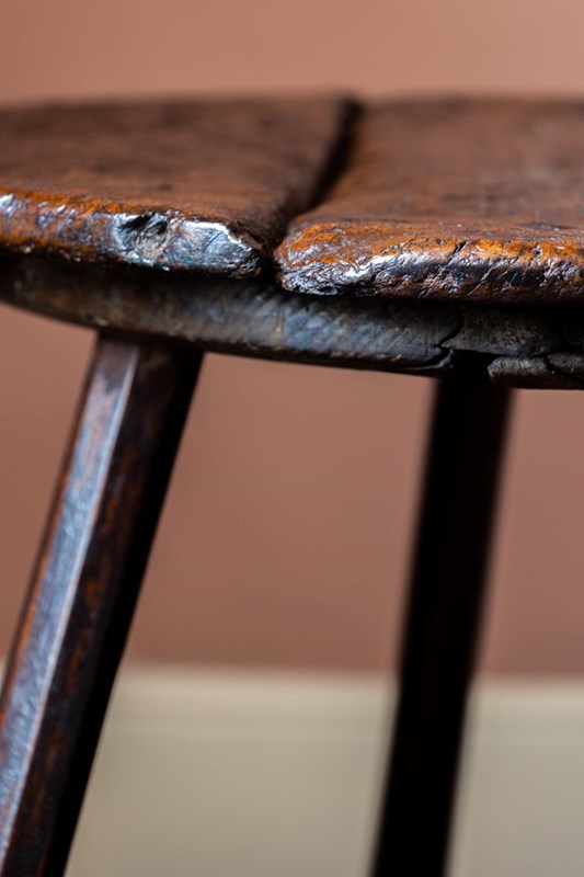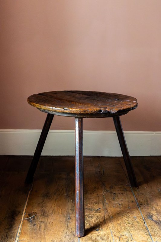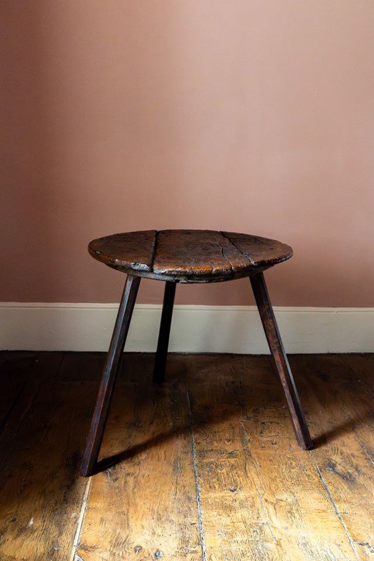 A superb English 18th Century primitive oak cricket table. Occasionally a piece of vernacular furniture has some indescribable quality makes it a really great example.