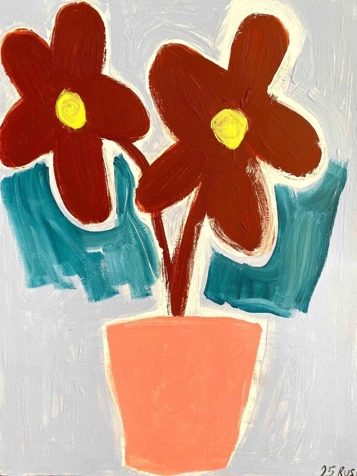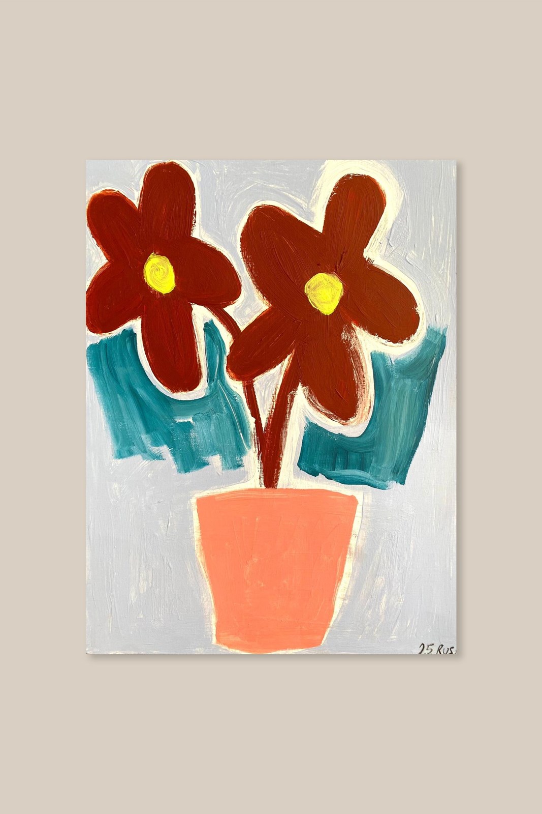From the artist's 2025 'Plant Series' of nine acrylics on paper. Rusty is a fine artist born in London and currently living and working in South East London, England. Having grown up around interesting objects and paintings and with a background in textiles, Rusty found her textured, expressive painting style which explores the female gaze through gestural, decorative nudes and portraits. This painting comes unframed however we are happy to organise framing for you. Please get in touch for a quote.