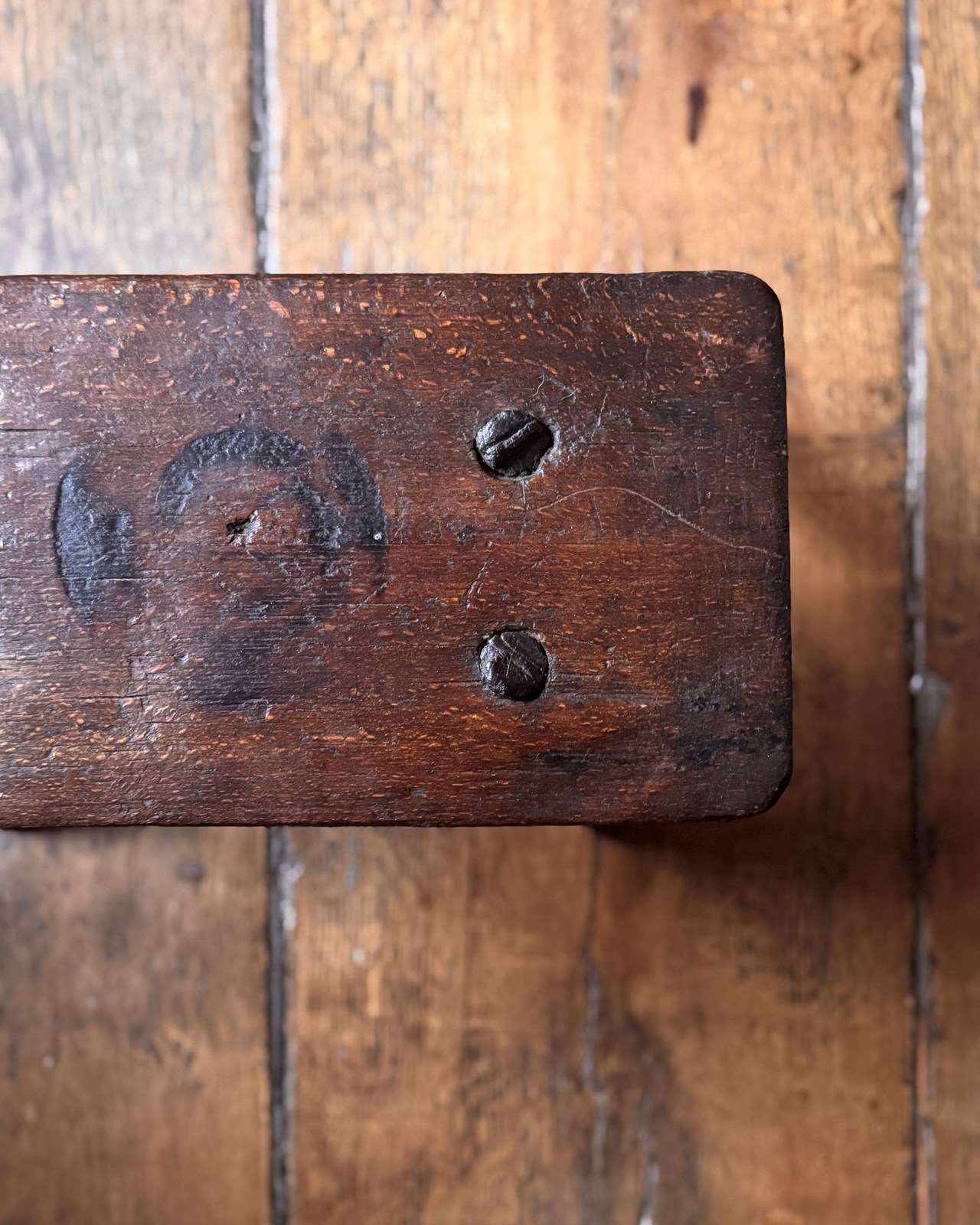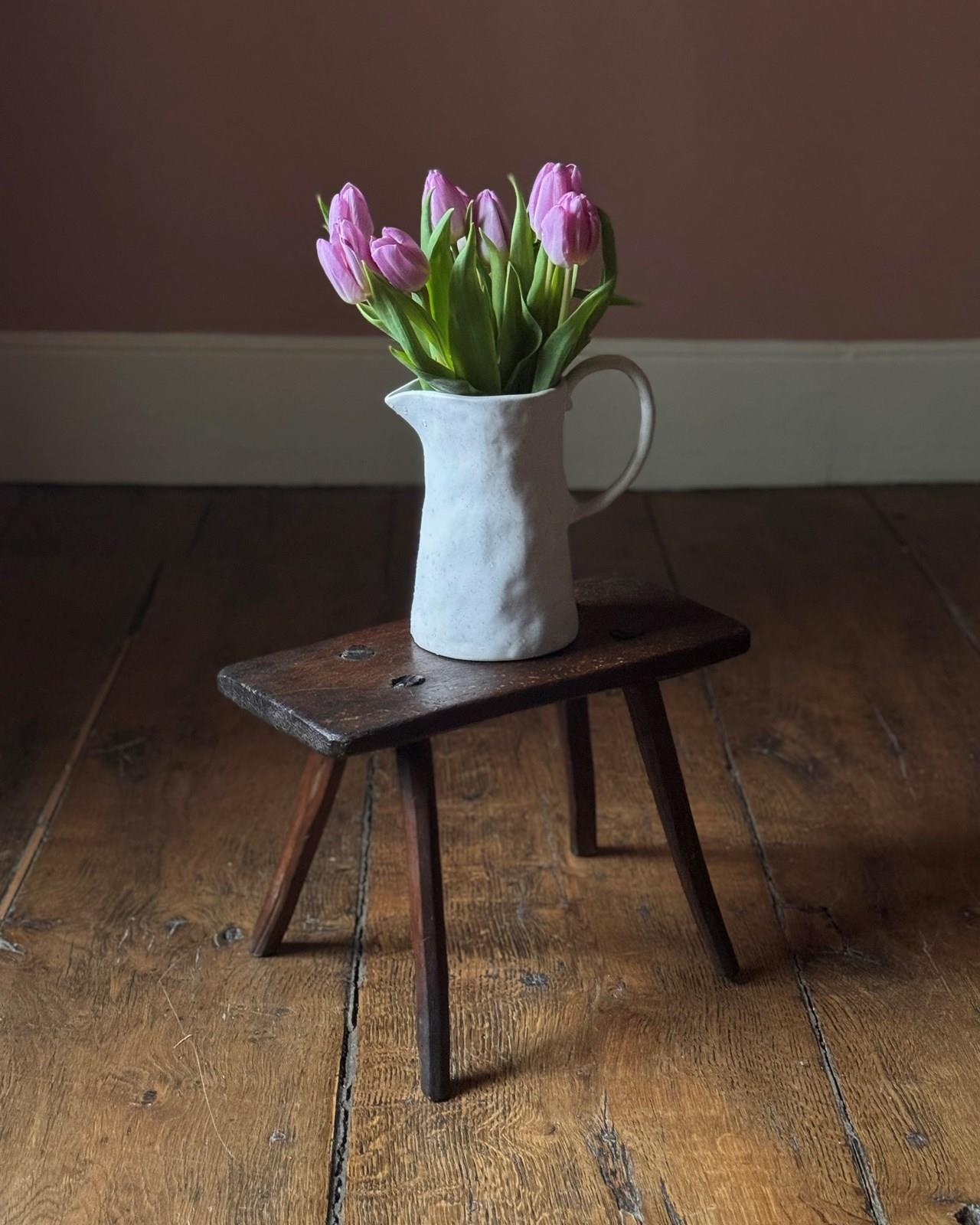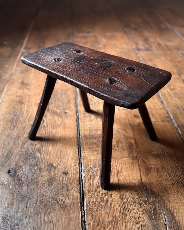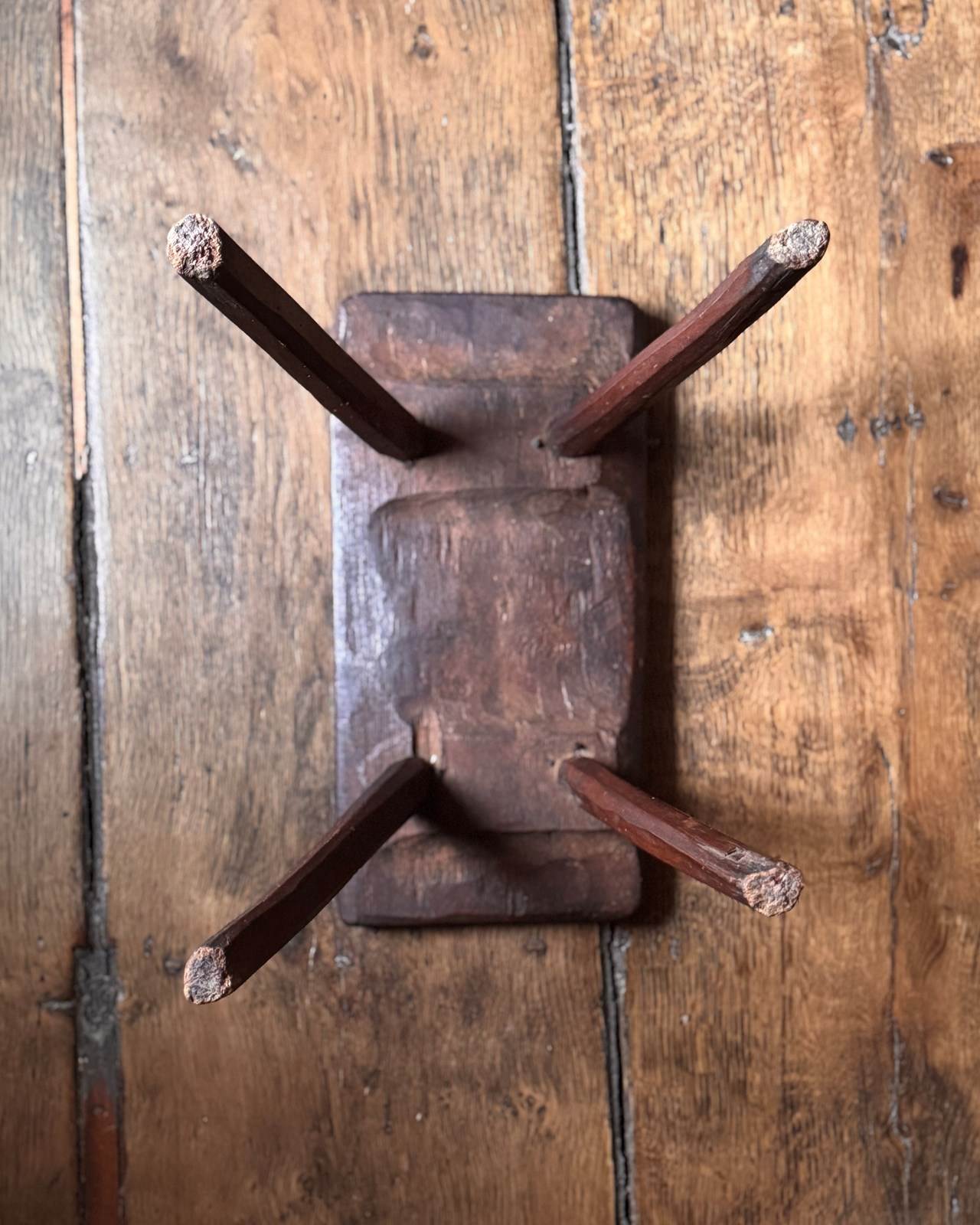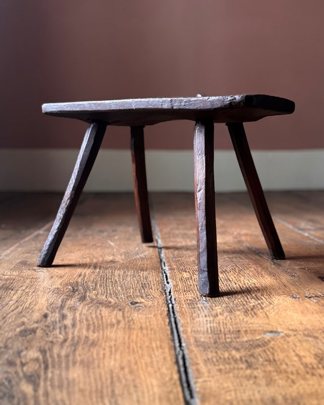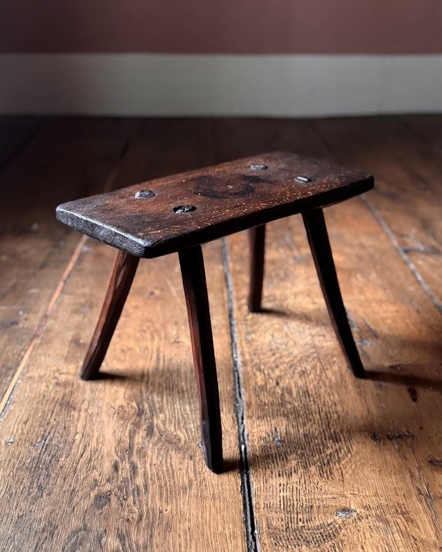 An attractive primitive 19th Century stool with a lovely rich colour. Makes a great little stand for flowers or a side table for coffee and books.