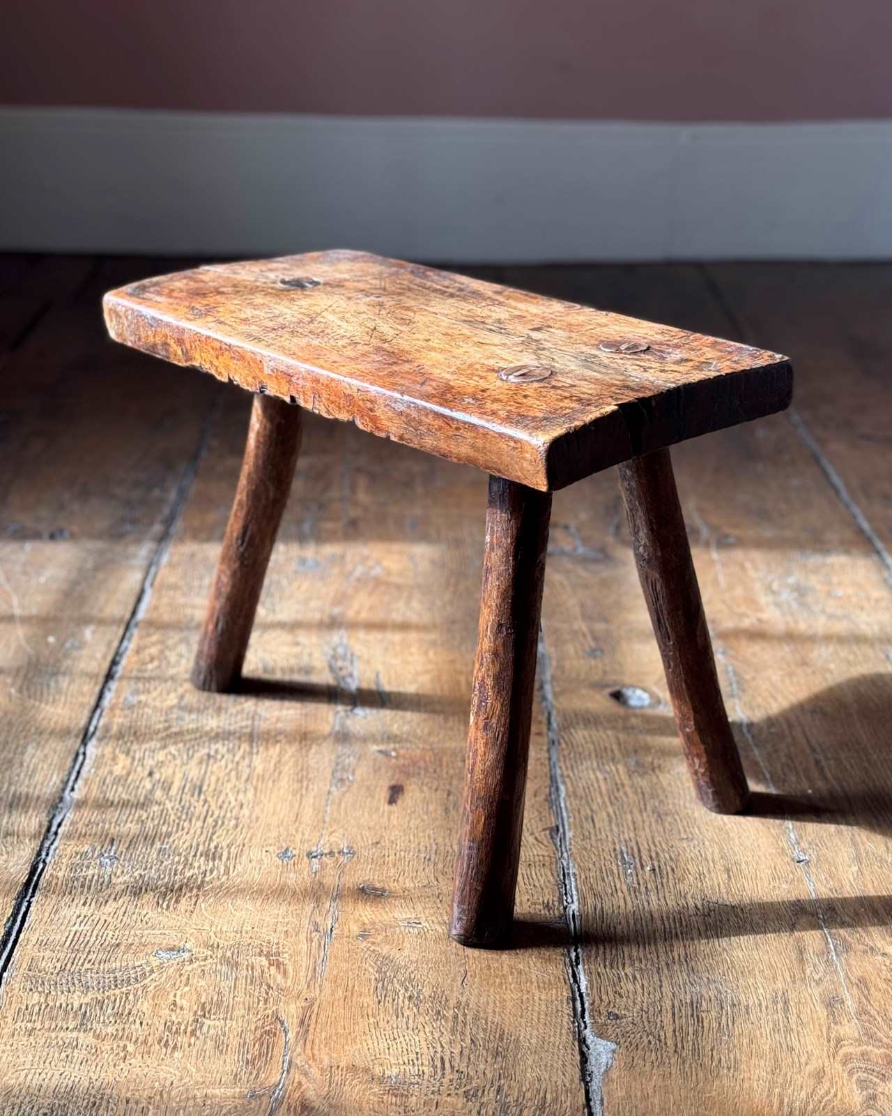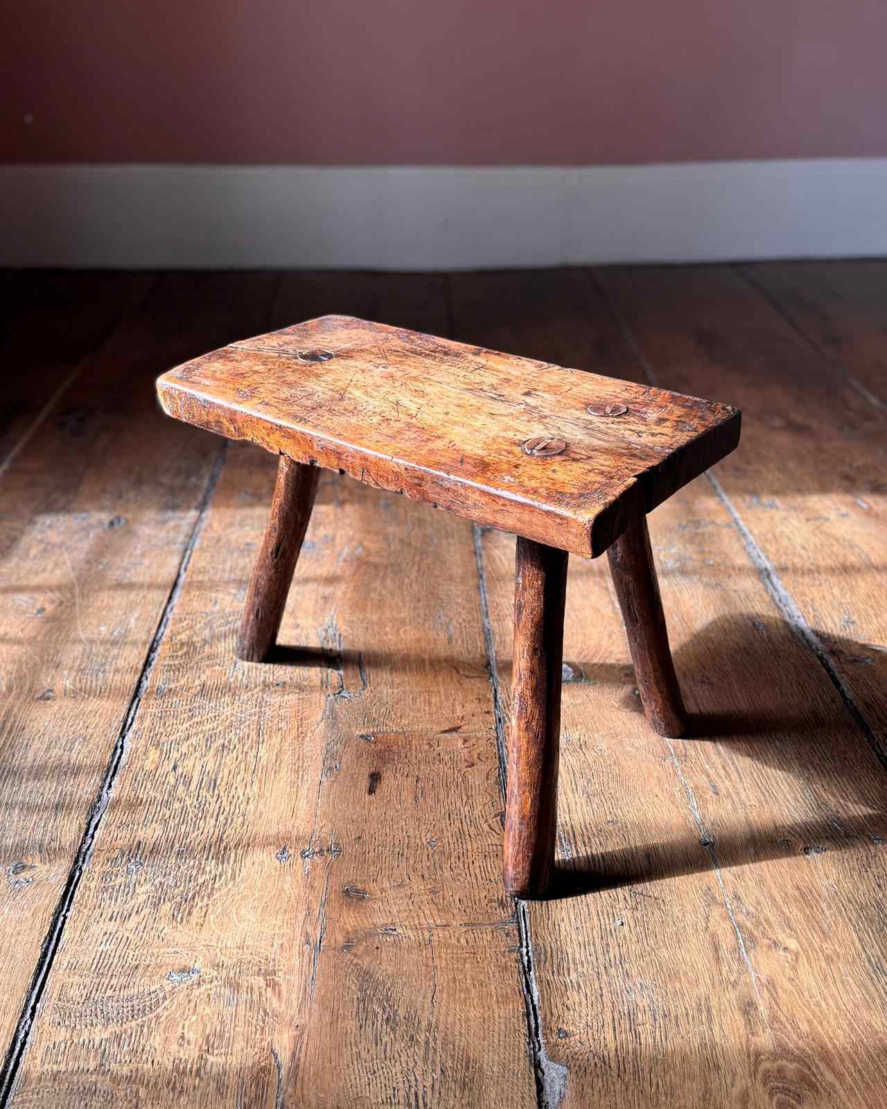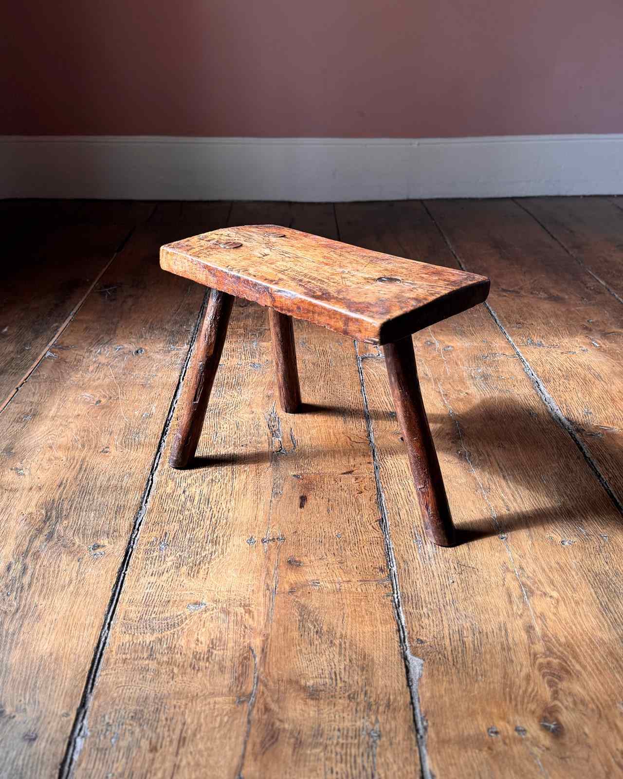 A useful primitive 19th Century stool on three legs. Great little plant stand or small side table.